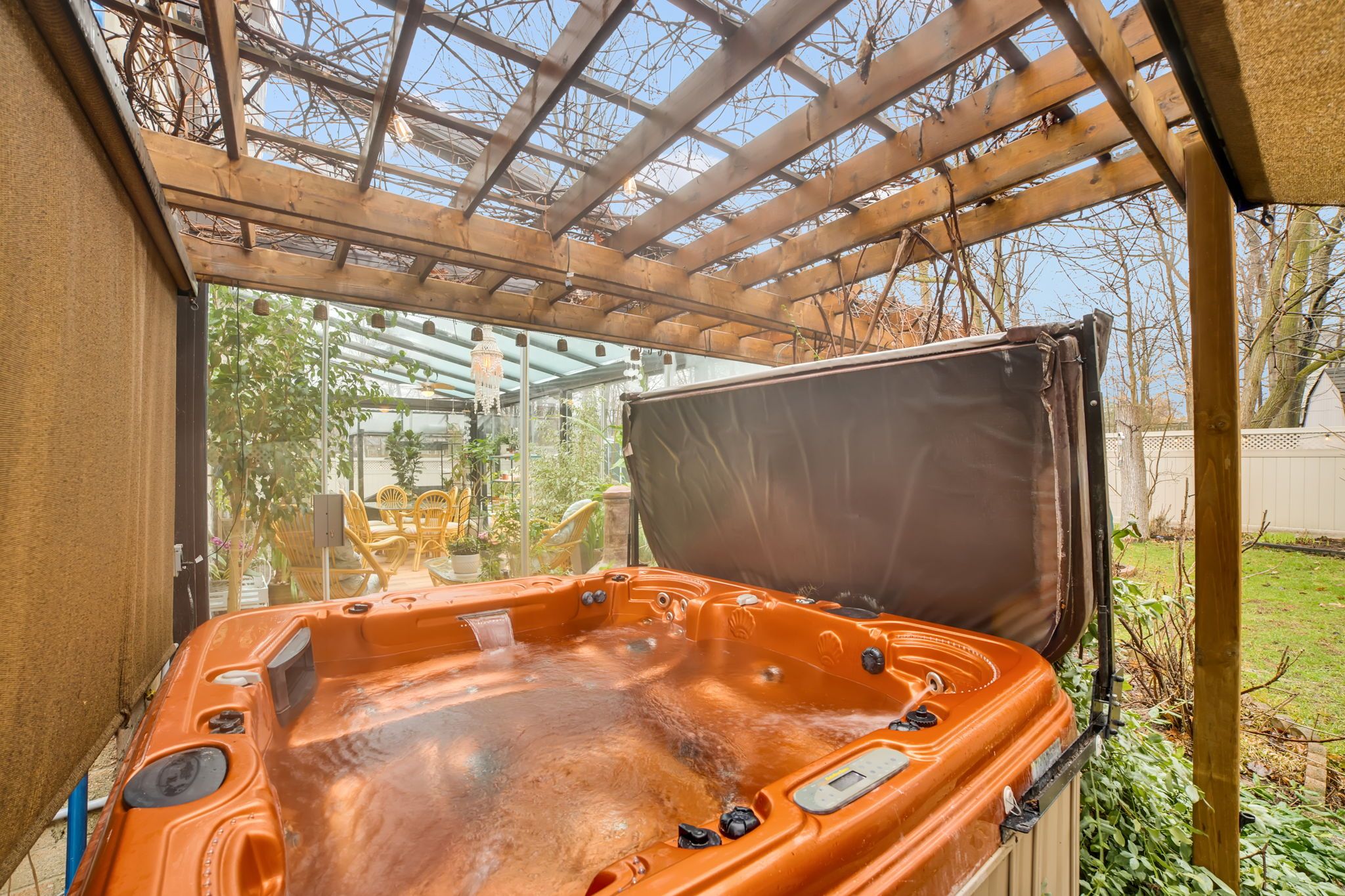 • Outdoor space features a hot tub and upgraded concrete patio.