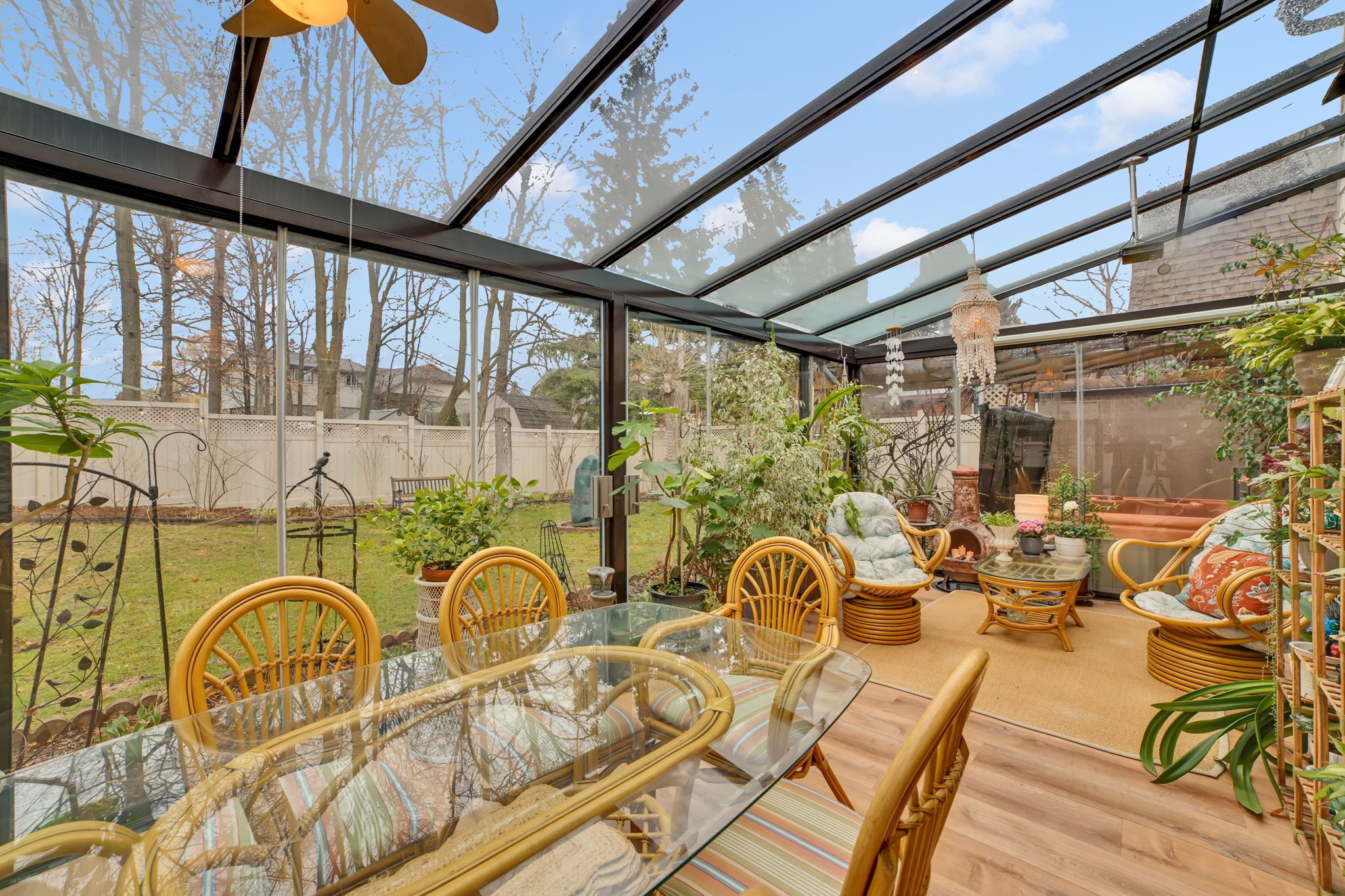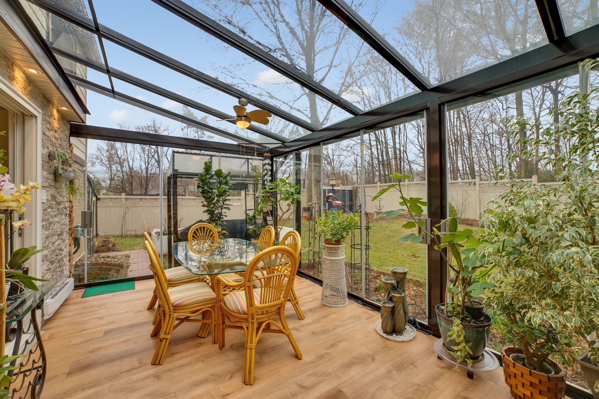 • Bright sunroom with heated floors, perfect for year-round enjoyment.