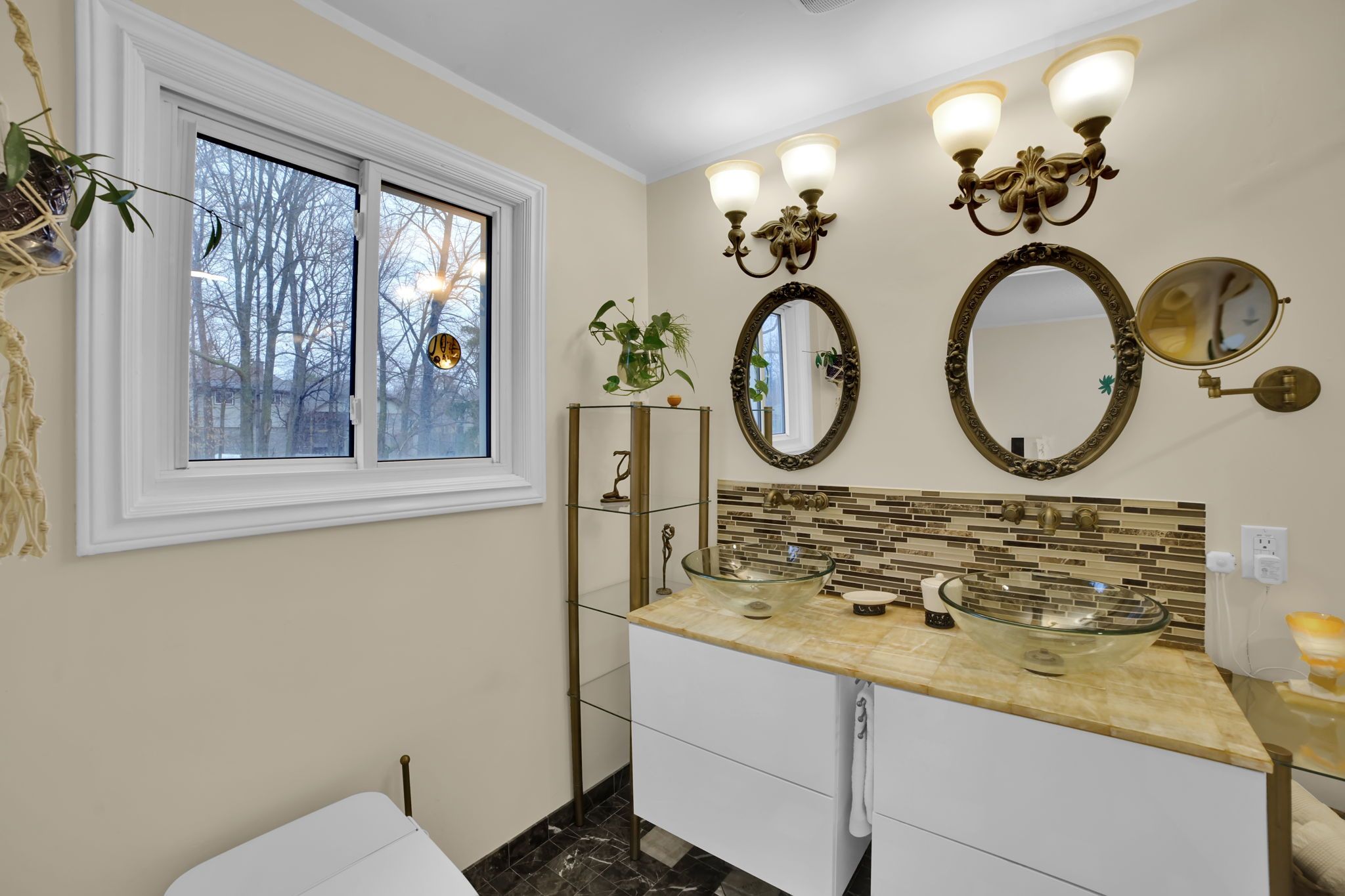 Exceptional 4-bedroom, 4-bathroom residence in one of burlington most desirable family neighbourhoods. Thoughtfully updated and meticulously maintained, this home offers a rare combination of style, comfort, and versatility. A standout feature is the sun-filled heated-floor sunroom-an inviting almost year-round retreat with automatic shading and overlooking the private backyard oasis. Screen and projector as an additional great option to spend a night with your family. Designed for both relaxation and entertaining, the outdoor space features a hot tub (2019), upgraded exposed aggregate concrete and driveway (2020), vinyl fencing with two gates (2022), and two sheds (2024). The fully finished basement with separate entrance, enclosed walkout (2022), and full kitchen provides ideal space for multi-generational living or income potential. Wooden fireplace in a living room brings lots of warmth and coziness to this home. The home showcases a beautifully renovated kitchen and bathrooms (2018) with elegant finishes, complemented by major upgrades including updated roof (2015), attic insulation (2022), and new eavestroughs, downspouts, and fascia (2025). Both toilets on the second floor have in-built bidet functionality (one is tankless) with electrical heating for water and seat, uv-sanitizing and self-cleaning. A common bathroom shower has an automatic thermoregulated faucet. One bathtub is air jets, another has whirlpool jets. For more details about property upgrades please refer to listing attachments. This house is perfectly located at brant hills, close to top-rated schools, parks, shopping, and commuter routes, this move-in-ready home offers an exceptional lifestyle in a prime burlington setting.