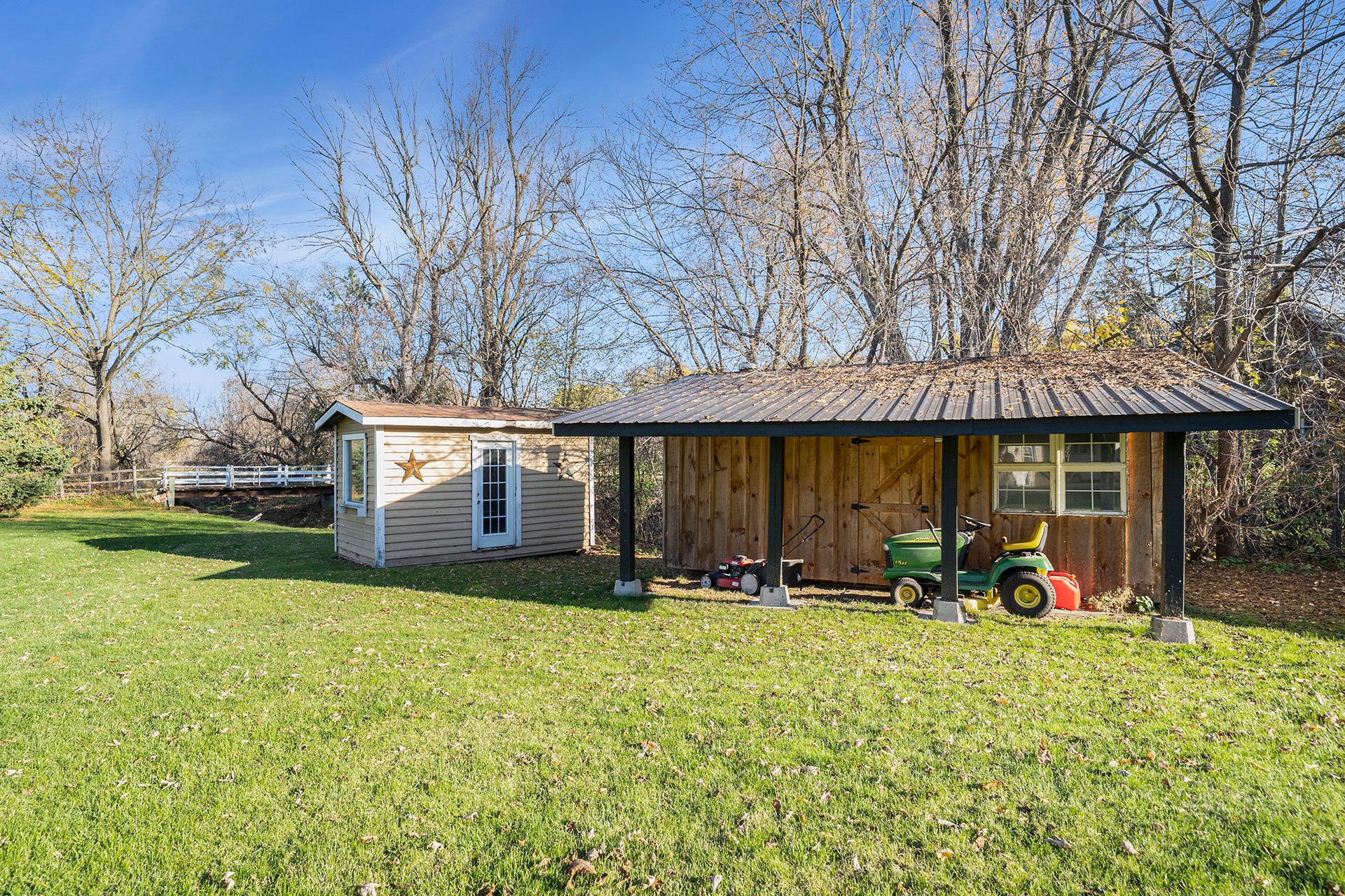 • Enjoy outdoor space with a deck, garage, and two storage sheds.