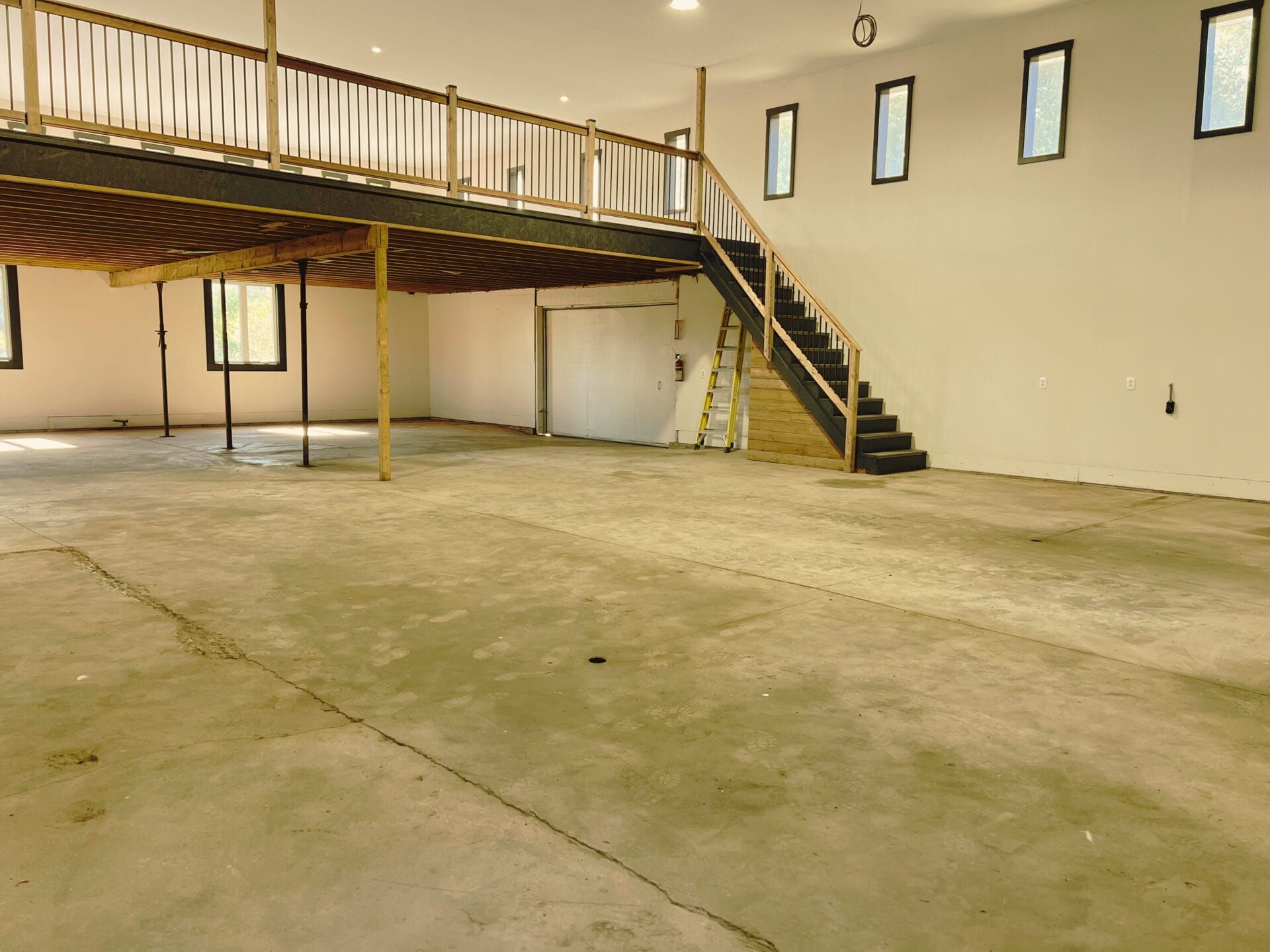 • 1200 sq ft mezzanine with new vinyl flooring and fresh paint.