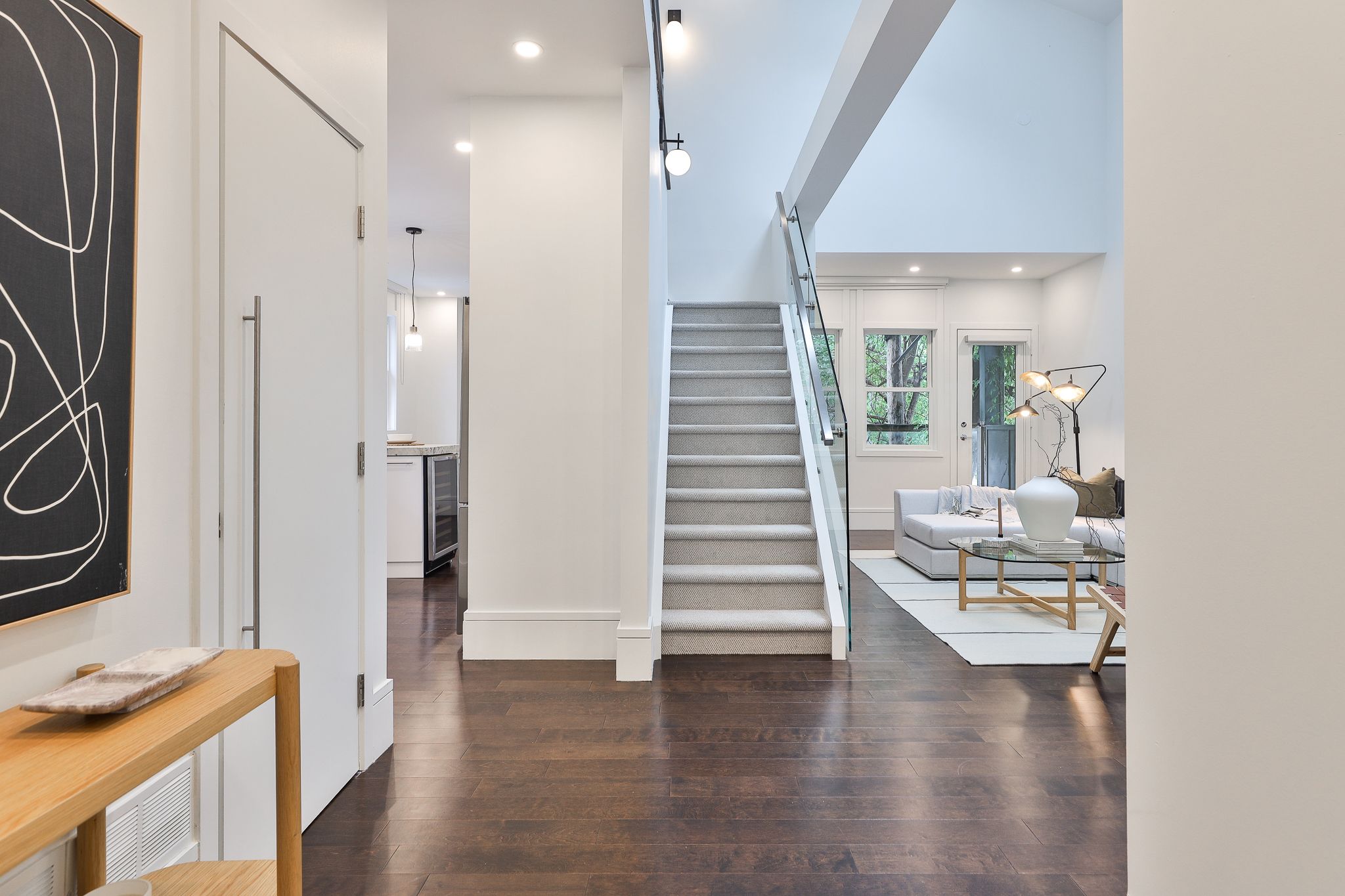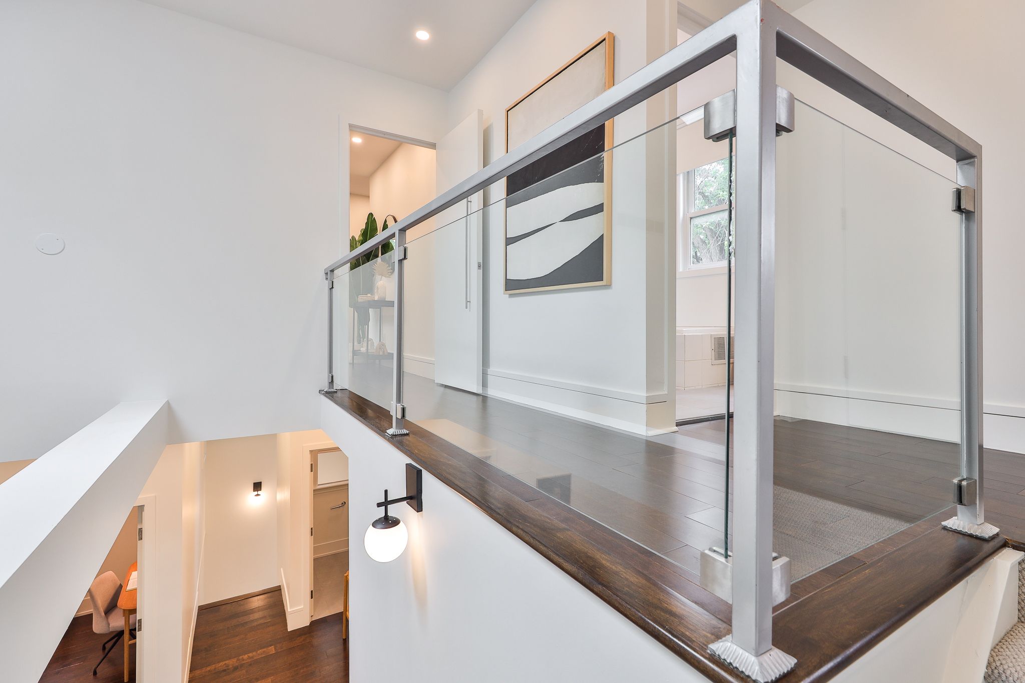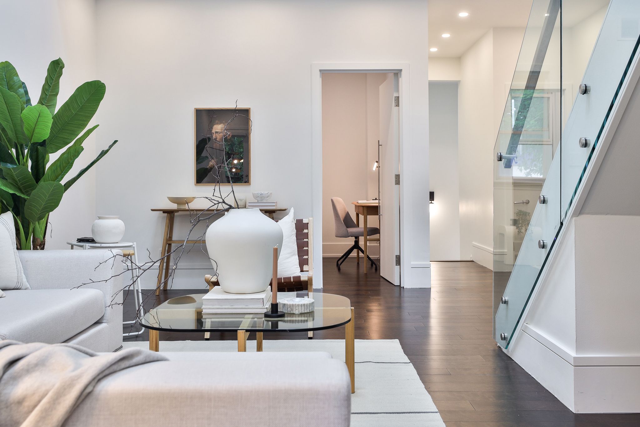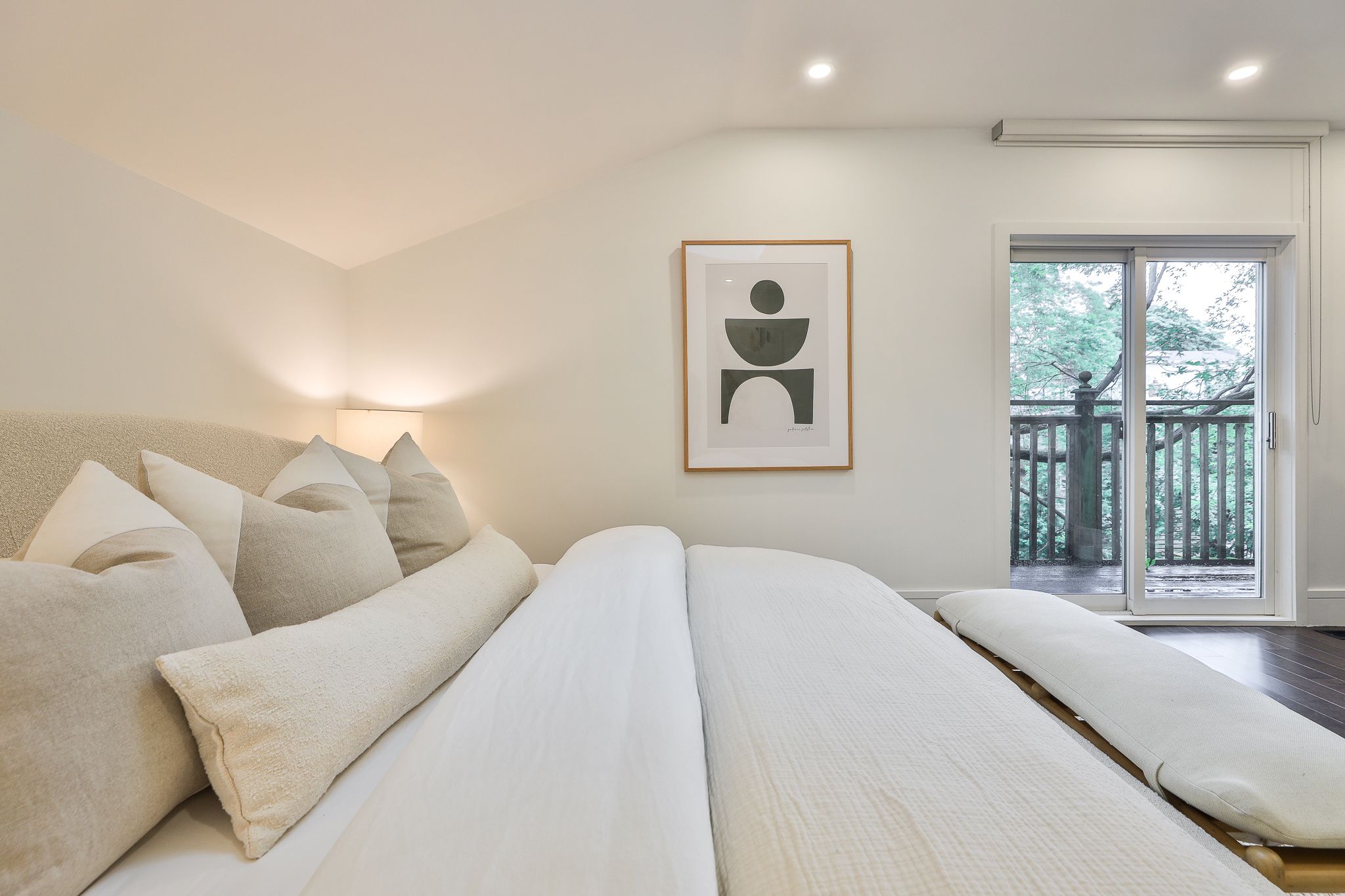 Not your carriage-era coach house. Tucked discreetly off a leafy laneway in the heart of leslieville, this architecturally unassuming turn-of-the-millennium coach house originally constructed in 1999 reveals a striking yet humble private rear-lot residence. Behind its unassuming facade and dormered rooflines lies a mystery. A slice of the unexpected the exterior nods to its carriage house roots while concealing a bright, modernized interior. Step inside and discover a reimagined space where volume, light, and minimalism take centre stage. Crisp white walls and lofty ceilings offer a gallery-like backdrop for a curated aesthetic and an anything goes approach. Equal parts showpiece and workhorse, the kitchen wrapped in stone countertops and glossy custom cabinetry, accented by pendant lighting and polished steel finishes. A quiet scandinavian style informs the open-concept living and dining, where its clean lines, glass enclosures, rich floors, large windows and cut-outs offer up something you don't see on the daily! Upstairs, the primary evokes a boutique hotel retreat with its serene palette, walk-through closet, and access to a secluded treetop balcony. In addition, you're bonus-ed with a studio-sized second bedroom, a huge four-piece bath with room to grow and a hallway overlooking the main floor, punctuated by four skylights and extra storage. And if that ain't enough, we've stacked your first level with a private office (or guest bedroom), extra outdoor space, a powder room, front hallway closet and separate laundry off the kitchen. Still not sold? How about the built-in garages perfect for your cars, your gear, your pottery, your art, your band.. Or even your in-laws. All the benefits of freehold living but without the maintenance (or those maintenance fees)! We cannot wait for you to take a whirl and to let us know what you think! Admittedly, we'll have a hard time parting ways with this laneway legend but, they say if you love something, set it free right?
