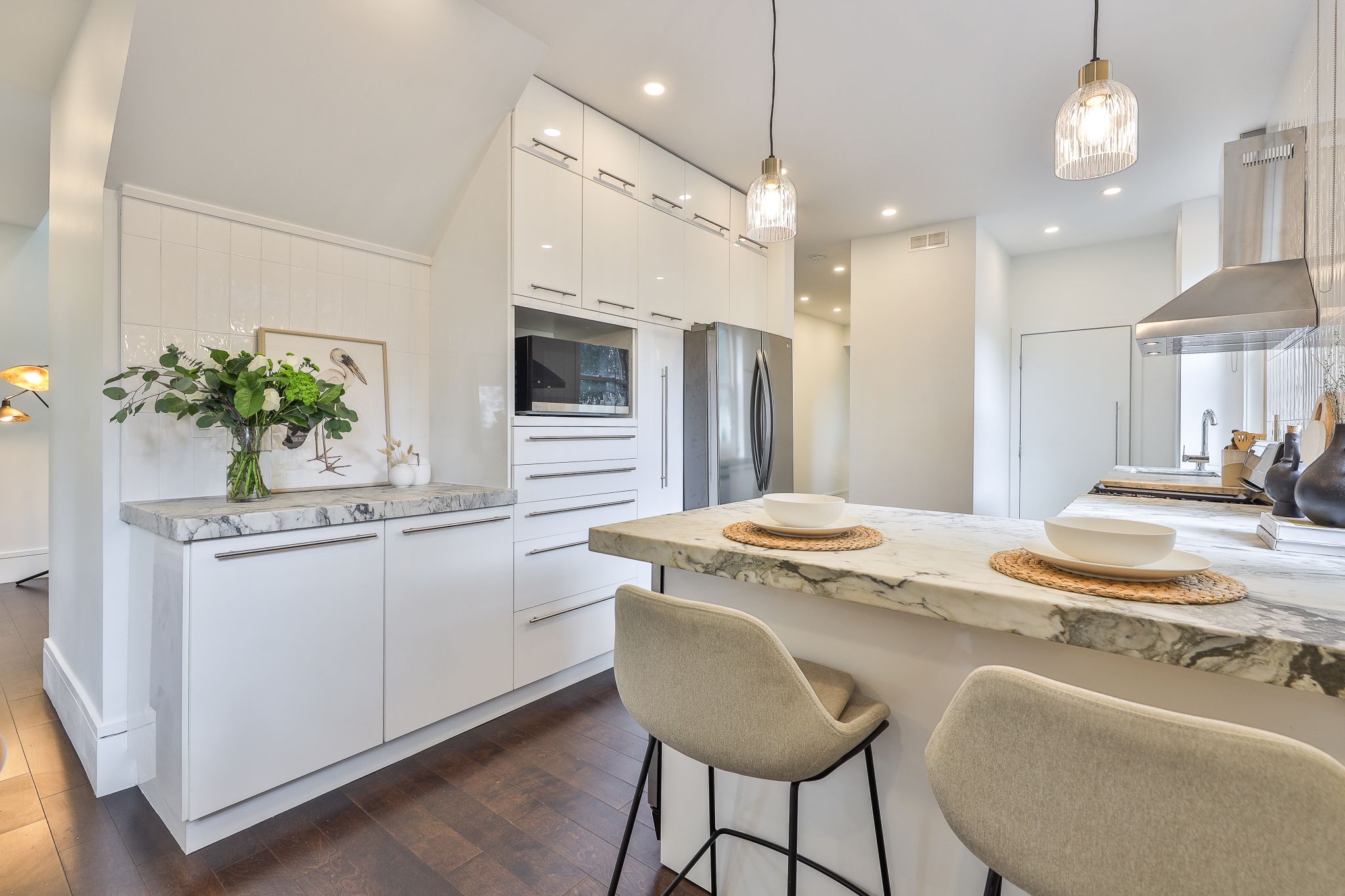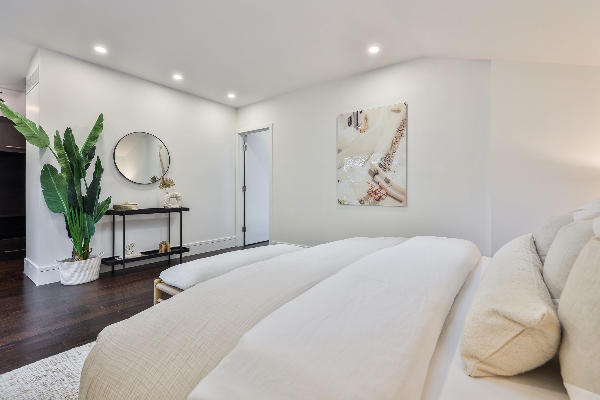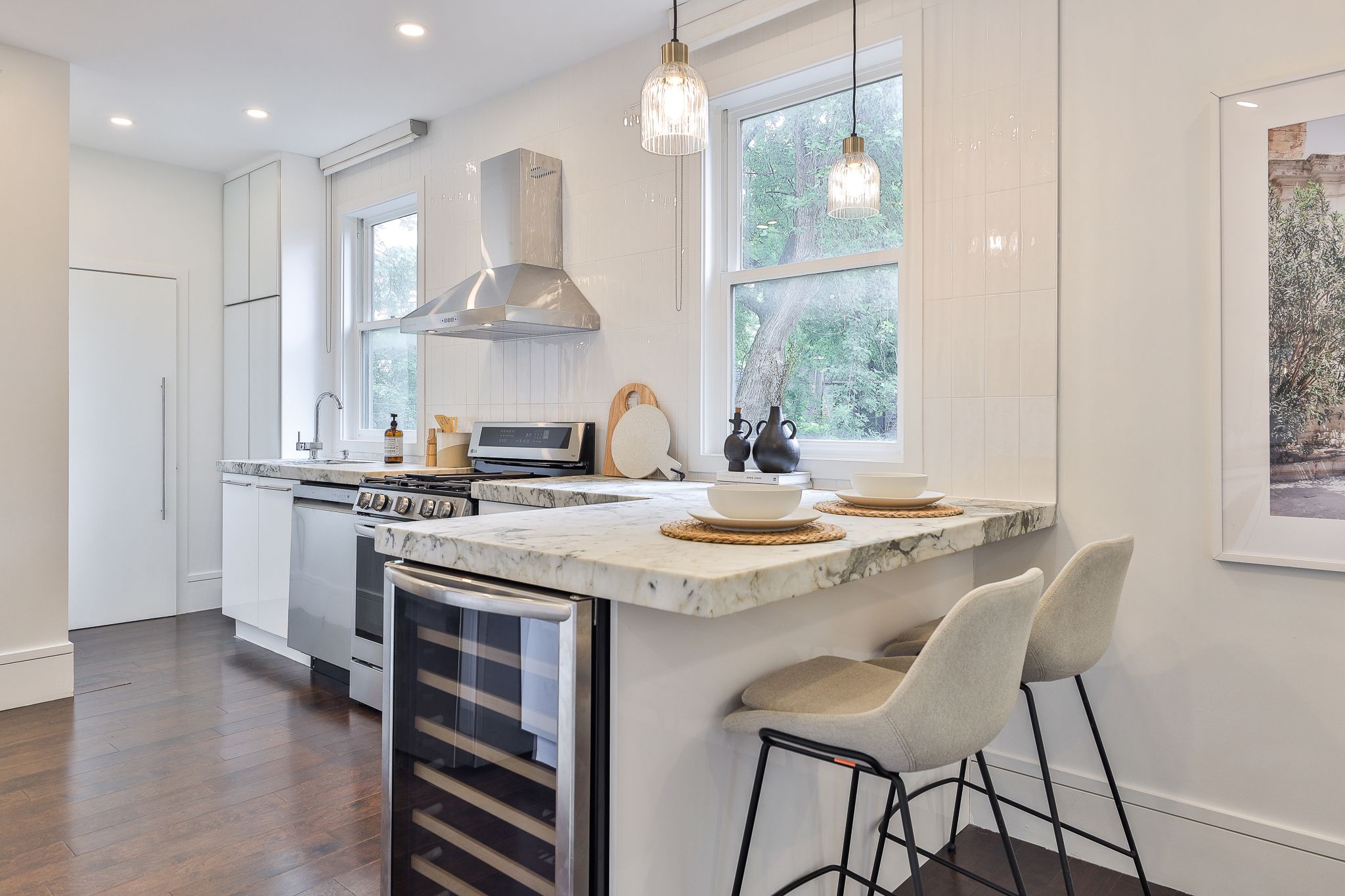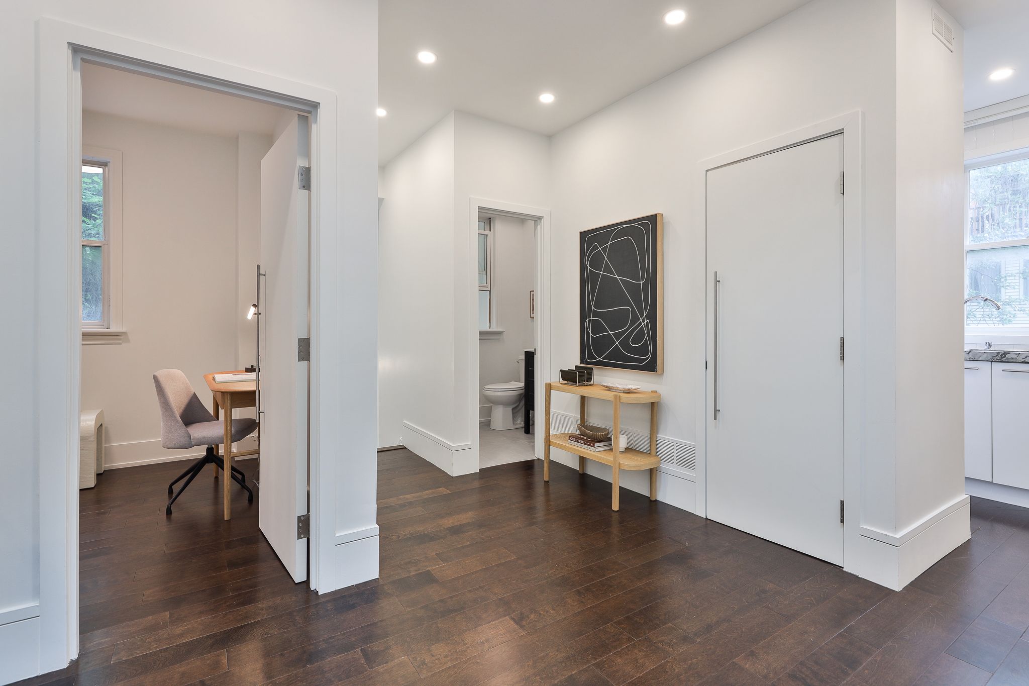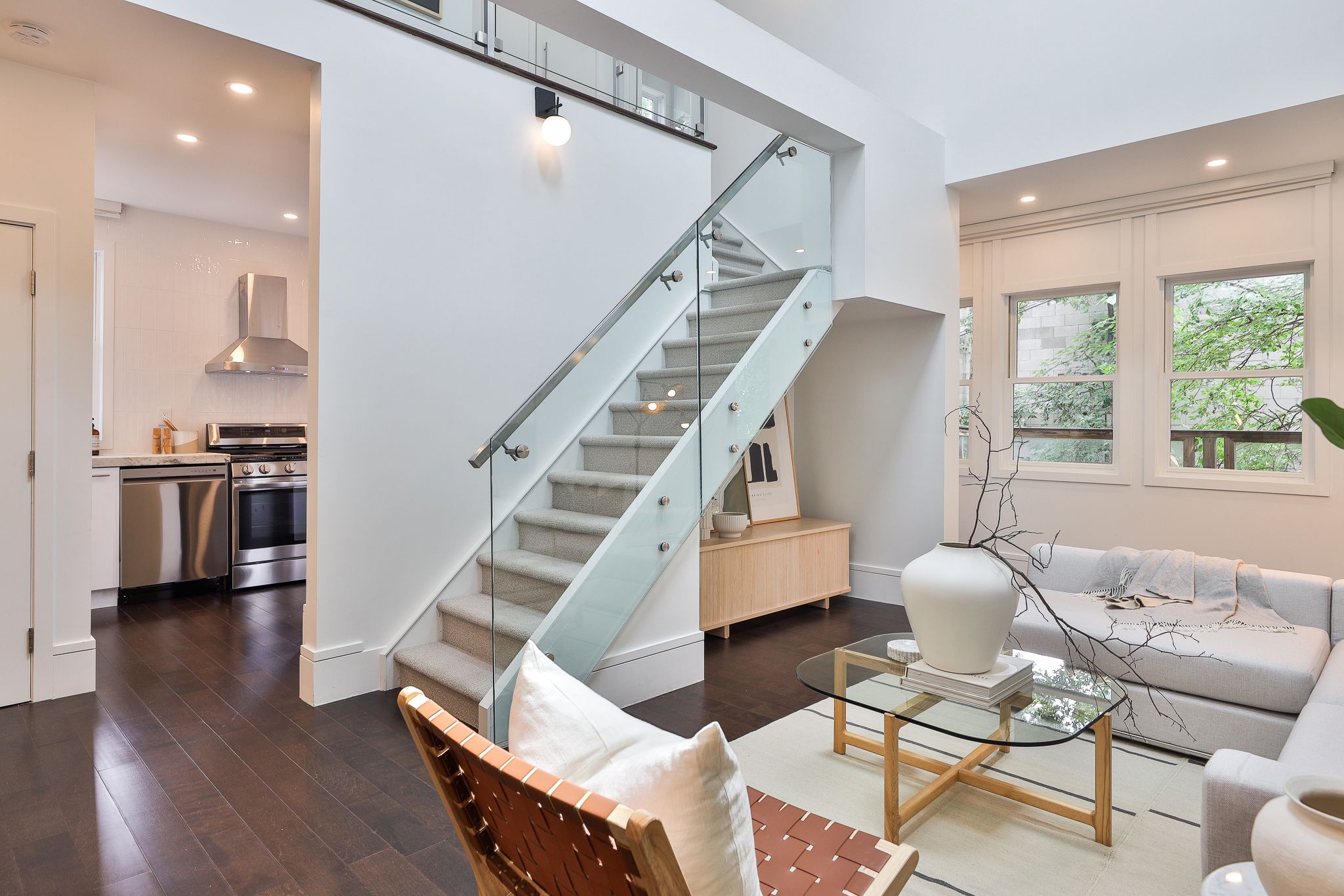 Not your carriage-era coach house. Tucked discreetly off a leafy laneway in the heart of leslieville, this architecturally unassuming turn-of-the-millennium coach house originally constructed in 1999 reveals a striking yet humble private rear-lot residence. Behind its unassuming facade and dormered rooflines lies a mystery. A slice of the unexpected the exterior nods to its carriage house roots while concealing a bright, modernized interior. Step inside and discover a reimagined space where volume, light, and minimalism take centre stage. Crisp white walls and lofty ceilings offer a gallery-like backdrop for a curated aesthetic and an anything goes approach. Equal parts showpiece and workhorse, the kitchen wrapped in stone countertops and glossy custom cabinetry, accented by pendant lighting and polished steel finishes. A quiet scandinavian style informs the open-concept living and dining, where its clean lines, glass enclosures, rich floors, large windows and cut-outs offer up something you don't see on the daily! Upstairs, the primary evokes a boutique hotel retreat with its serene palette, walk-through closet, and access to a secluded treetop balcony. In addition, you're bonus-ed with a studio-sized second bedroom, a huge four-piece bath with room to grow and a hallway overlooking the main floor, punctuated by four skylights and extra storage. And if that ain't enough, we've stacked your first level with a private office (or guest bedroom), extra outdoor space, a powder room, front hallway closet and separate laundry off the kitchen. Still not sold? How about the built-in garages perfect for your cars, your gear, your pottery, your art, your band.. Or even your in-laws. All the benefits of freehold living but without the maintenance (or those maintenance fees)! We cannot wait for you to take a whirl and to let us know what you think! Admittedly, we'll have a hard time parting ways with this laneway legend but, they say if you love something, set it free right?