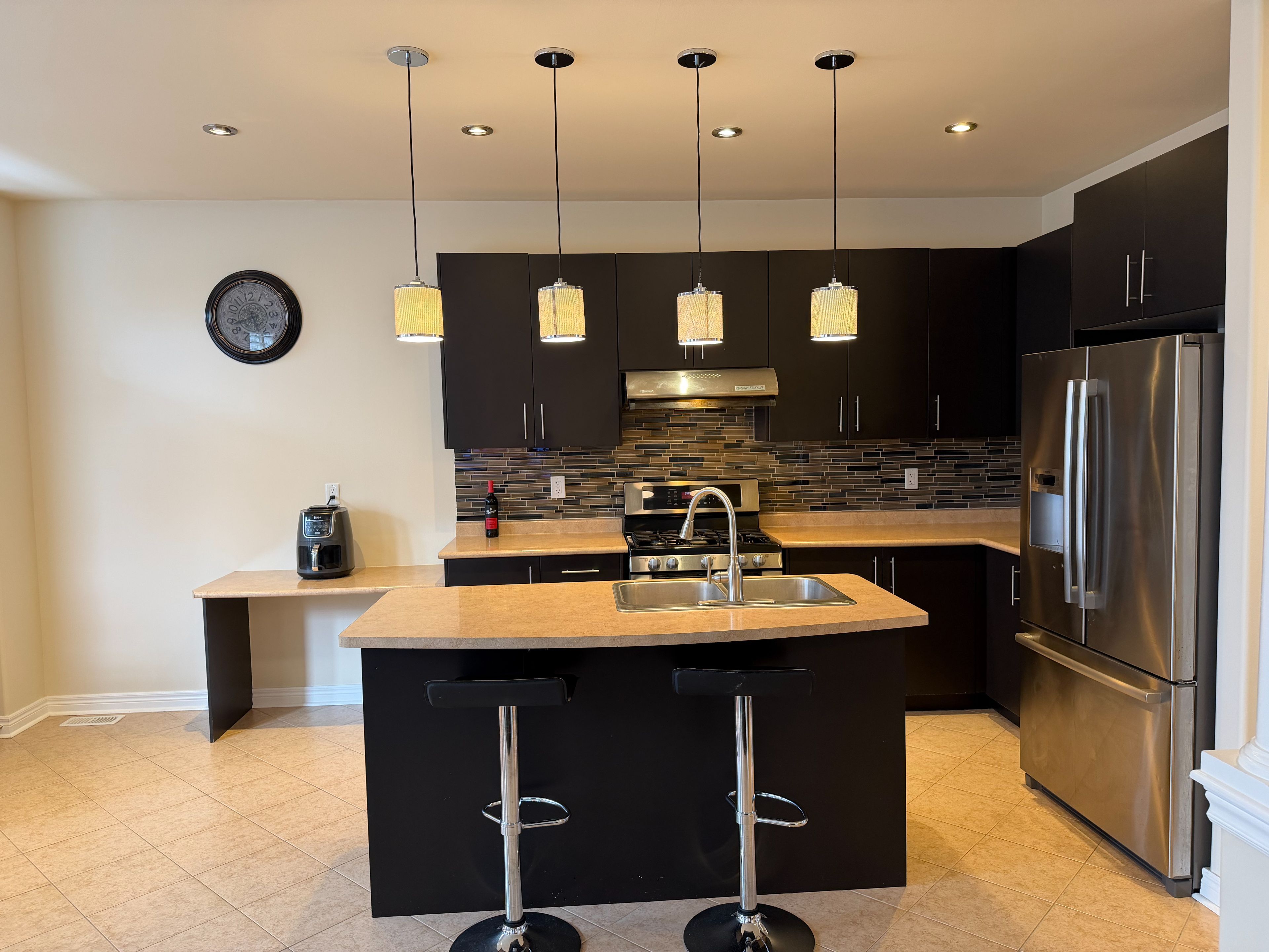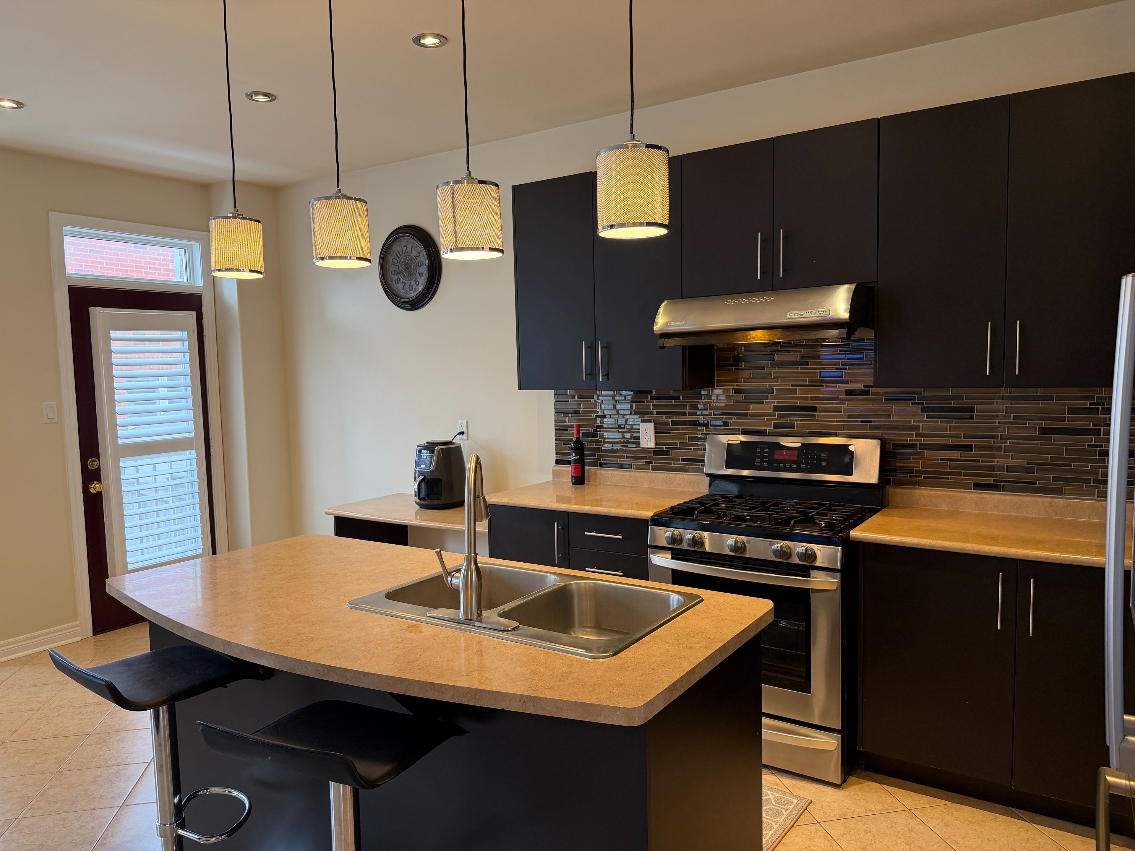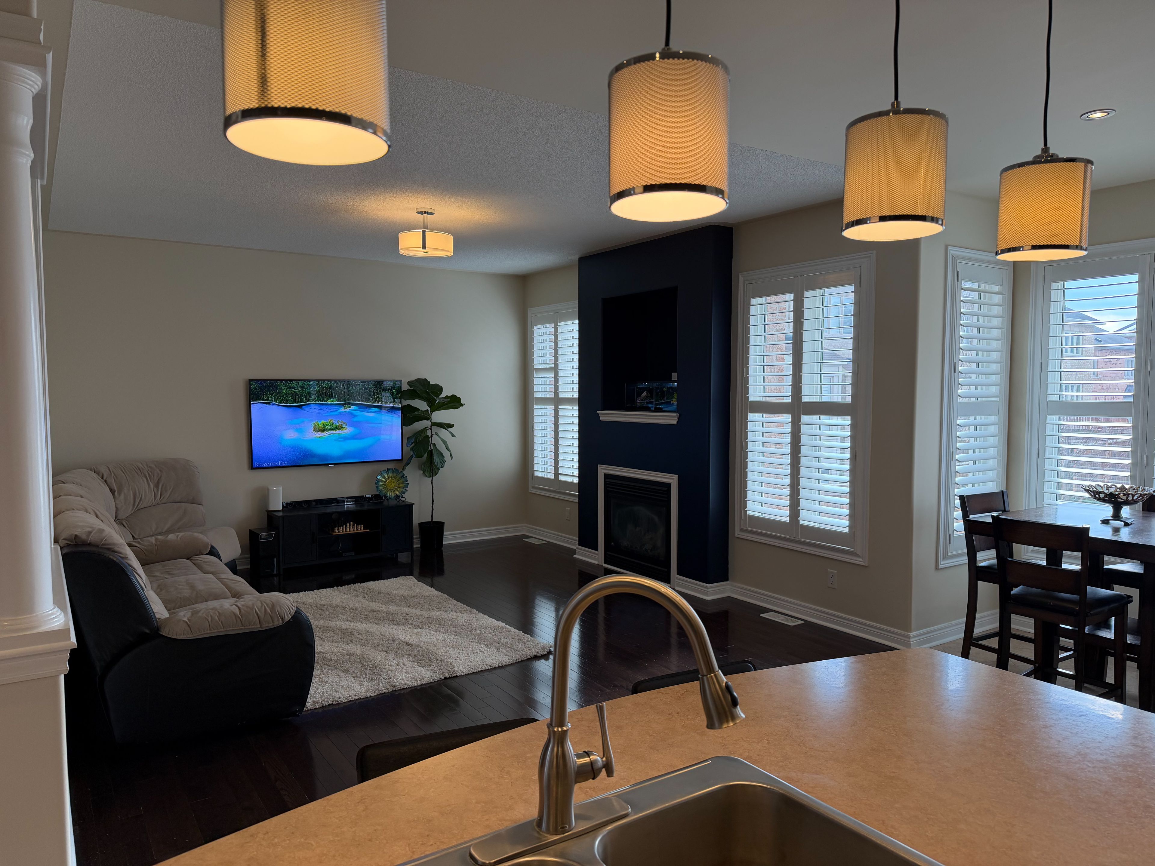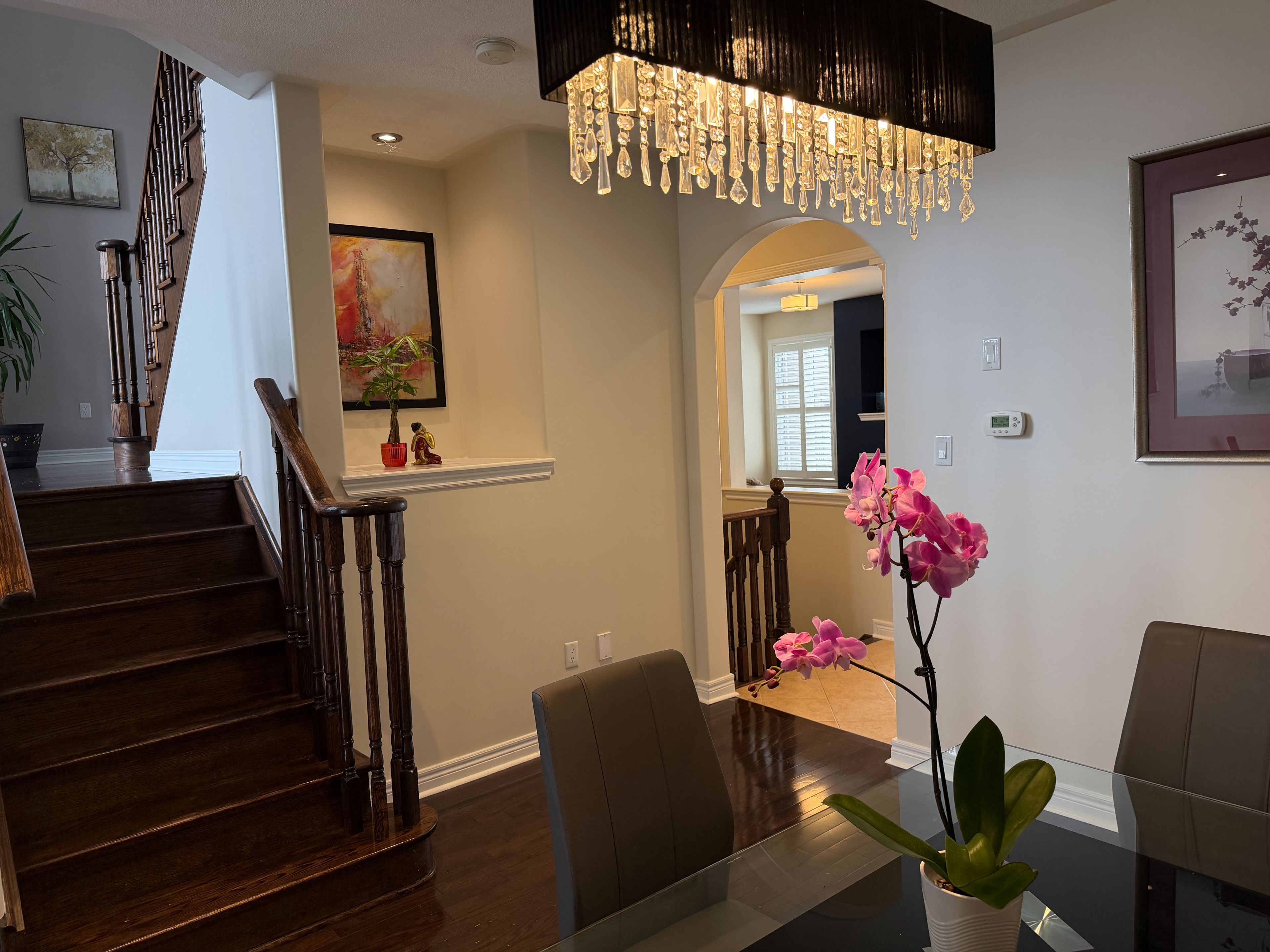 This stunning award-winning jasper model by fieldgate is a must-see, offering an airy, open-concept layout with 2,505 sq. Ft. Of above-grade living space (as per builder's plan). Situated on a rare no-sidewalk 40ft lot, this one-owner home provides a private, serene atmosphere with unobstructed green space views. The heart of the home is the magnificent east-facing mid-level great room, featuring a 21-foot cathedral ceiling, elegant bay windows, and double walk-out doors to a private balcony-perfect for watching the sunrise. The main floor boasts soaring 9-foot ceilings, complemented by chocolate brown stained staircases, matching hardwood floors, and premium california shutters throughout. With over $50k in original builder upgrades, the home features a gourmet kitchen with ebony-stained maple cabinets, a designer glass backsplash, pot lights, and two cozy fireplaces. Practical updates include a brand-new roof (2024) and fresh paint, ensuring a move-in-ready experience. This meticulously maintained home offers parking for 4 vehicles and is being offered on the market for the very first time! Located minutes from the go station, hwy 407/404, schools, and the library.