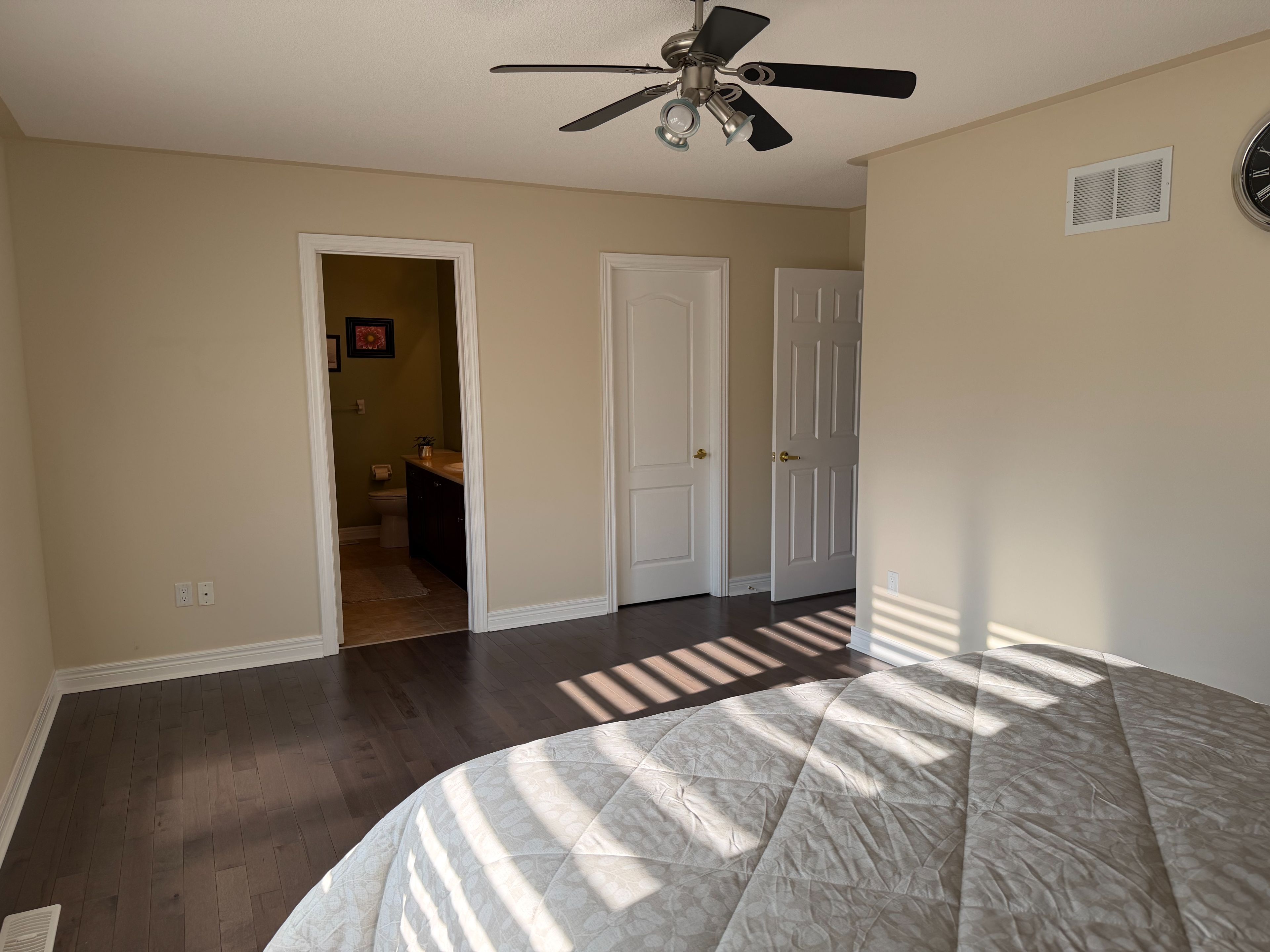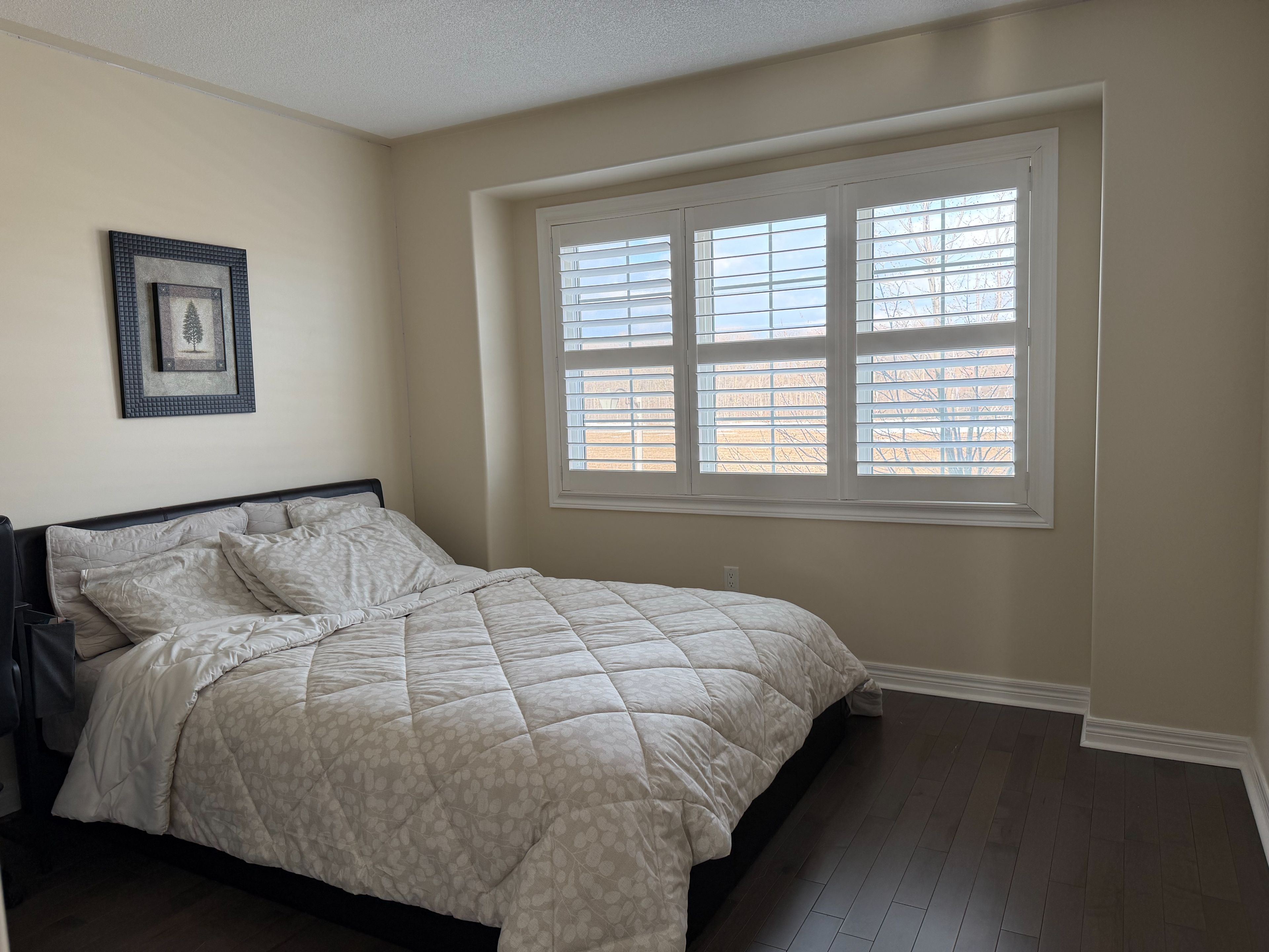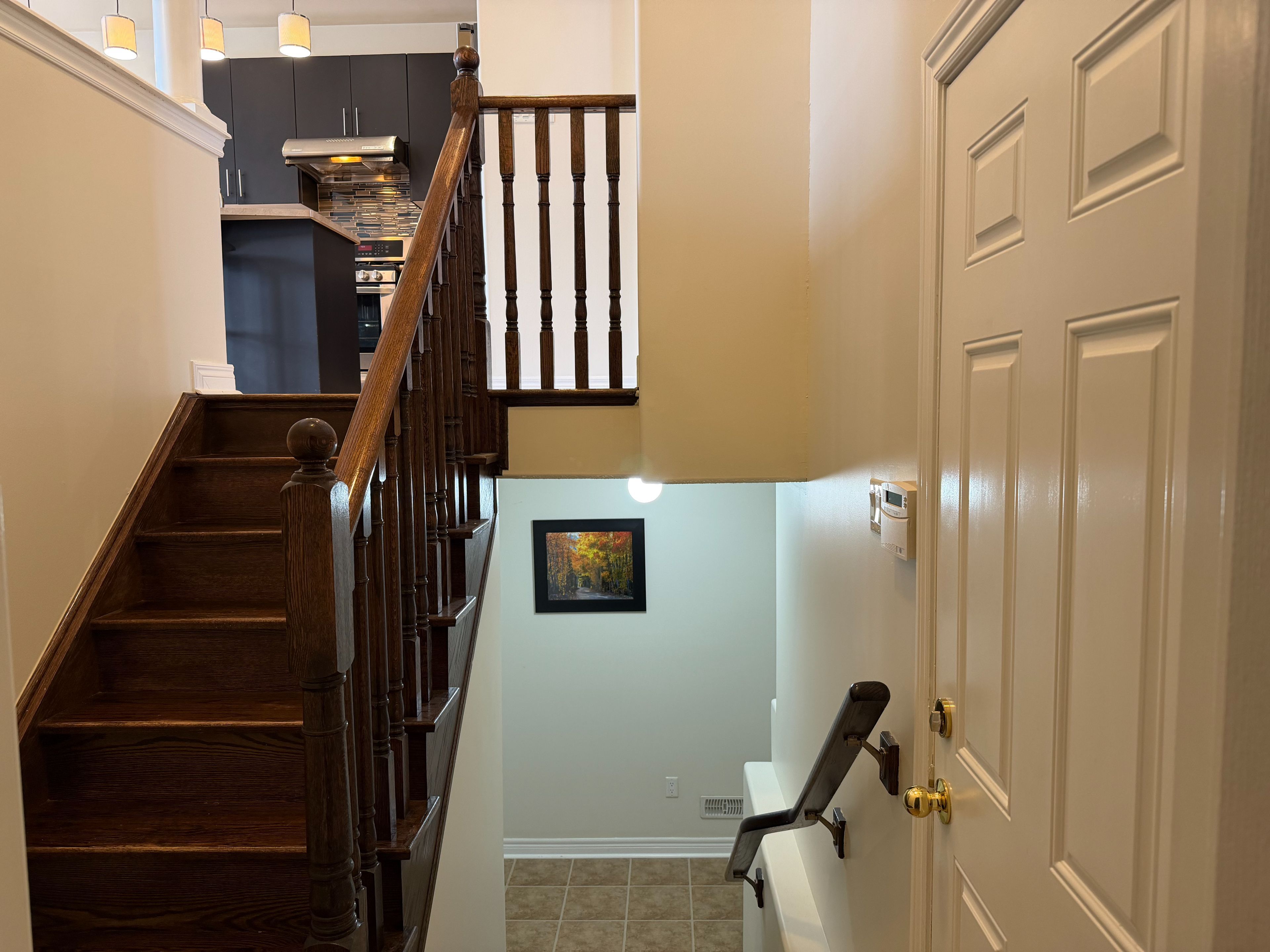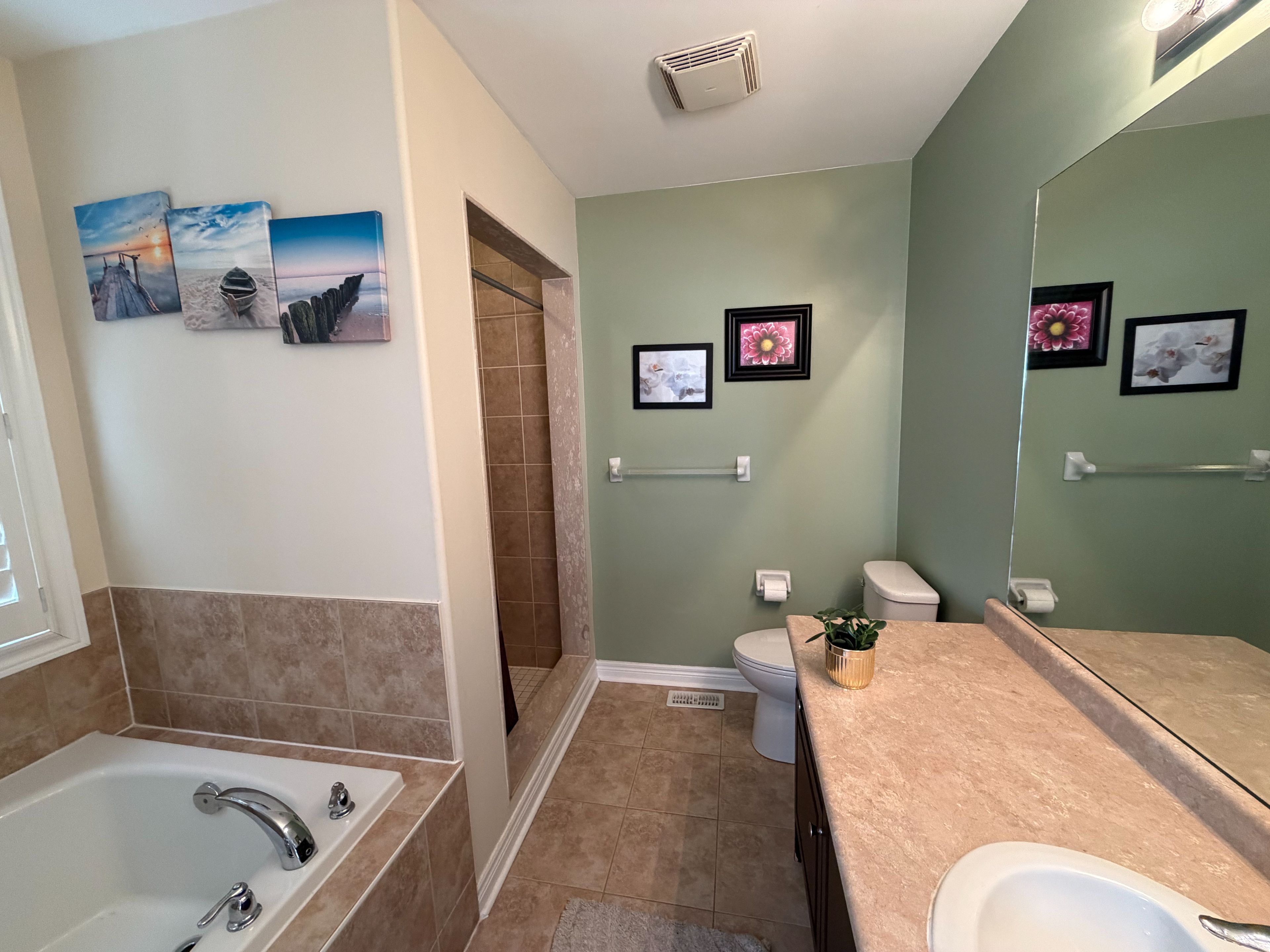 This stunning award-winning jasper model by fieldgate is a must-see, offering an airy, open-concept layout with 2,505 sq. Ft. Of above-grade living space (as per builder's plan). Situated on a rare no-sidewalk 40ft lot, this one-owner home provides a private, serene atmosphere with unobstructed green space views. The heart of the home is the magnificent east-facing mid-level great room, featuring a 21-foot cathedral ceiling, elegant bay windows, and double walk-out doors to a private balcony-perfect for watching the sunrise. The main floor boasts soaring 9-foot ceilings, complemented by chocolate brown stained staircases, matching hardwood floors, and premium california shutters throughout. With over $50k in original builder upgrades, the home features a gourmet kitchen with ebony-stained maple cabinets, a designer glass backsplash, pot lights, and two cozy fireplaces. Practical updates include a brand-new roof (2024) and fresh paint, ensuring a move-in-ready experience. This meticulously maintained home offers parking for 4 vehicles and is being offered on the market for the very first time! Located minutes from the go station, hwy 407/404, schools, and the library.