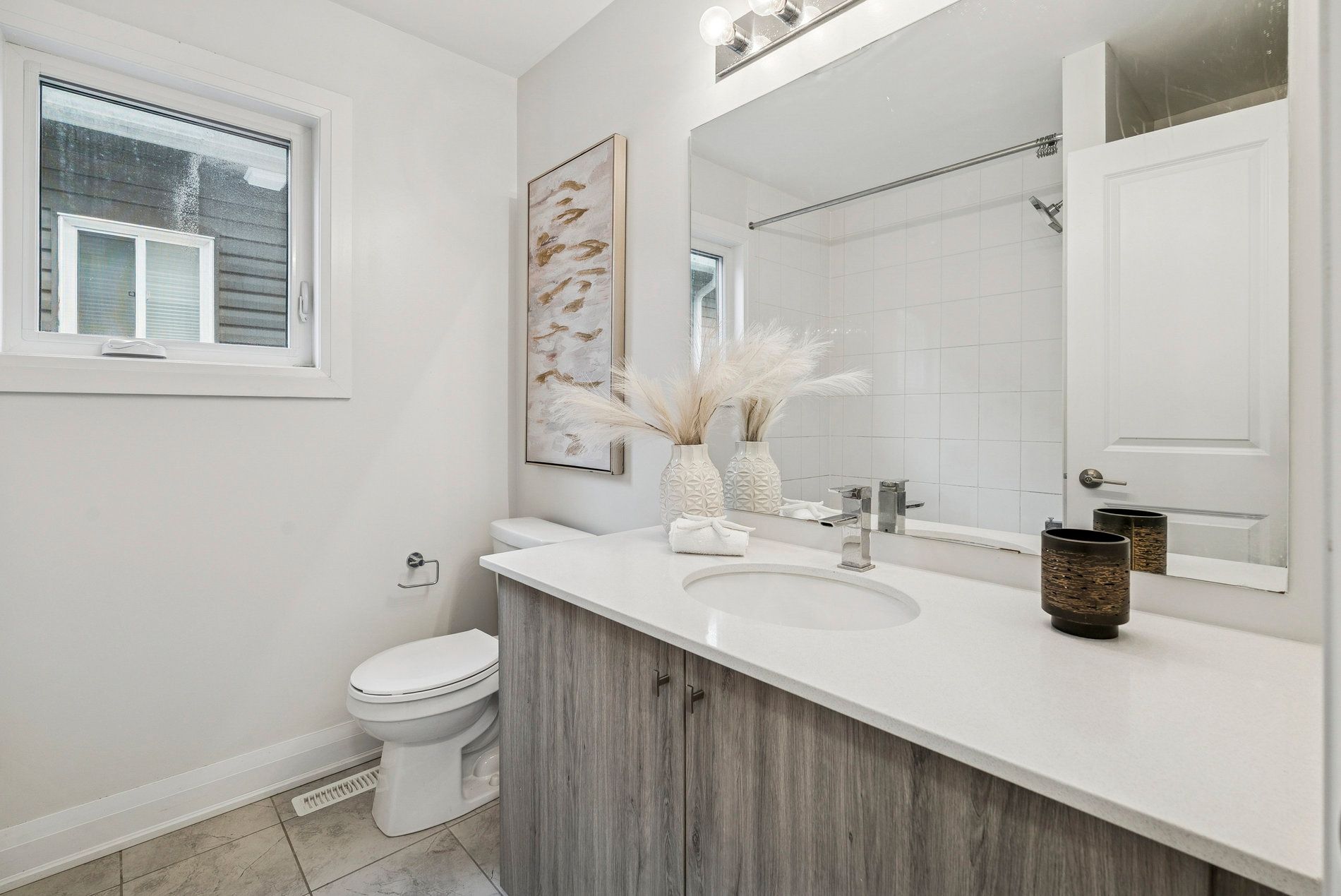 Welcome to this bright & beautiful end-unit townhome, offering modern living at its finest and completely move-in ready! Ideally situated in southwest barrie, you'll enjoy unbeatable convenience with quick access to highway 400, shopping, schools, parks, transit, and all essential amenities. Step inside and discover a bright, open-concept layout spanning three generous levels. This home features 3 bedrooms and 4 bathrooms (2 full & 2 half baths), including two spacious bedrooms on 3rd floor. Primary bedroom with its own private ensuite-perfect for families. An additional bedroom on the main floor (converted from the original family room/flex space) adds versatility for extended family or a home office. Sunny ground floor recreational room with walk-out to back deck and backyard - ideal for kids play area. Enjoy multiple outdoor spaces, including a cozy back deck and an oversized balcony in front ideal for morning coffee or evening relaxation. The home has been freshly painted throughout and includes central ac (2022) for year-round comfort. This is the perfect blend of style, space, and convenience-ideal for first-time buyers, growing families, or investors. Don't miss this exceptional opportunity!.