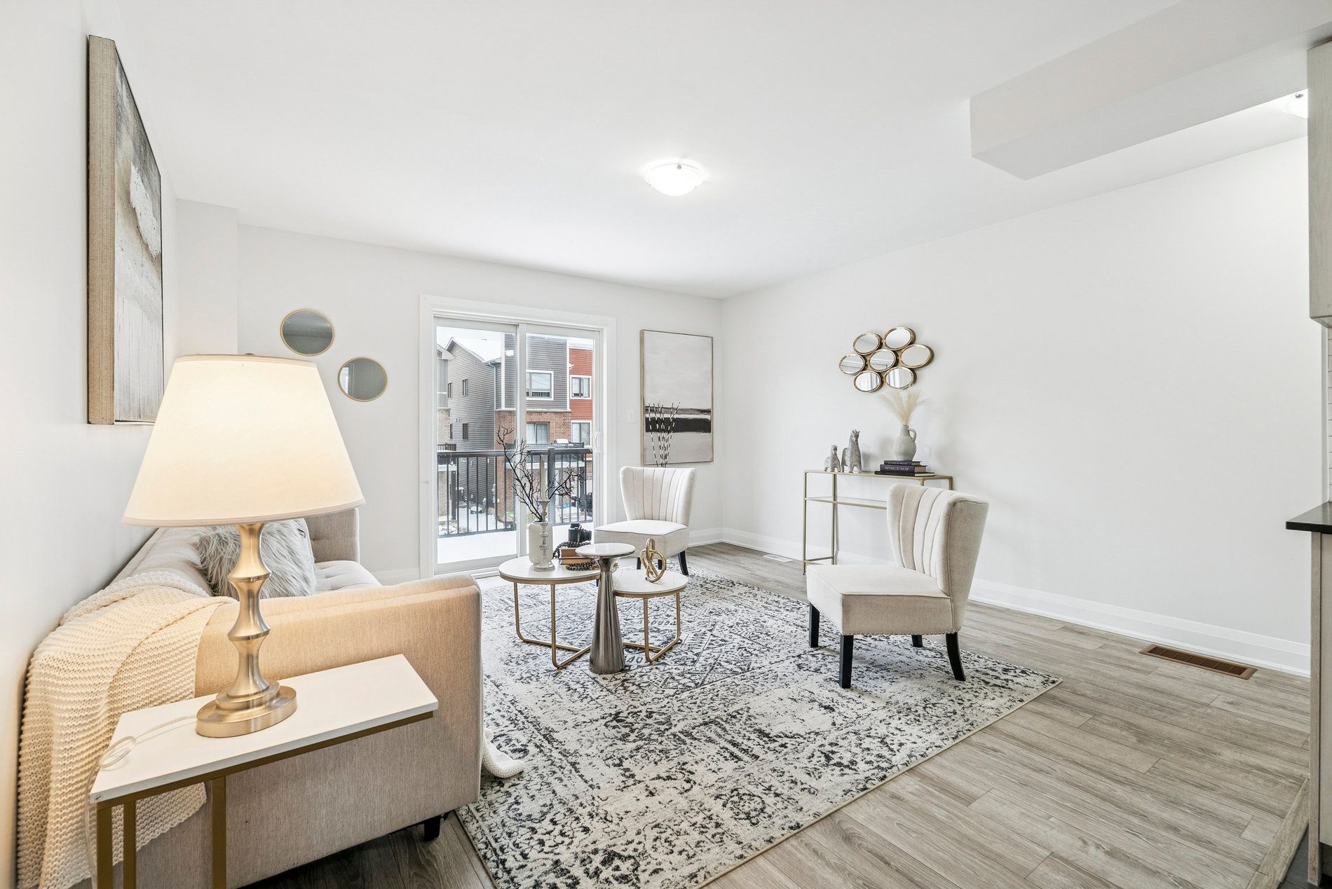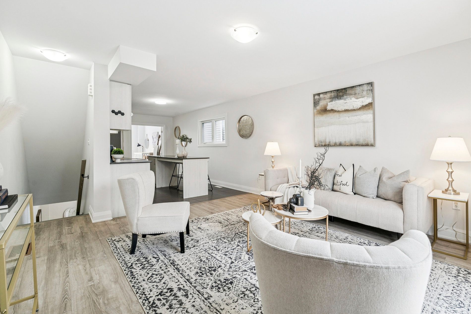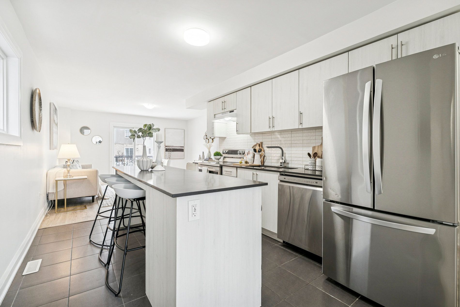 • Bright end-unit townhome with a modern open-concept layout across three levels.