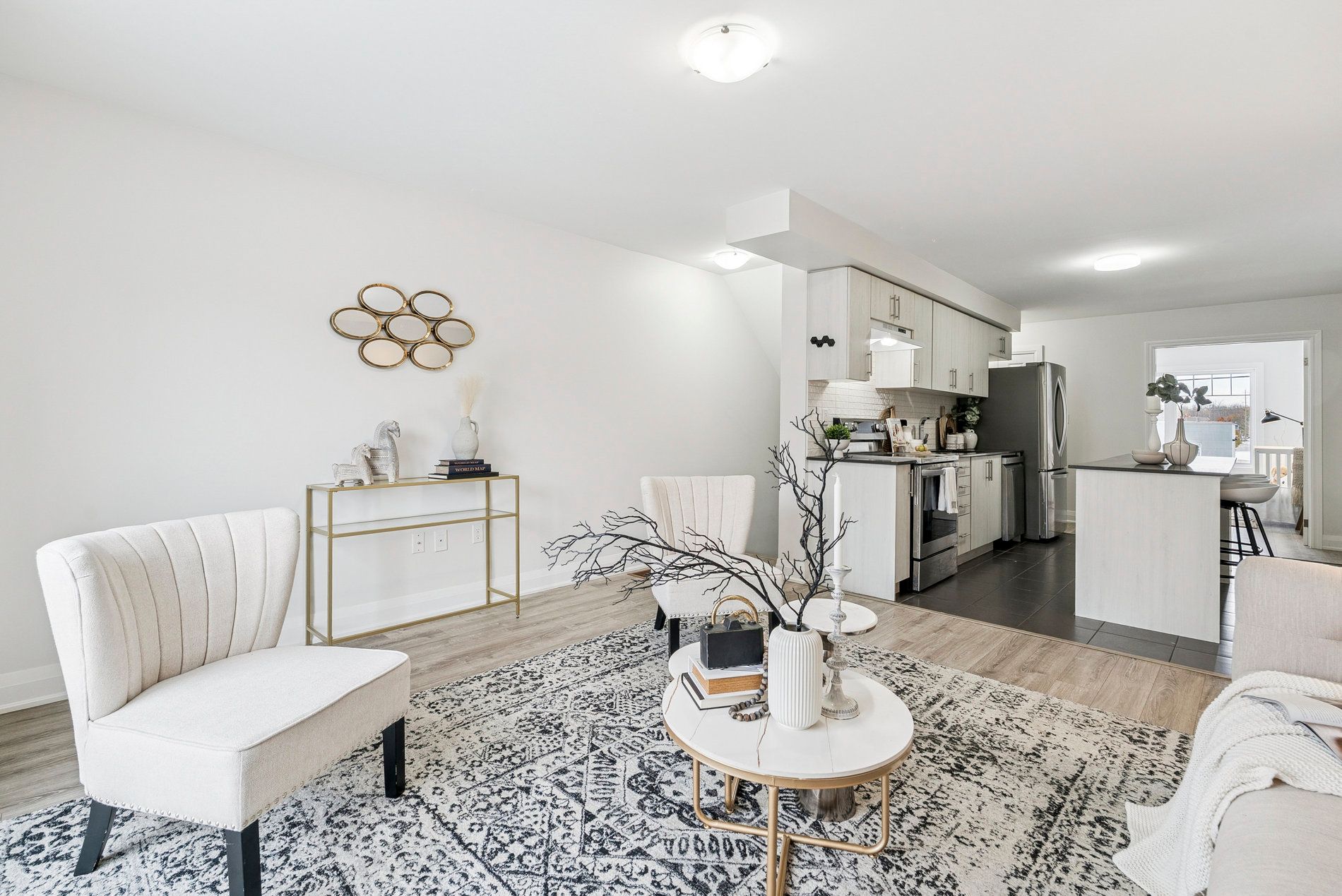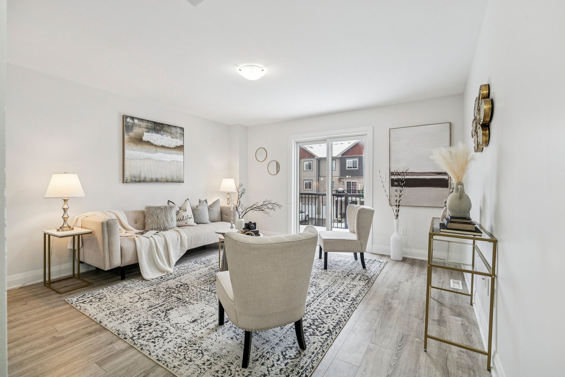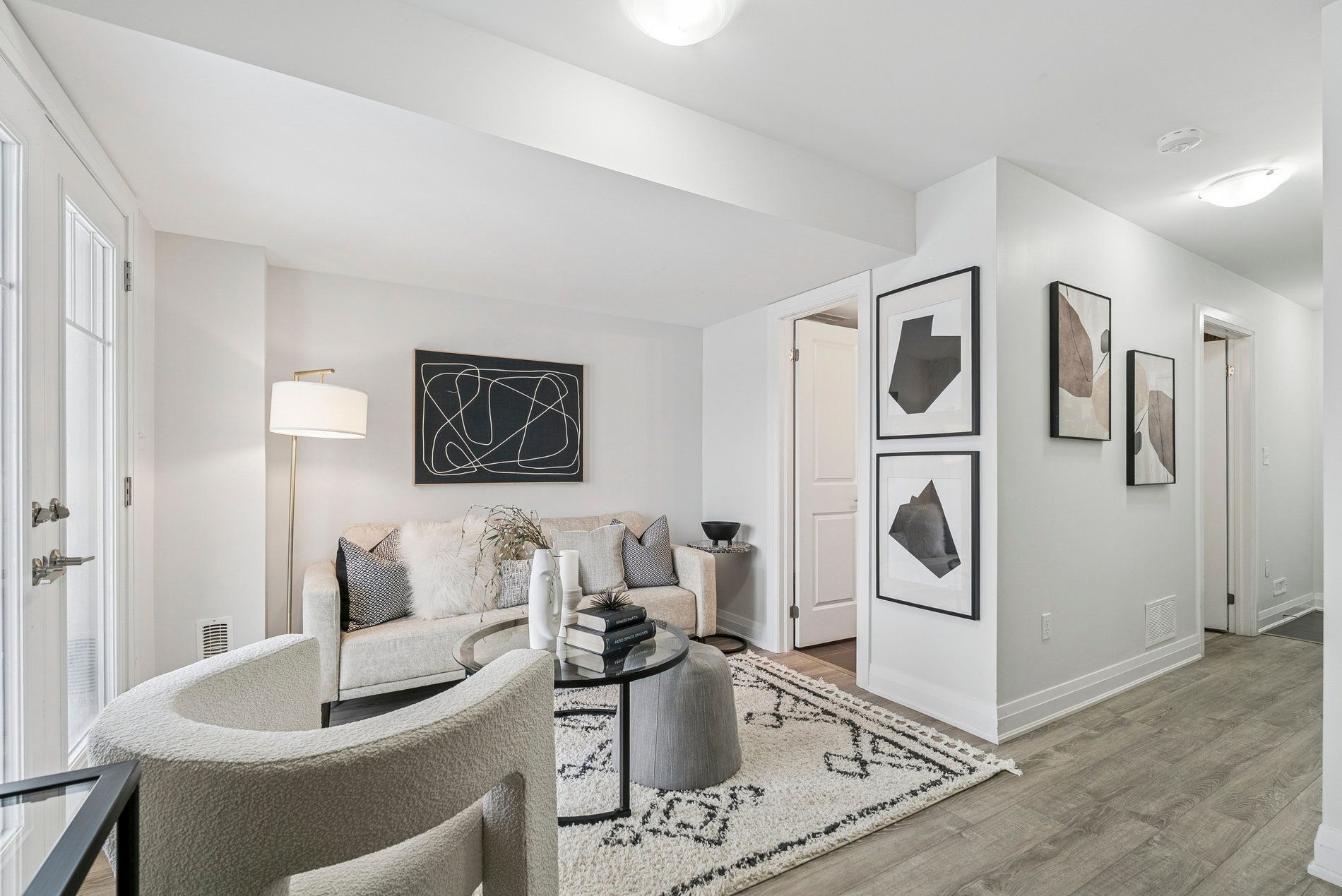 • Bright end-unit townhome with a modern open-concept layout across three levels.