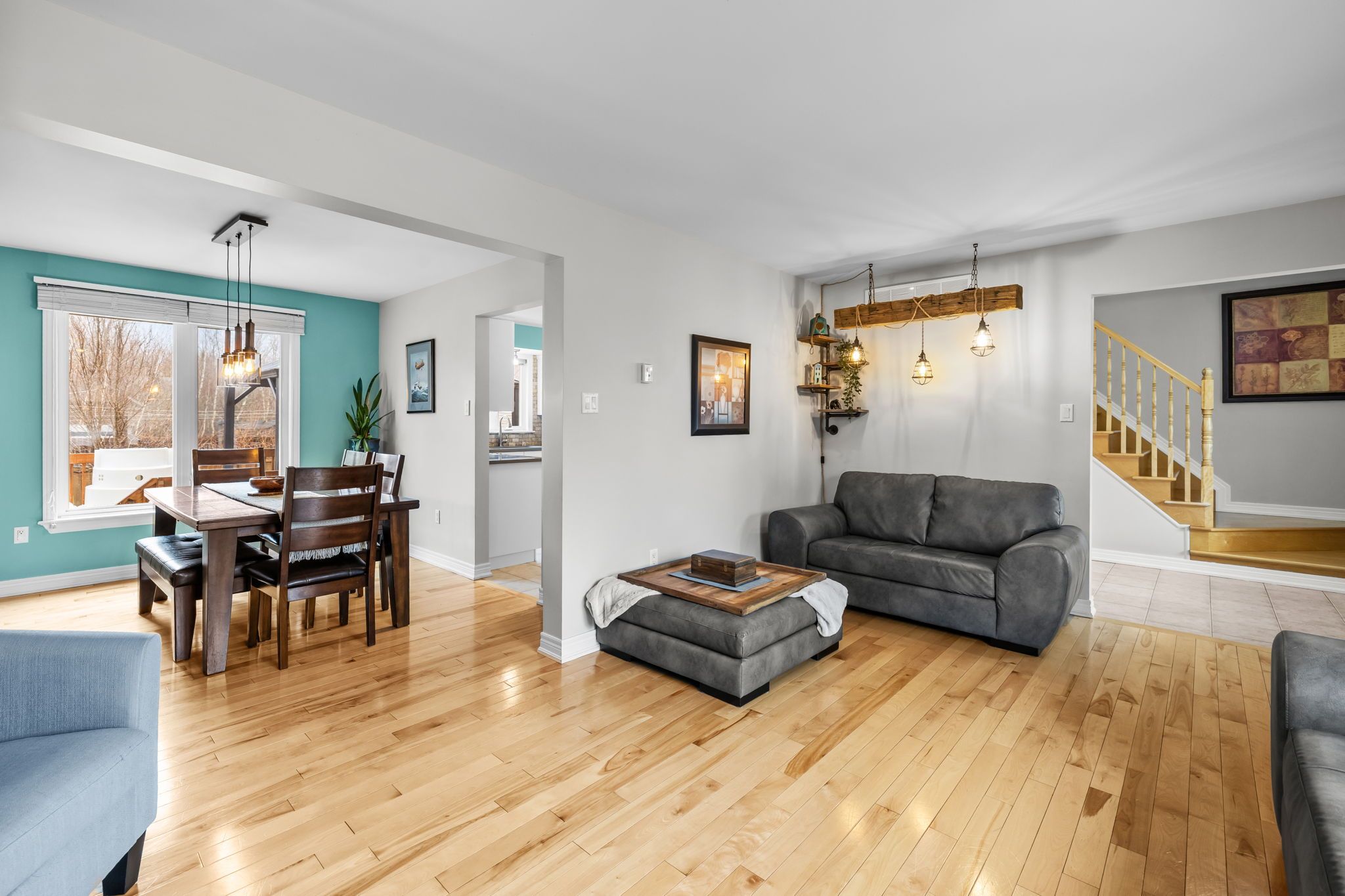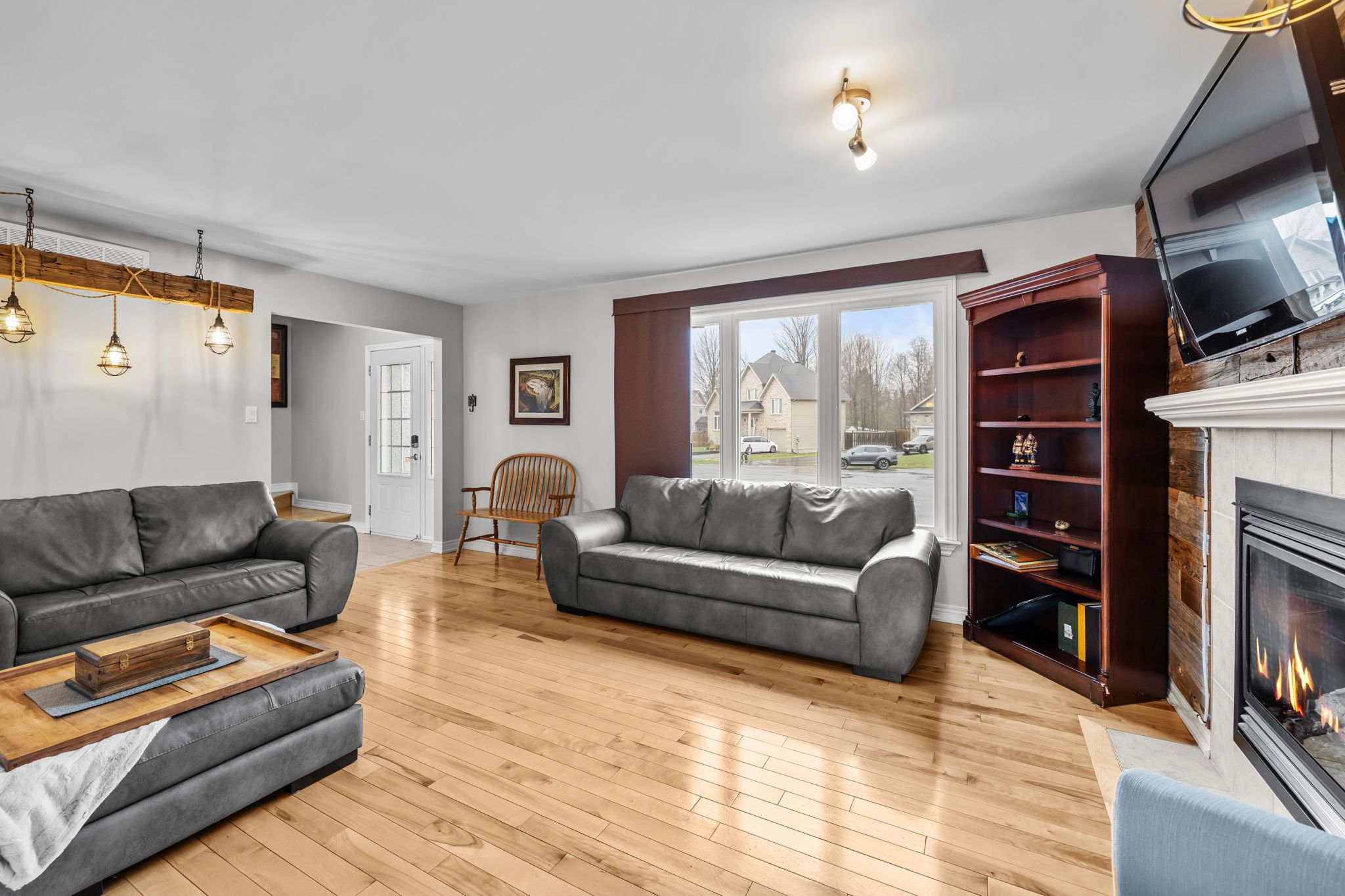 • Spacious entryway leading to a welcoming living room with a gas fireplace.