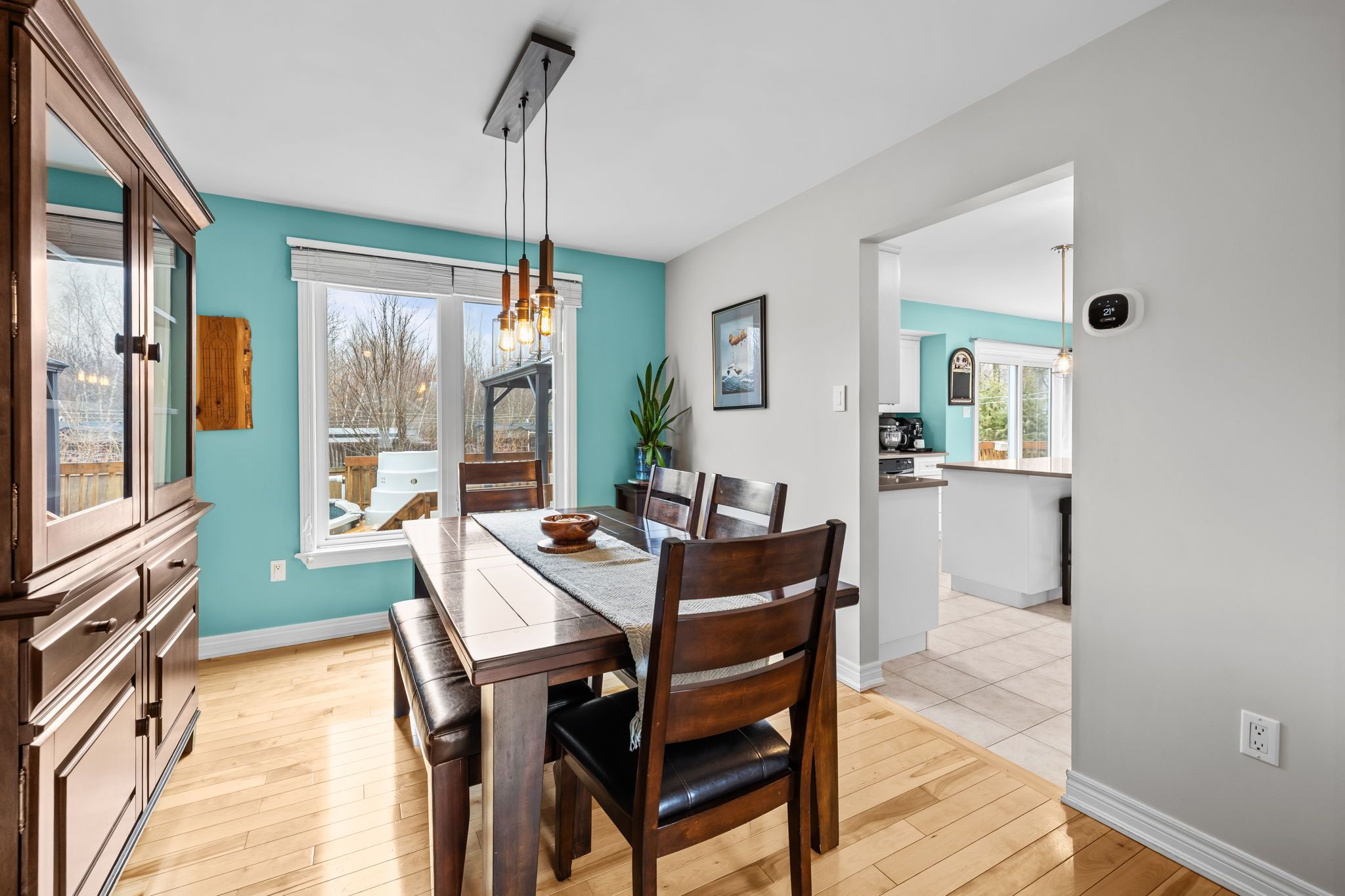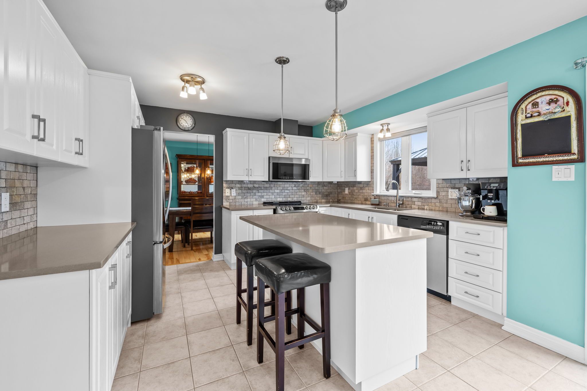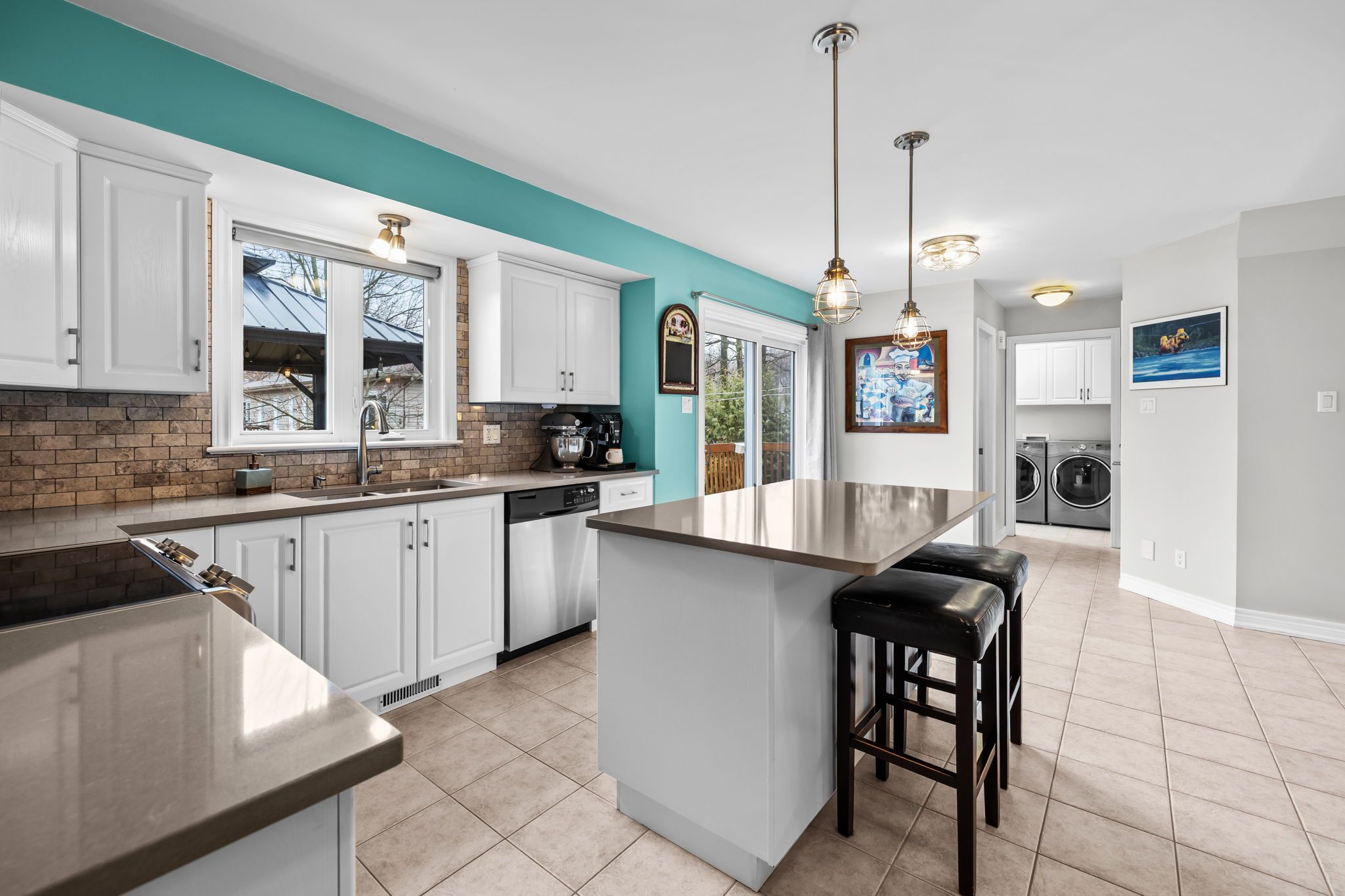 • Stylish kitchen with quartz countertops and a convenient patio door to the deck.