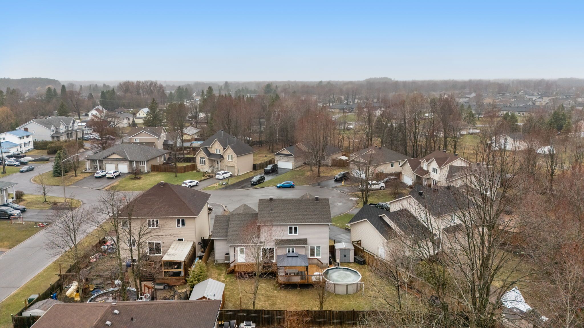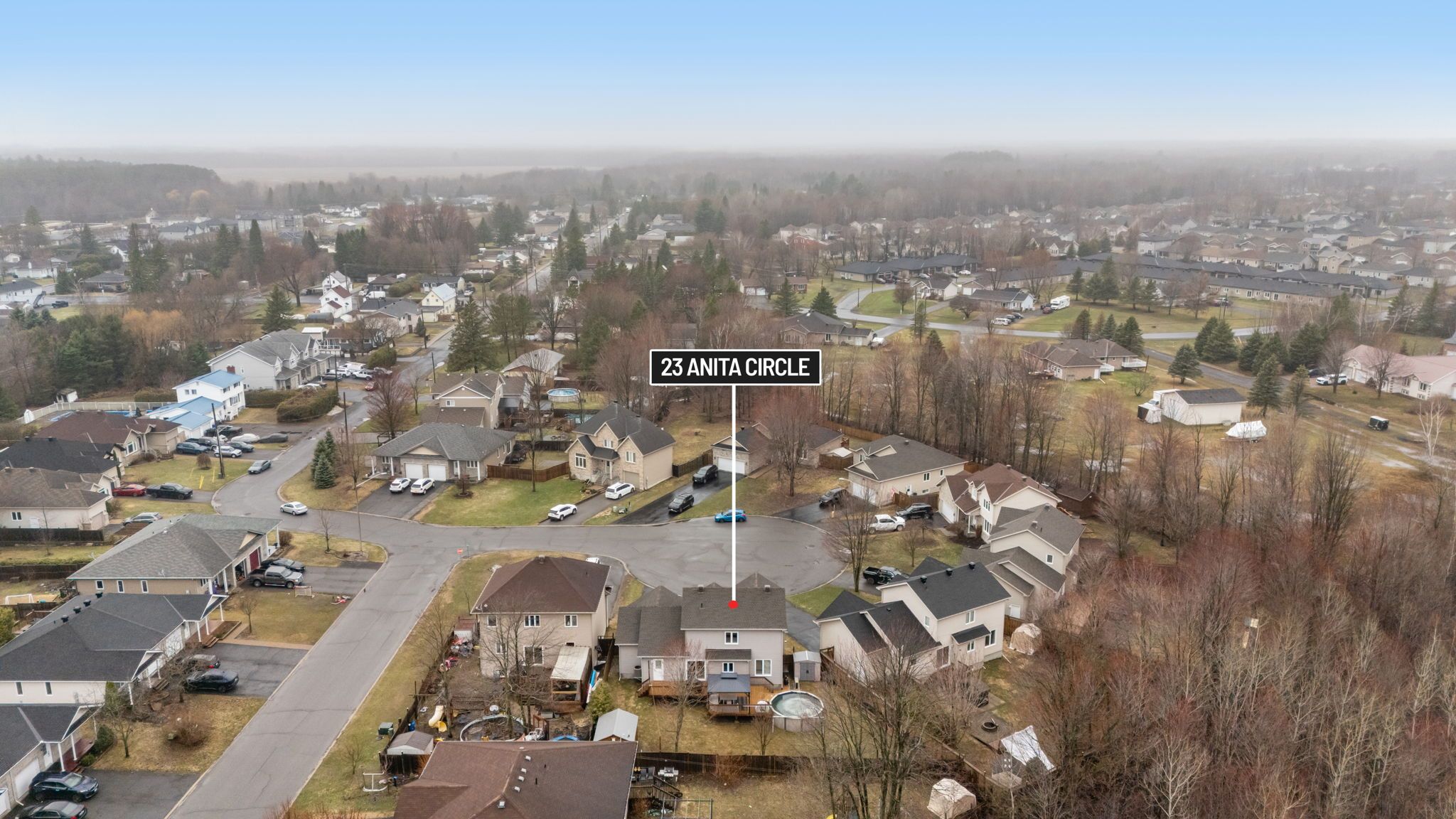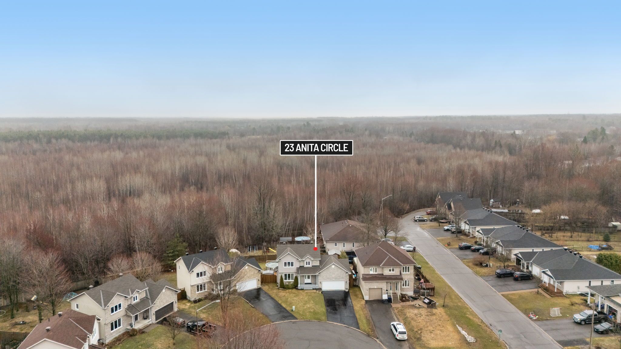 Welcome to 23 anita circle, a meticulously maintained home nestled on a quiet cul-de-sac, featuring an oversized pie-shaped lot. From the moment you step inside, you're greeted by a spacious entryway that flows into a warm and inviting living room, featuring a large window, hardwood floors, and a cozy gas fireplace. The kitchen is both functional and stylish, offering ample cabinetry and workspace, a large island with quartz countertops and seating space, and a patio door leading out to the expansive deck. The adjoining dining room provides plenty of space to host family gatherings and entertain guests. The main floor is completed by an updated powder room and a convenient laundry room with added storage and a utility sink. Upstairs, the generous primary suite features hardwood flooring, a large walk-in closet, and a beautifully renovated ensuite with a modern ceramic shower. Two additional well-sized bedrooms and a full 3-piece bathroom complete the upper level. The fully finished basement offers a versatile open space-perfect for a home gym, additional living area, office, or playroom. Step outside and enjoy a backyard designed for entertaining, featuring a massive deck, above-ground pool, two storage sheds, and a well-maintained yard. Located in the growing community of limoges, just minutes from highway 417, this home offers the perfect balance of privacy and convenience. Don't miss your opportunity to make this exceptional property yours!