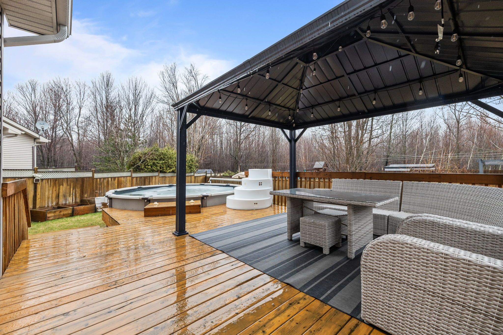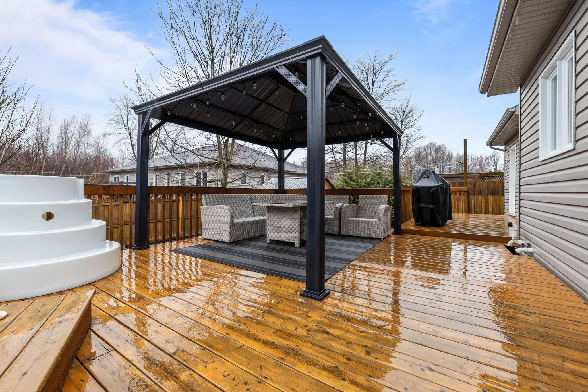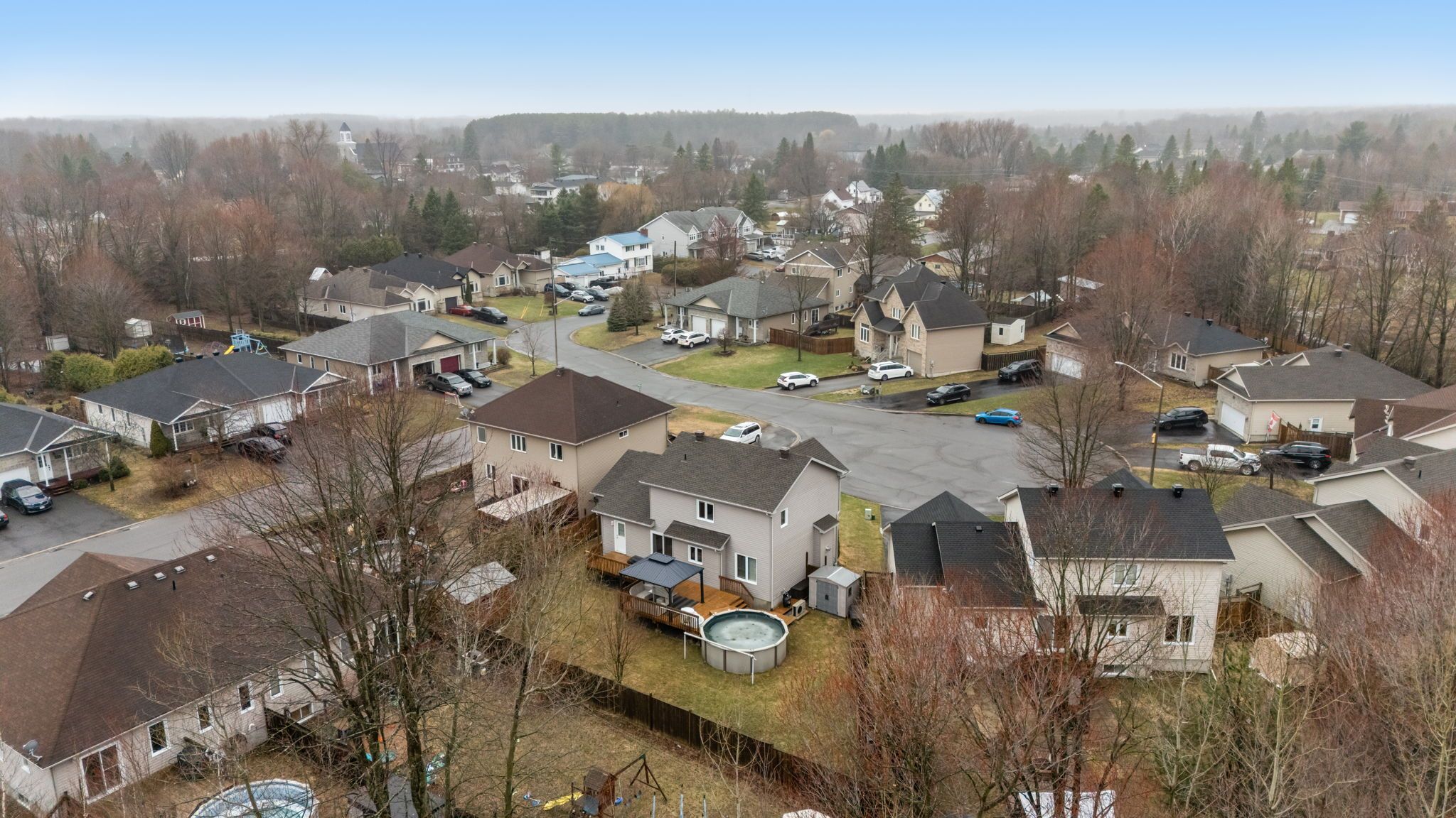 Welcome to 23 anita circle, a meticulously maintained home nestled on a quiet cul-de-sac, featuring an oversized pie-shaped lot. From the moment you step inside, you're greeted by a spacious entryway that flows into a warm and inviting living room, featuring a large window, hardwood floors, and a cozy gas fireplace. The kitchen is both functional and stylish, offering ample cabinetry and workspace, a large island with quartz countertops and seating space, and a patio door leading out to the expansive deck. The adjoining dining room provides plenty of space to host family gatherings and entertain guests. The main floor is completed by an updated powder room and a convenient laundry room with added storage and a utility sink. Upstairs, the generous primary suite features hardwood flooring, a large walk-in closet, and a beautifully renovated ensuite with a modern ceramic shower. Two additional well-sized bedrooms and a full 3-piece bathroom complete the upper level. The fully finished basement offers a versatile open space-perfect for a home gym, additional living area, office, or playroom. Step outside and enjoy a backyard designed for entertaining, featuring a massive deck, above-ground pool, two storage sheds, and a well-maintained yard. Located in the growing community of limoges, just minutes from highway 417, this home offers the perfect balance of privacy and convenience. Don't miss your opportunity to make this exceptional property yours!