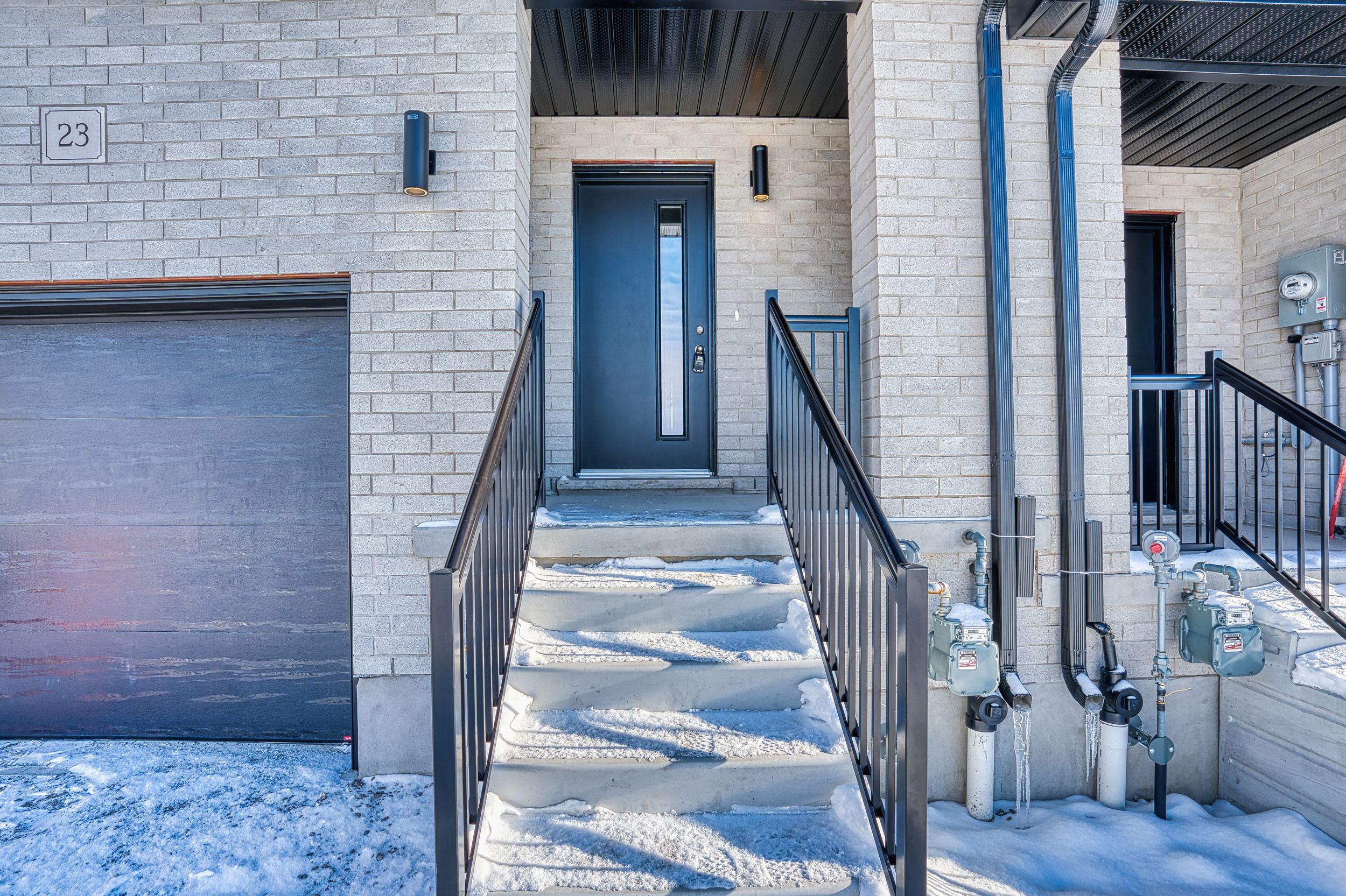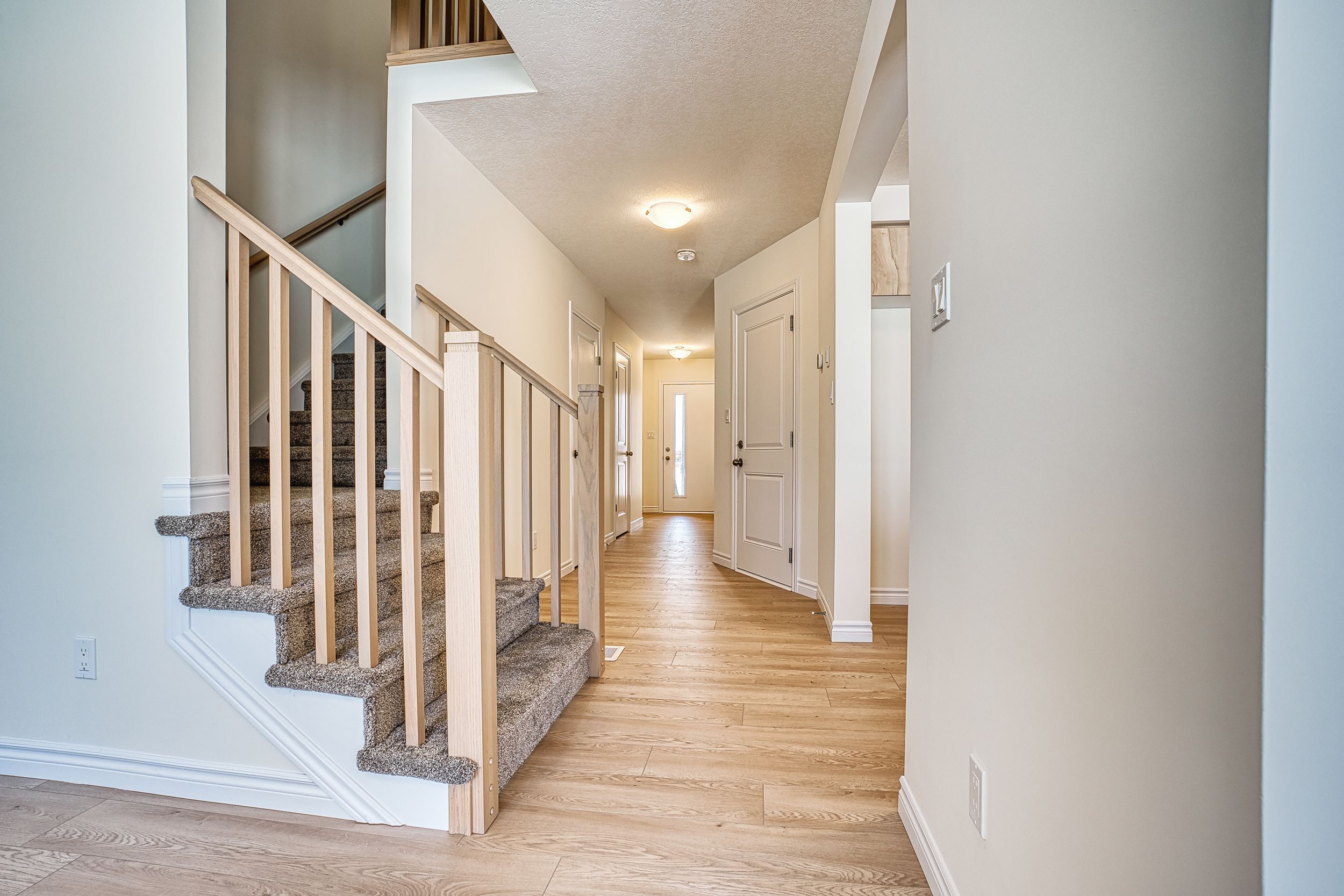 Some homes invite you to imagine. This one invites you to move in. Welcome to 23 becker street; a beautifully finished townhome in this sought-after community, offering 1,541 square feet, 3 bedrooms, and 2. 5 bathrooms, ready for immediate/flexible possession. No waiting for construction timelines. No decisions left to make. No delays or design boards. Just the simple joy of turning the key and starting. The main floor unfolds in an easy, open flow - bright, modern, and designed for connection. The kitchen anchors the space with gorgeous stone countertops and a welcoming breakfast bar, perfect for slow mornings, quick lunches, or late-night conversations that stretch longer than planned. Throughout the home, those same stone surfaces add a quiet sense of luxury - cool, timeless, and effortlessly beautiful. From the attached garage, enjoy convenient inside entry straight into the home, making rainy days, groceries, and busy schedules feel a little lighter. You'll also find thoughtful modern touches like central air for summer comfort and an electric vehicle rough-in in the garage - ready for what's next. The home is refreshingly carpet-free, allowing clean lines and easy living to take center stage... With one exception. The staircase. Soft. Plush. A gentle contrast to the sleek finishes - the kind of detail you don't expect to love, but absolutely do. Quiet. Cozy. A small daily luxury you'll notice more than you think. Upstairs, three well-proportioned bedrooms offer flexibility for family life, guests, or work-from-home days, while the primary suite provides a calm place to land at the end of it all. Outside your door, the same peaceful, family-friendly neighbourhood awaits - minutes from shopping, schools, restaurants, and everything you need, yet wonderfully removed from the rush. This is a home for someone who doesn't want to wait for "someday." it's ready now. It's finished beautifully. And it's waiting for its first story. Model home sat/sun 1-4 pm @ 4 ford dr.
