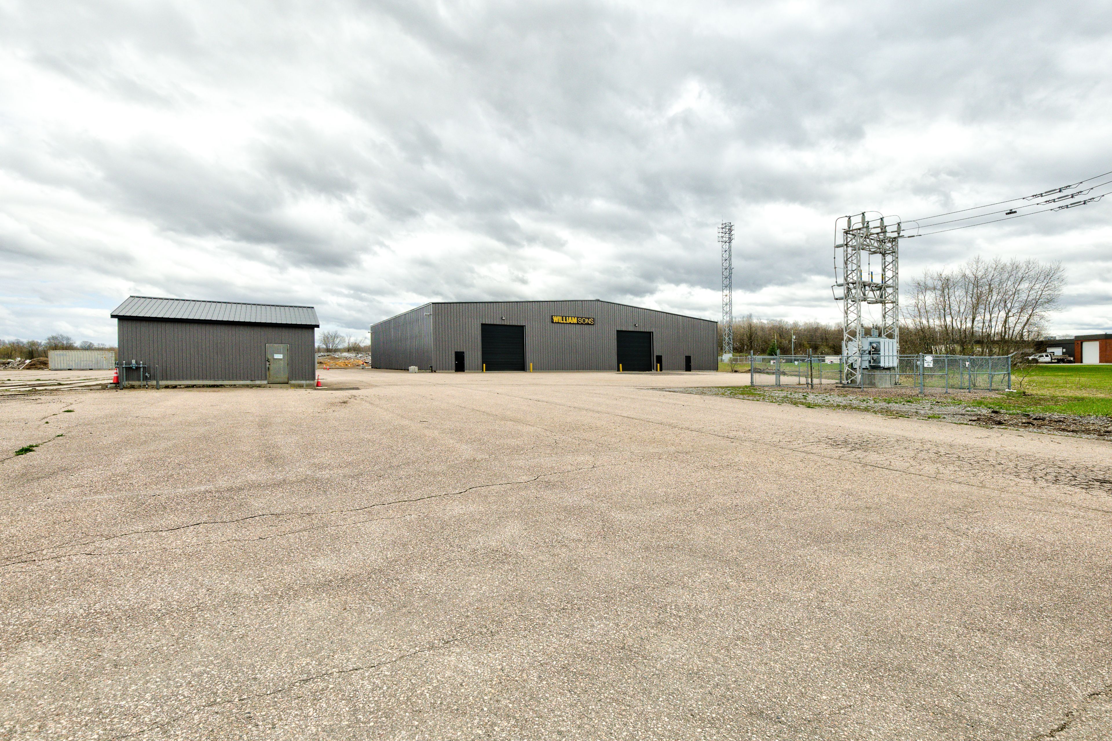 Ideally situated just off highway 417 and less than an hour from ottawa, this 11-acre industrial property combines excellent access with heavy-duty infrastructure and flexible layout options. The 17,500 square foot steel-frame industrial building is currently divided into two units but can easily be opened up to create one large, continuous space to suit a wide range of operational needs. The first unit measures approximately 40 x 125 and features two 18 x 20 ground-level bay doors, allowing for efficient in-and-out flow for shipments, vehicles, or production lines. The second unit spans approximately 100 x 125 and includes one 18 x 20 bay door, offering generous floor space for warehousing or manufacturing operations. In addition to the main structure, a detached office building (no photos) houses a reception area, three private offices, and a washroom, providing a dedicated space for administrative functions or client interaction. The site is fully serviced with municipal water and natural gas. A large asphalt-paved yard provides ample space for parking, outdoor storage, and the movement of tractor trailers. The paved area is supported by a catch basin drainage system for efficient stormwater management. Dual access from both booth road and industrial avenue enhances flow-through logistics and vehicle maneuverability. The rear portion of the property offers further yard space for storage or future expansion, and the site is fully enclosed with a 6-foot barbed wire fence and two chain-link cantilever security gates. One of the most significant features of this property is its powerful 3-phase, 600v, 2000 amp electrical service well-suited for industrial users requiring high-capacity power for manufacturing or processing operations. This is a rare opportunity to secure a well-located, fully serviced industrial property with scale, versatility, and infrastructure already in place.