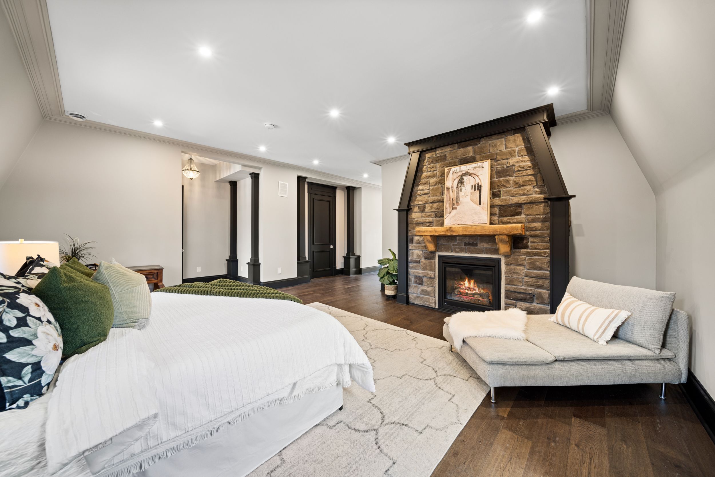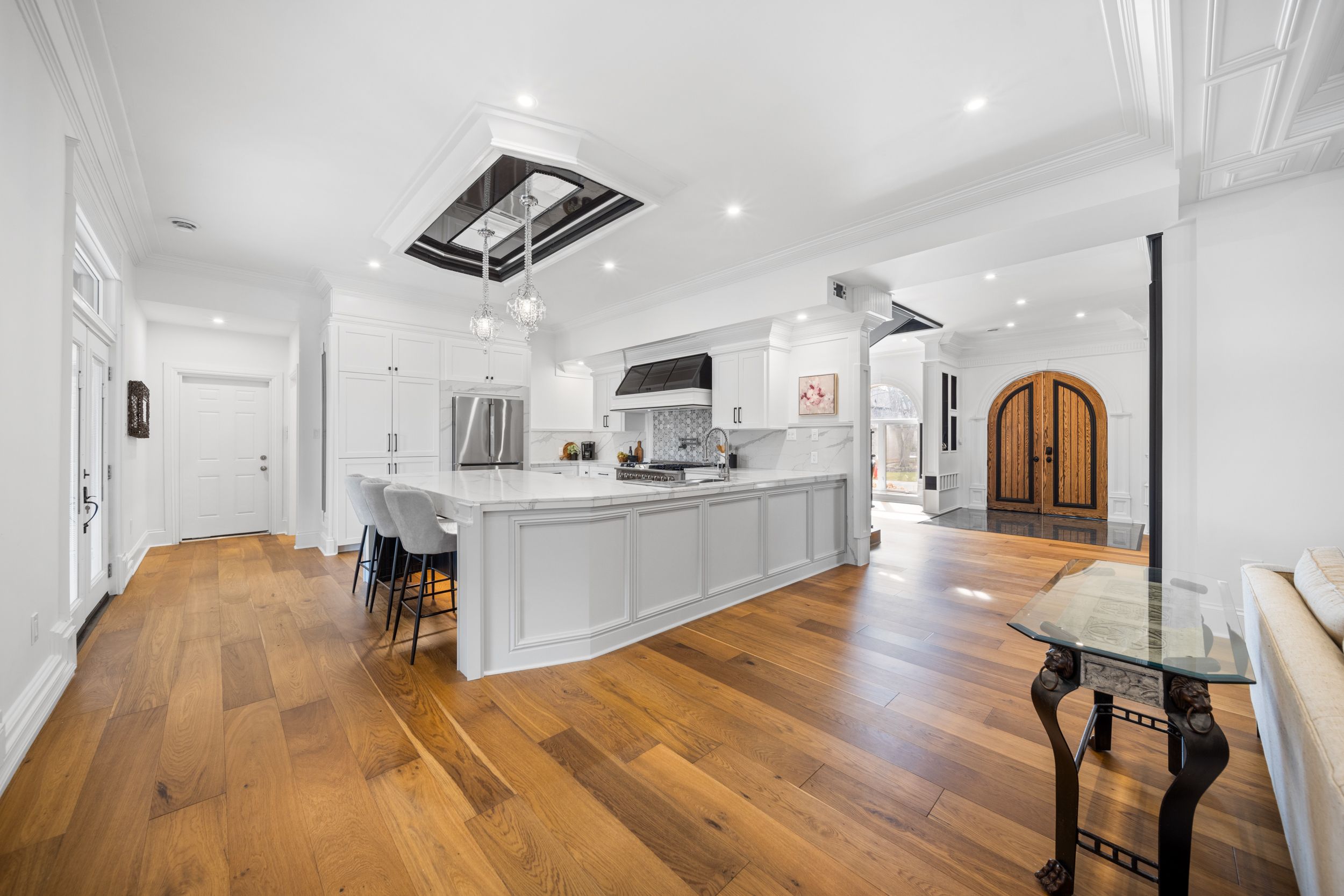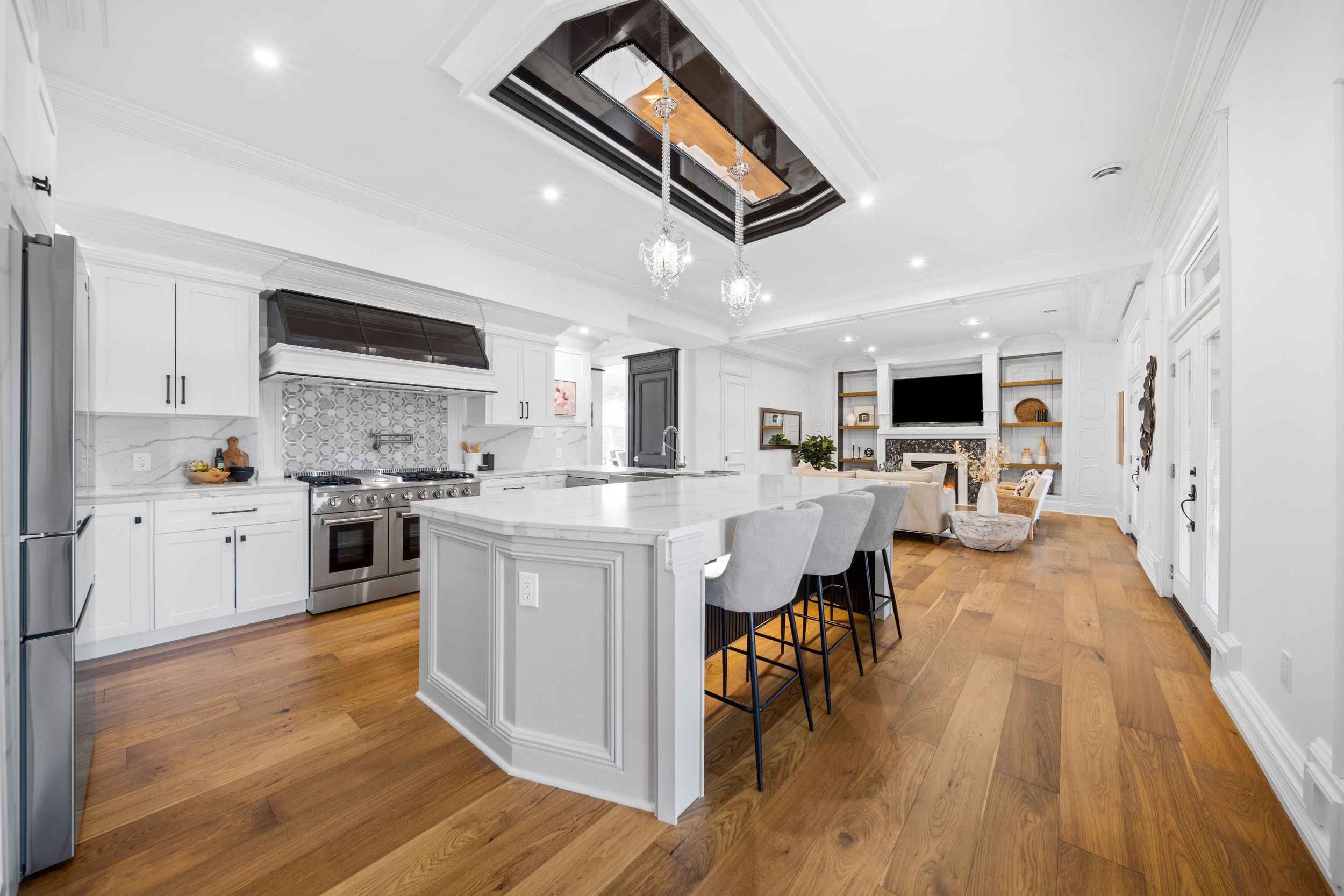 Nestled in scenic ancaster village, this french chateau-inspired residence offers over 7,000 sqft of luxury backing onto the iconic hamilton golf club, with sweeping views of one of canada's premier courses. This 3-storey masterpiece features 4 beds, 7 baths, 10. 5' soaring ceilings, custom millwork, and refined european design. The main floor is designed for entertaining, showcasing a gourmet kitchen with high-end appliances, quartz counters, custom cabinetry and a large island. Three sets of double doors open to a covered outdoor dining area. A formal dining room with chandelier, fireplace and wet bar adds elegance, while the family room with built-ins and fireplace connects seamlessly to the landscaped yard. Second level is dedicated to ultimate comfort, 3 spacious bedrooms each with private baths & walk-in closets. Primary suite boasts gorgeous stone fireplace, custom walk-in closet & spa-like ensuite with freestanding tub, rainfall shower, glass shower, and private terrace overlooking the golf course. Third level serves as a secluded refuge with spacious living room, large bedroom, full bath & kitchenette. A walk-out portico terrace offers panoramic views of the golf course. Lower level features 9' ceilings, a recroom, fitness room, family room with another fireplace, full bathroom, heated floors & a kitchenette. A wine cellar completes your chateau experience. The property boasts a cedar-ceiling covered deck, outdoor gas fireplace, mature trees for privacy, 5 fireplaces, 3 dishwashers, terrazzo concrete driveway & large tandem garage with 4-post car lift for the car enthusiast. Crafted with an icf foundation and whole-home hydronic in-floor heating across all four levels, the residence delivers year-round comfort, remarkably low operating costs, and a reduced carbon footprint-luxury that's as smart as it is beautiful. Close to fine dining, shopping, trails, and conservation areas, this property is a rare haven of sophistication, luxury, and timeless elegance.