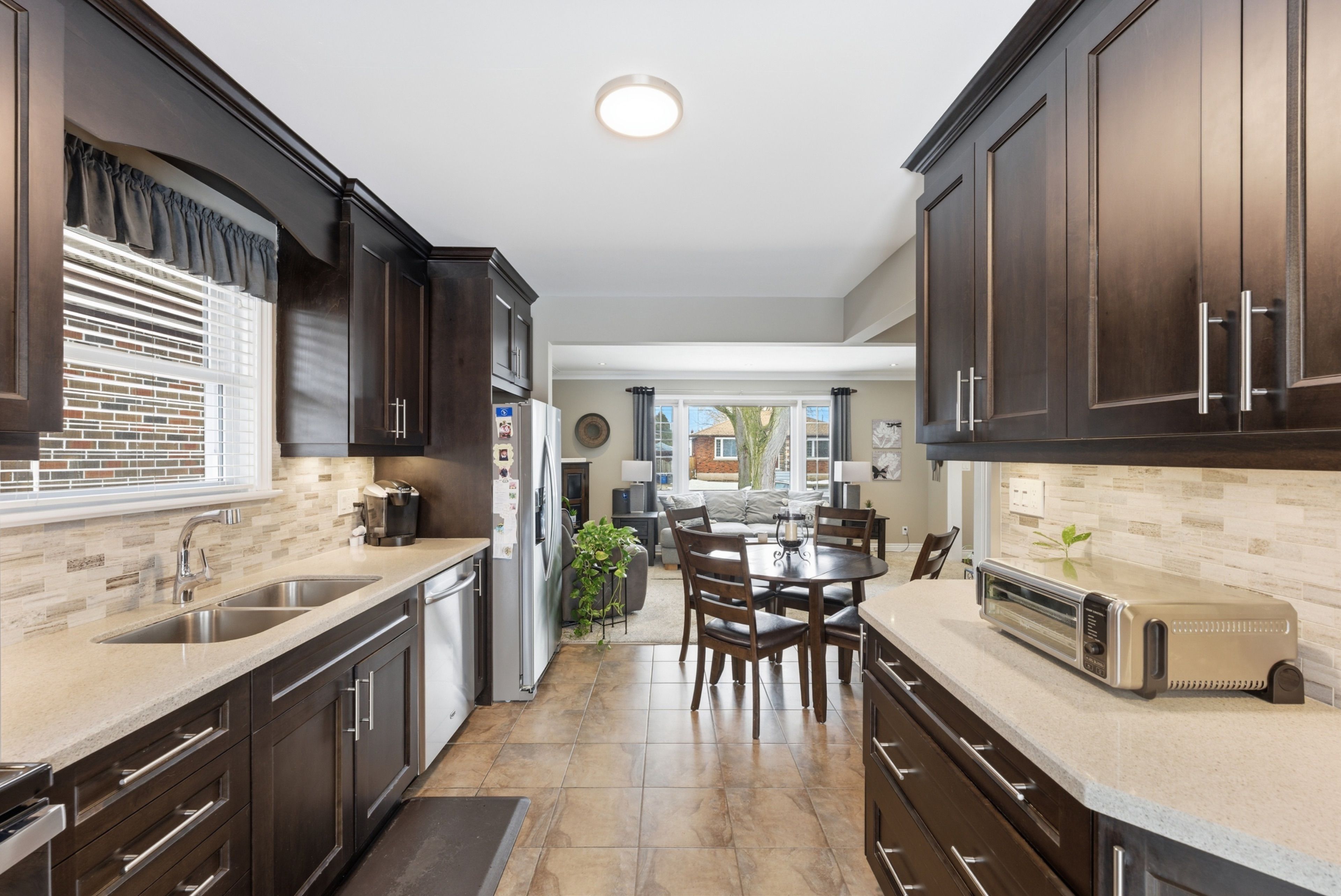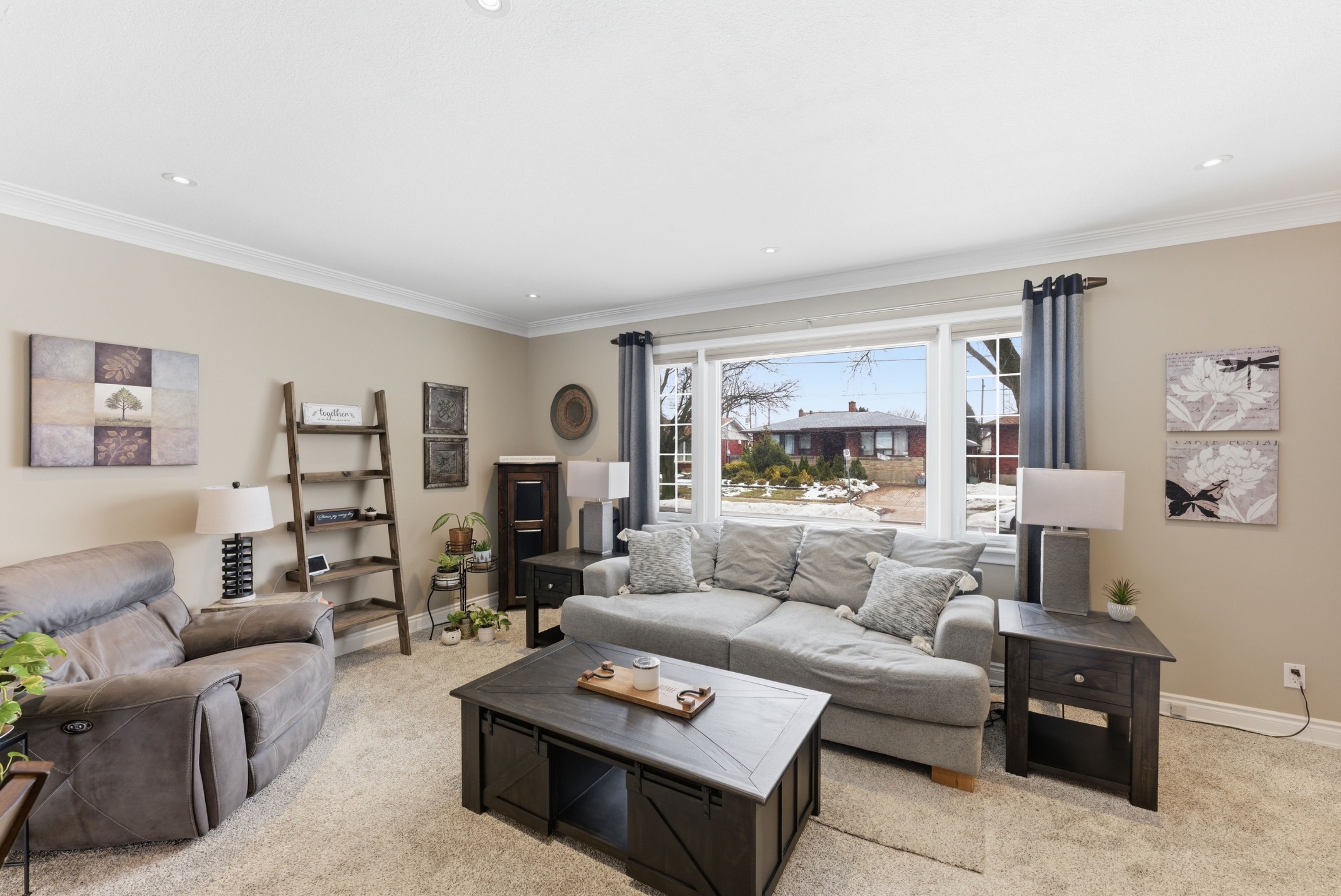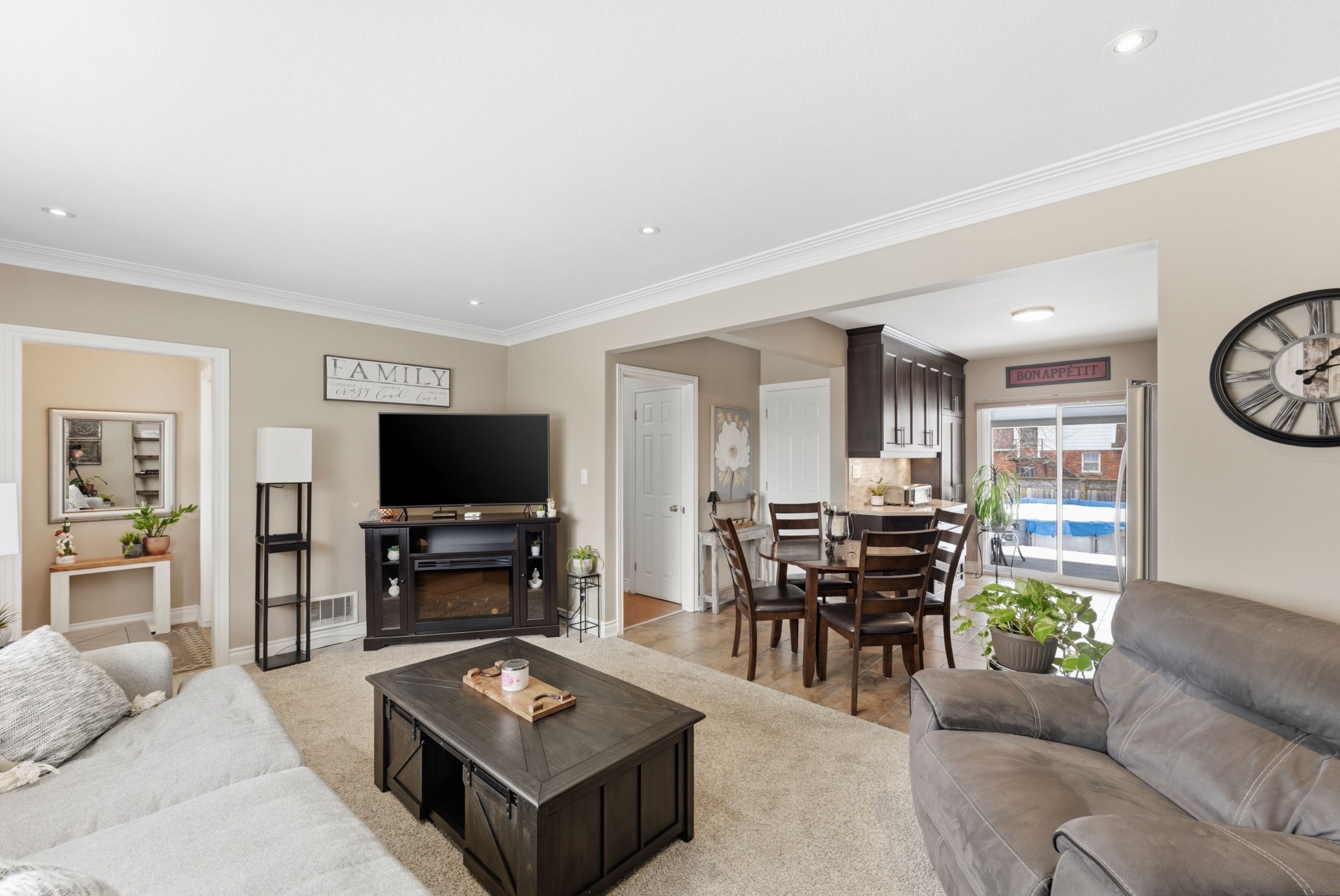 Welcome to 23 chalmers street. This beautifully maintained all-brick bungalow in a quiet st. Catharines neighbourhood, offering thoughtful updates, flexible living space, and an exceptional backyard designed for summer living. The main floor is bright and move-in ready, featuring fresh paint (2024), new carpeting (2025), updated lever blinds, and a refreshed kitchen with a modern backsplash (2024) and stainless steel fridge and stove (2025). Three bedrooms are located on the main level, with the third currently used as a spacious walk-in closet and laundry area, easily converted back to a bedroom if needed. The main bathroom offers a relaxing jacuzzi tub with rain shower head for a spa-like feel. The fully finished lower level provides excellent in-law or multi-generational potential with two additional bedrooms, an updated three-piece bathroom with glass shower, and a built-in breakfast bar complete with sink and bar fridge; ideal for guests or extended family. Major updates include furnace and a/c (2024), roof (2024/2025), attic insulation (2024), and gutter guards on the house and garage (2025), offering peace of mind for years to come. Step outside to a private, fully fenced backyard that truly sets this home apart. A maintenance-free composite deck wraps around the above-ground pool, creating the perfect space for entertaining. Built-in steps with accent lighting lead to the pool area, while mature trees provide shade and privacy. The covered patio with skylights extends your living space outdoors and offers multiple seating areas for relaxing or hosting. A detached garage and large shed, both with hydro, provide excellent storage and workspace options. With its versatile layout, extensive updates, and standout outdoor space, 23 chalmers street offers comfort, functionality, and a lifestyle that's hard to find.