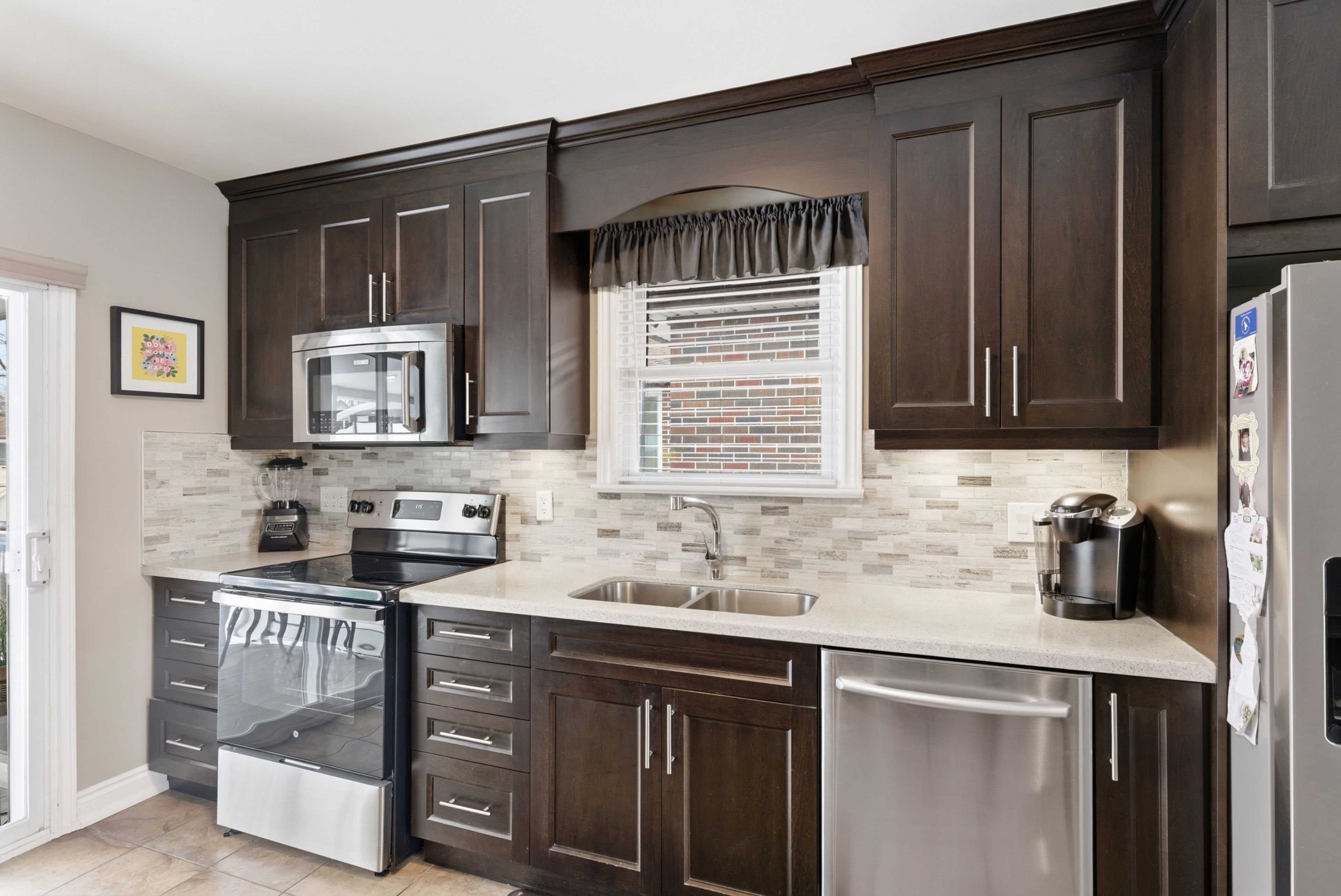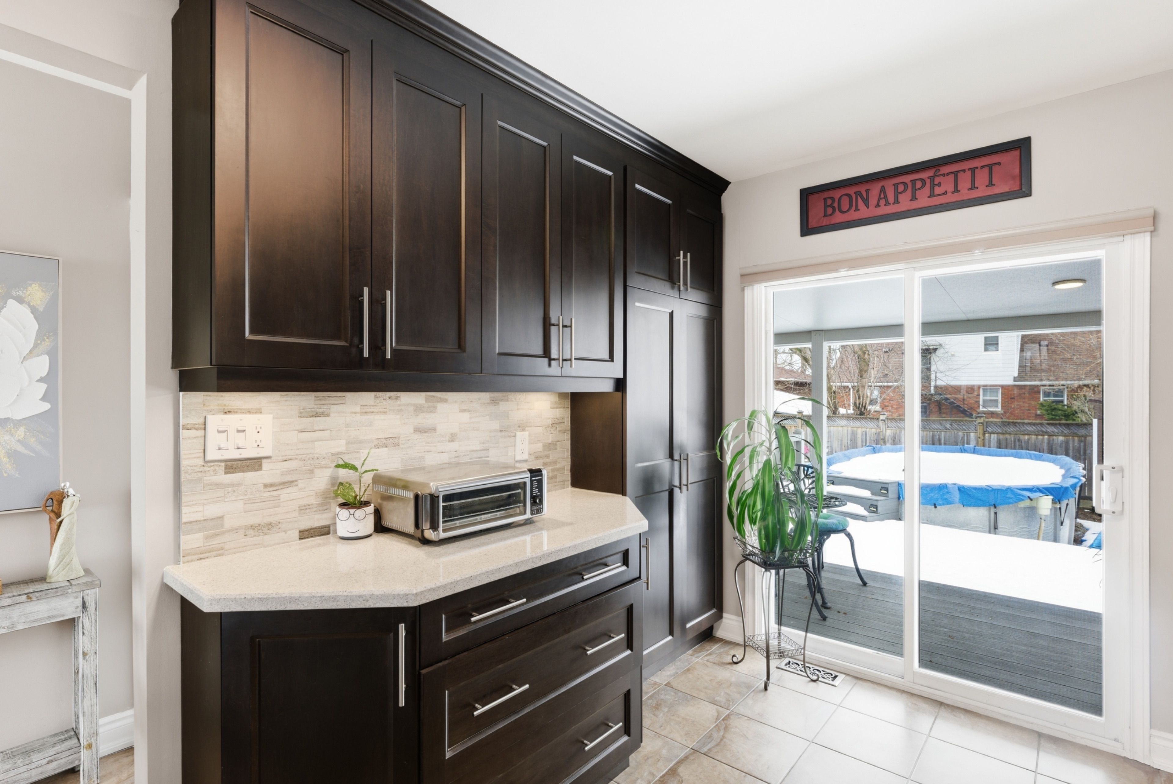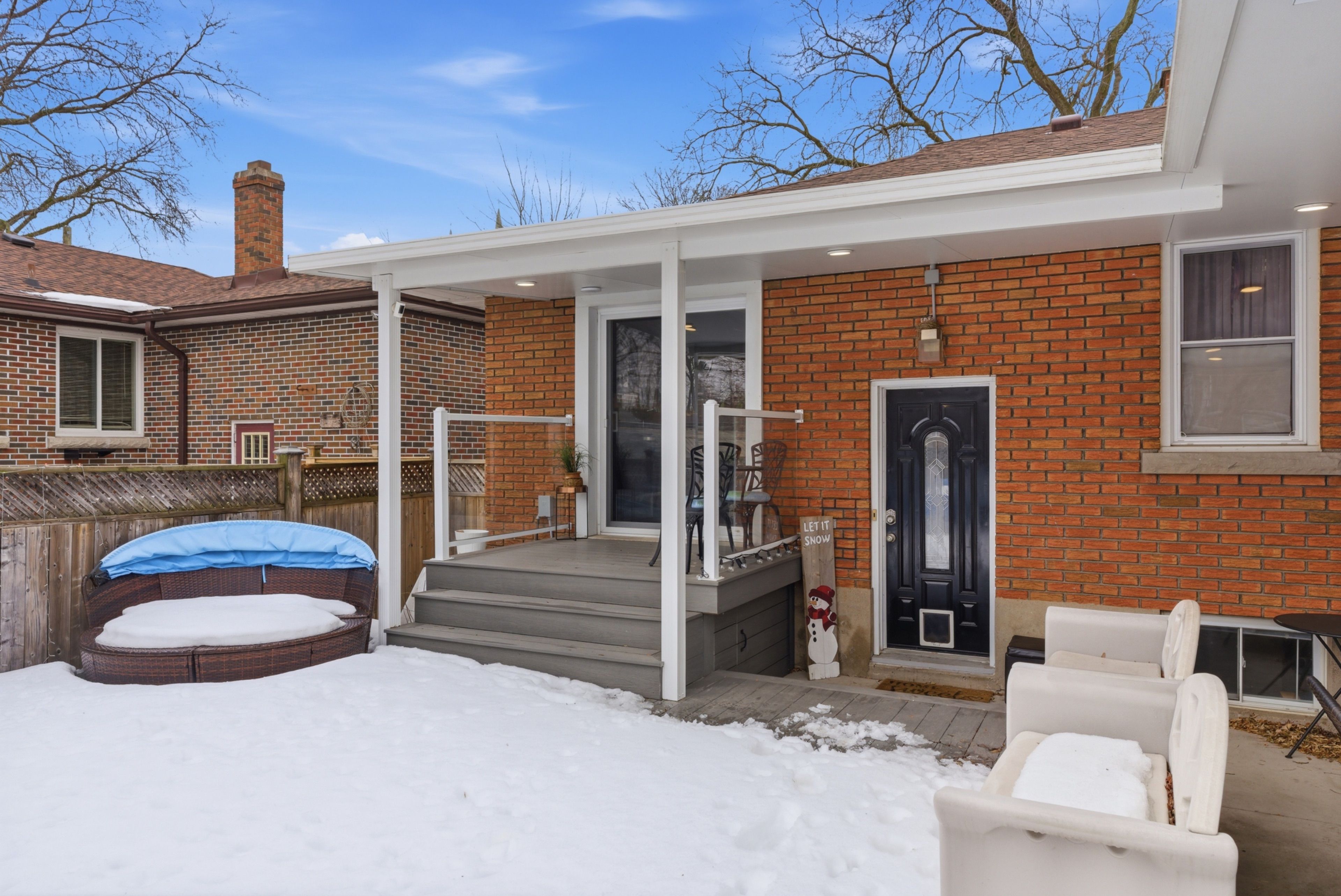 Welcome to 23 chalmers street. This beautifully maintained all-brick bungalow in a quiet st. Catharines neighbourhood, offering thoughtful updates, flexible living space, and an exceptional backyard designed for summer living. The main floor is bright and move-in ready, featuring fresh paint (2024), new carpeting (2025), updated lever blinds, and a refreshed kitchen with a modern backsplash (2024) and stainless steel fridge and stove (2025). Three bedrooms are located on the main level, with the third currently used as a spacious walk-in closet and laundry area, easily converted back to a bedroom if needed. The main bathroom offers a relaxing jacuzzi tub with rain shower head for a spa-like feel. The fully finished lower level provides excellent in-law or multi-generational potential with two additional bedrooms, an updated three-piece bathroom with glass shower, and a built-in breakfast bar complete with sink and bar fridge; ideal for guests or extended family. Major updates include furnace and a/c (2024), roof (2024/2025), attic insulation (2024), and gutter guards on the house and garage (2025), offering peace of mind for years to come. Step outside to a private, fully fenced backyard that truly sets this home apart. A maintenance-free composite deck wraps around the above-ground pool, creating the perfect space for entertaining. Built-in steps with accent lighting lead to the pool area, while mature trees provide shade and privacy. The covered patio with skylights extends your living space outdoors and offers multiple seating areas for relaxing or hosting. A detached garage and large shed, both with hydro, provide excellent storage and workspace options. With its versatile layout, extensive updates, and standout outdoor space, 23 chalmers street offers comfort, functionality, and a lifestyle that's hard to find.
