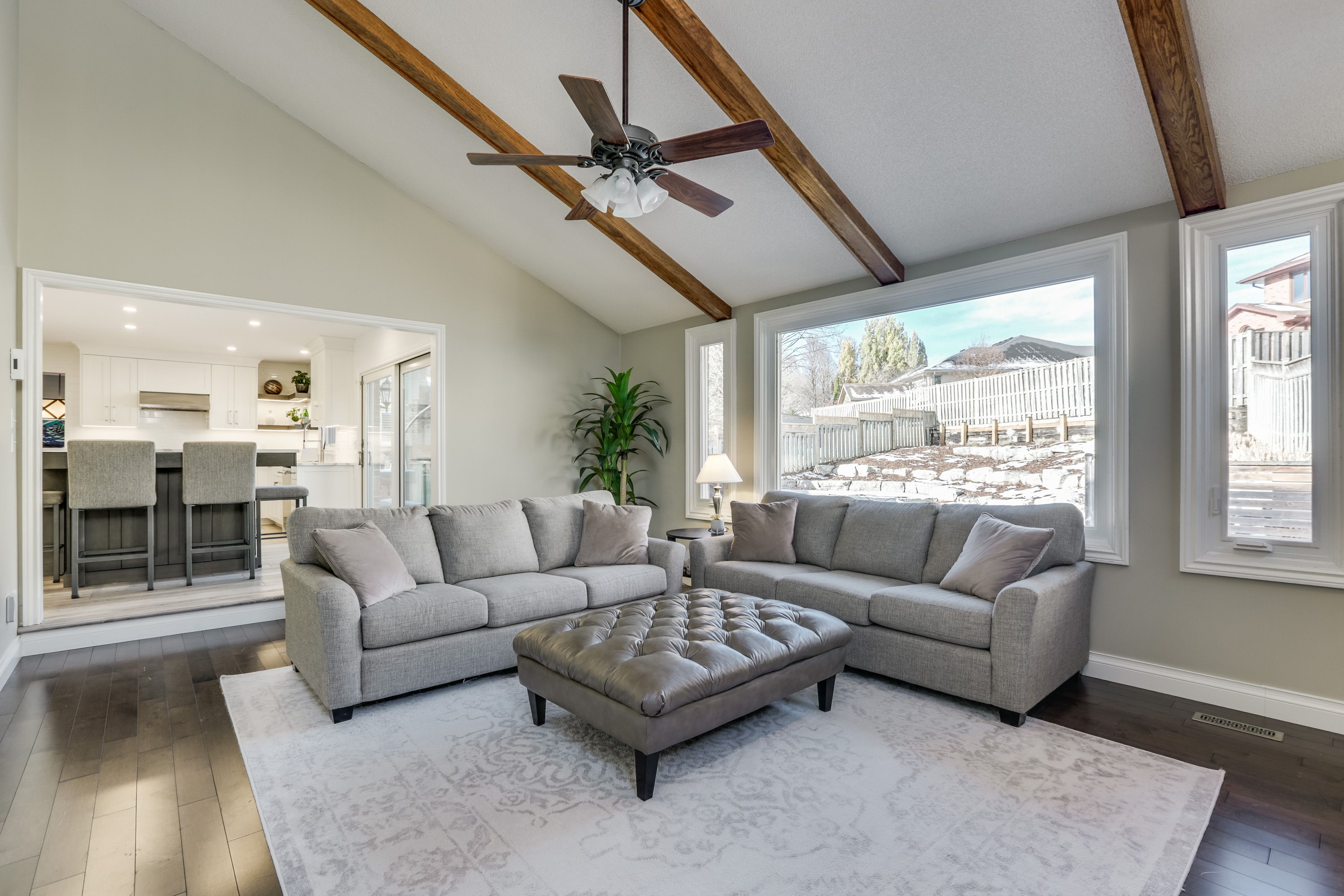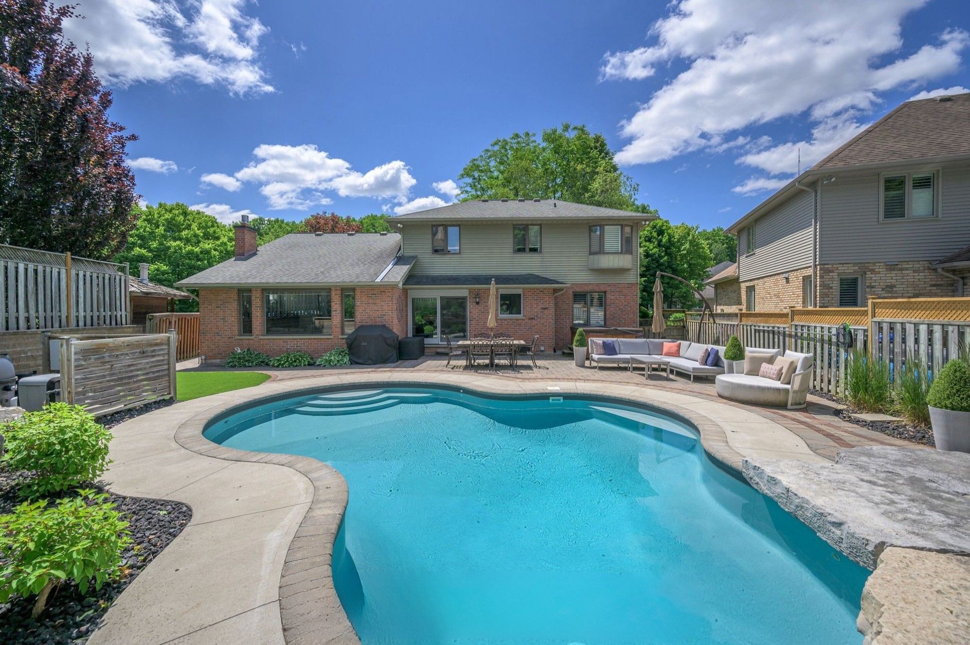 Homes like 23 chestnut hill don't come up often in this part of byron. From the moment you step inside, you feel that comfortable, neighbourly feel paired with the kind of upgrades and living spaces families dream of. The main living space is the showstopper, with tall ceilings, rich beams, a brick fireplace, and large windows overlooking the backyard retreat. The flow into the custom duo-built kitchen makes everyday life simple, with a quartz huge island, thermador appliances, double sinks, wine fridge, and endless prep space. Major upgrades give peace of mind: new windows and front door (2025), new furnace and ac (2022), updated pool and hot tub pumps, 200 amp panel, heated floors in three bathrooms, custom closets, and irrigation system. Outside is your own private resort. Enjoy the heated saltwater sport pool, hot tub, astroturf pad, terraced gardens, and multiple patios perfect for relaxing or hosting. The finished lower level adds even more flexibility with a bright family room, bonus rooms, full bath, and wall-to-wall storage. With trails, boler mountain, parks, and great schools nearby, this is a rare chance to own a move-in-ready home in a sought-after pocket of byron.