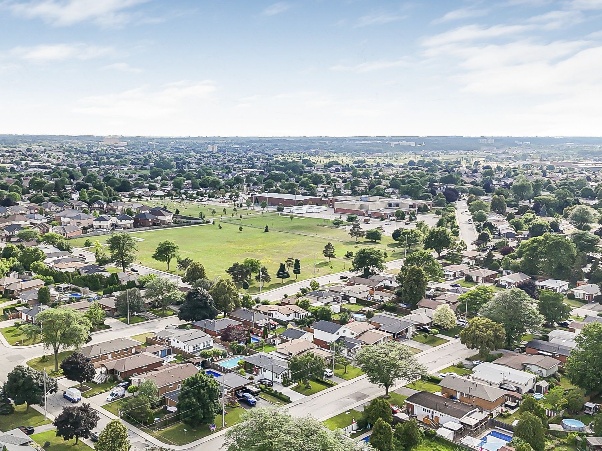 Welcome to this charming and spacious 3-level side-split, ideally situated on a 34' x 129' pie-shaped lot in a quiet, family-friendly neighbourhood. This well-maintained 3+1 bedroom, 2 full bathroom home offers excellent space, comfort, and functionality - perfect for growing families, first-time buyers, or investors. This home is being sold as an estate sale, presenting a fantastic opportunity for the right buyer. Freshly painted in soft, natural tones, the interior feels bright, inviting, and move-in ready. The home features cozy carpeted flooring and a classic oak kitchen with ample cabinet and counter space. The lower level includes an additional bedroom, a second full bathroom, and a very large storage area in the basement, providing plenty of room for seasonal items or hobby needs. Enjoy the lovely curb appeal at the front of the home and step into the private, fully fenced backyard filled with mature trees for peace and privacy. A standout feature is the walkout to the large concrete deck, complete with a custom-built awning and full mesh screen enclosure - perfect for outdoor enjoyment rain or shine. The property also offers a 4-car driveway and two oversized garden sheds, ensuring plenty of parking and storage. Conveniently located minutes from top-rated schools, scenic escarpment trails, parks, shopping centres, restaurants, and with easy access to both the red hill parkway and the lincoln alexander parkway, this home truly checks all the boxes for lifestyle, location, and value. Don't miss your chance to own this wonderful property in a desirable neighbourhood!