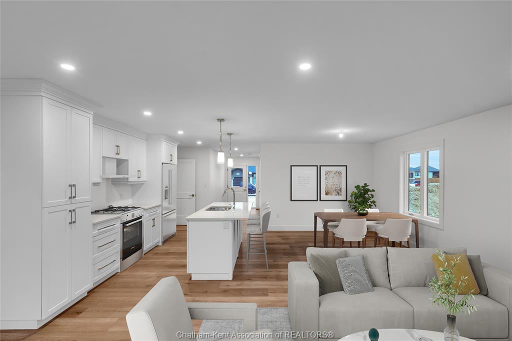 *** open house will be held at 20 cornerstone place *** welcome to this brand new open-concept semi-detached rancher on chatham’s south side. Offering spacious, modern one-floor living, this home is filled with natural light and features two bedrooms and two full baths, including a large primary suite with walk-in closet and ensuite. The primary bedroom is thoughtfully positioned at the back of the home for privacy, while the additional bedroom and main bath are located at the front. The open layout flows from the kitchen with quartz countertops into the dining and living areas, where a cozy fireplace adds warmth and charm. The second bedroom offers flexibility for kids, grandkids, guests, or a home office. Enjoy the convenience of main-floor laundry, an attached garage, a full unfinished basement for future development, and a covered back patio perfect for relaxing outdoors. This mi cazza construction quality-built home delivers exceptional value and comfort in a prime south chatham location. Photos may include virtual staging or images from a similar build.