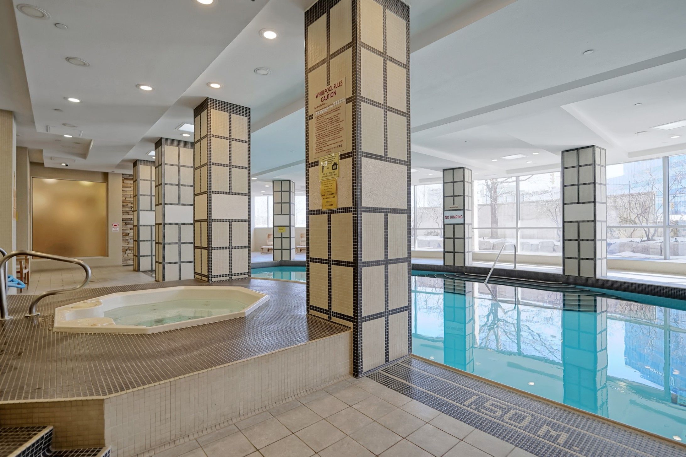 • Luxury building amenities include a pool, gym, and 24-hour concierge.