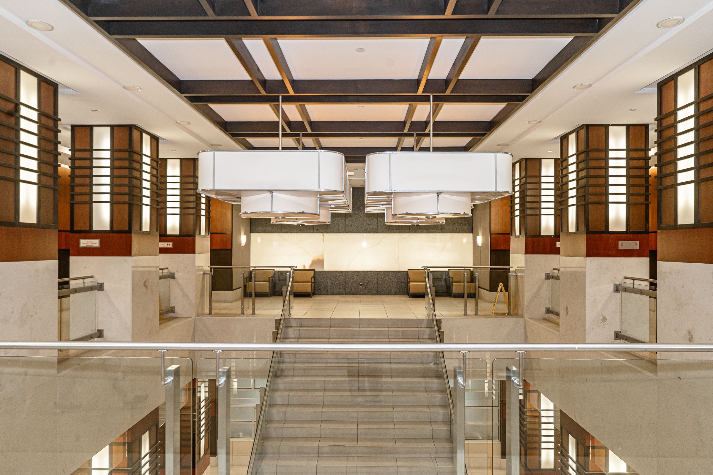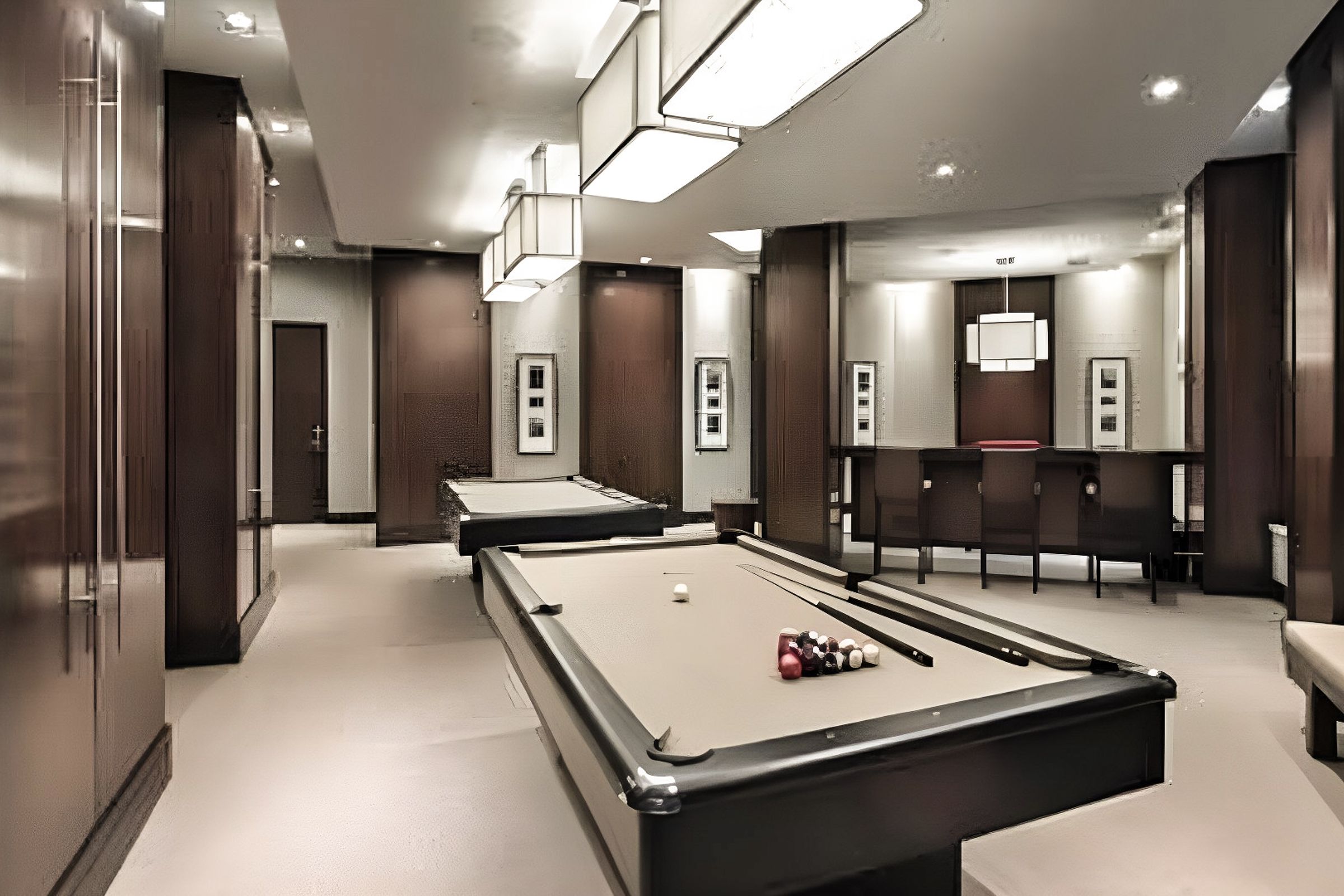 • Grand two-story lobby with impressive amenities like gym and indoor pool.