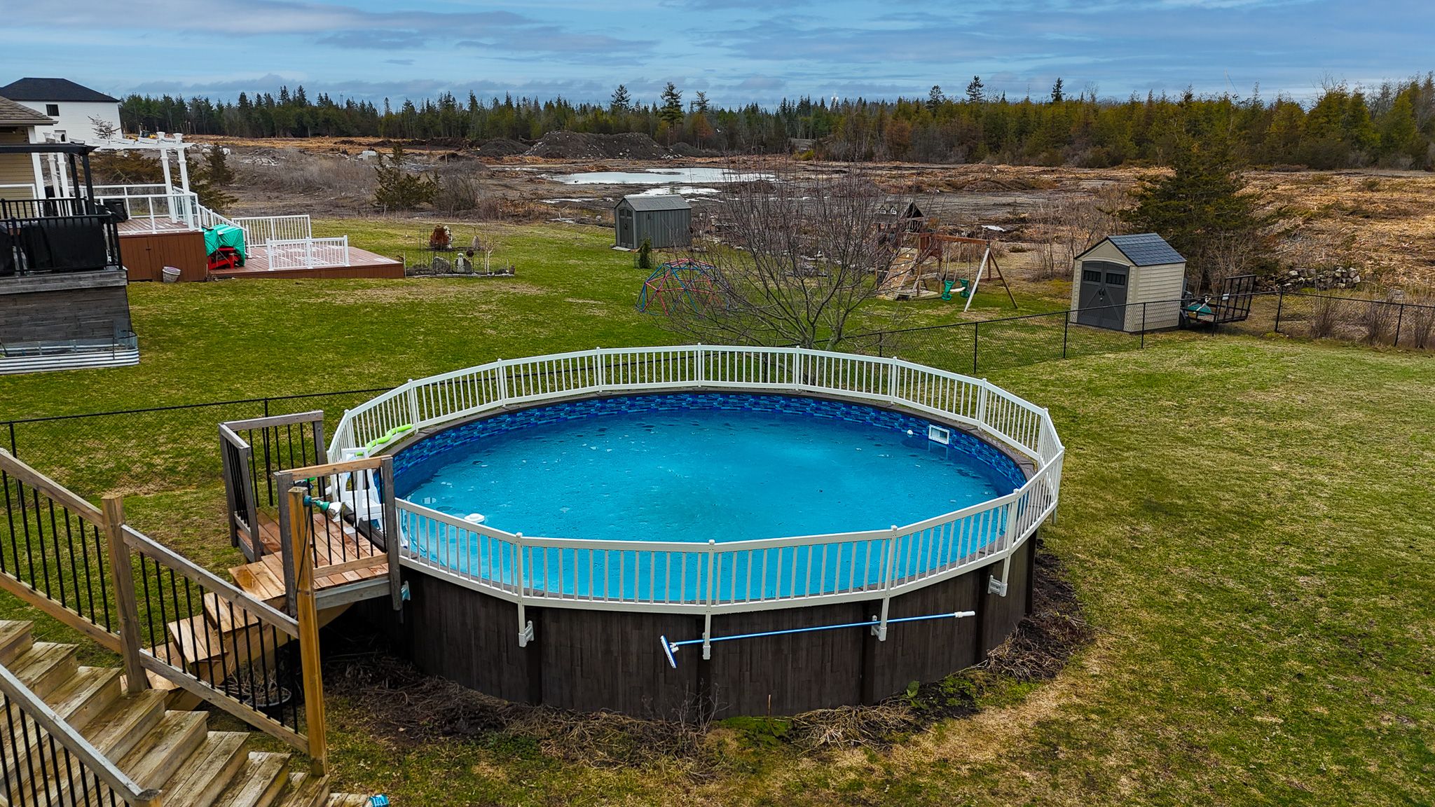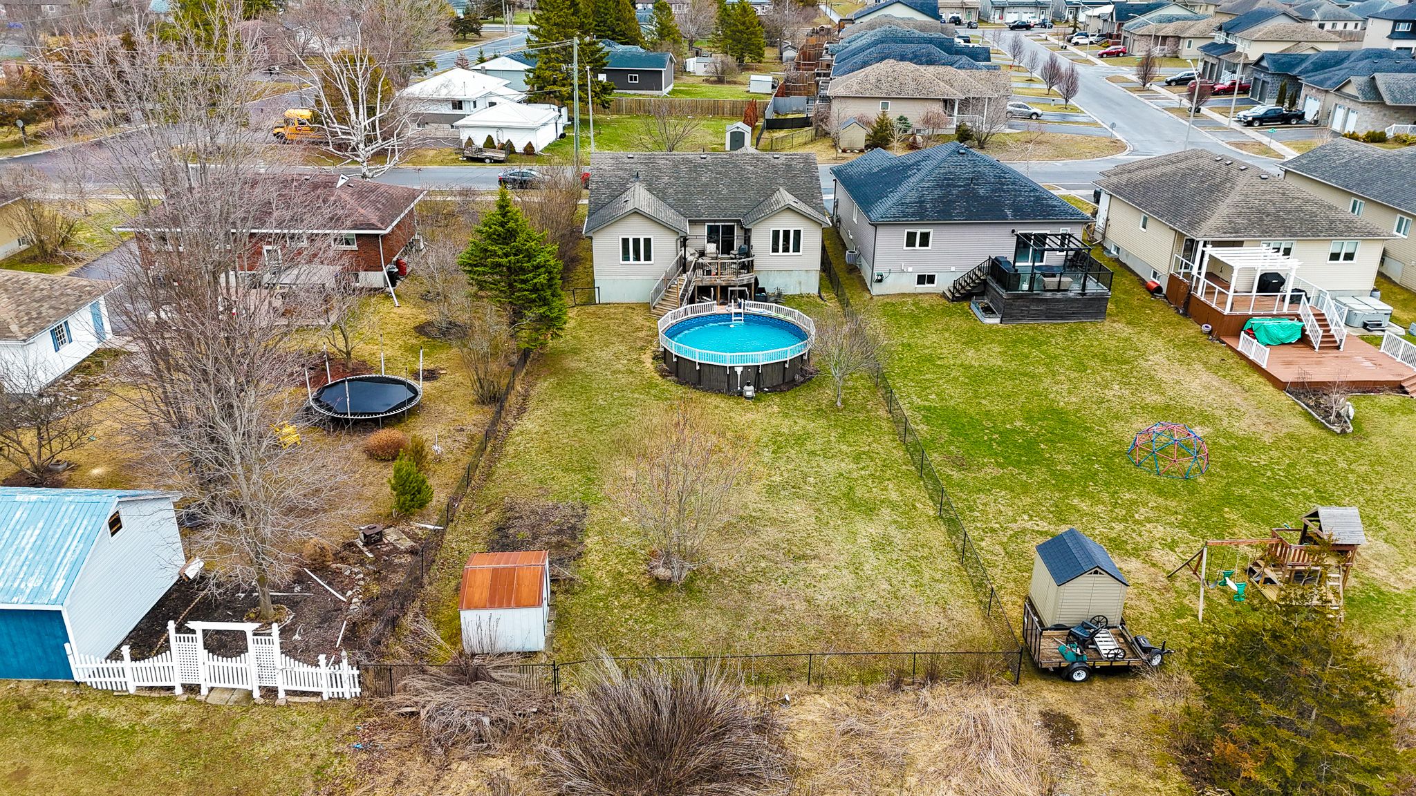 • Large 182-ft deep lot featuring an above-ground pool and deck.