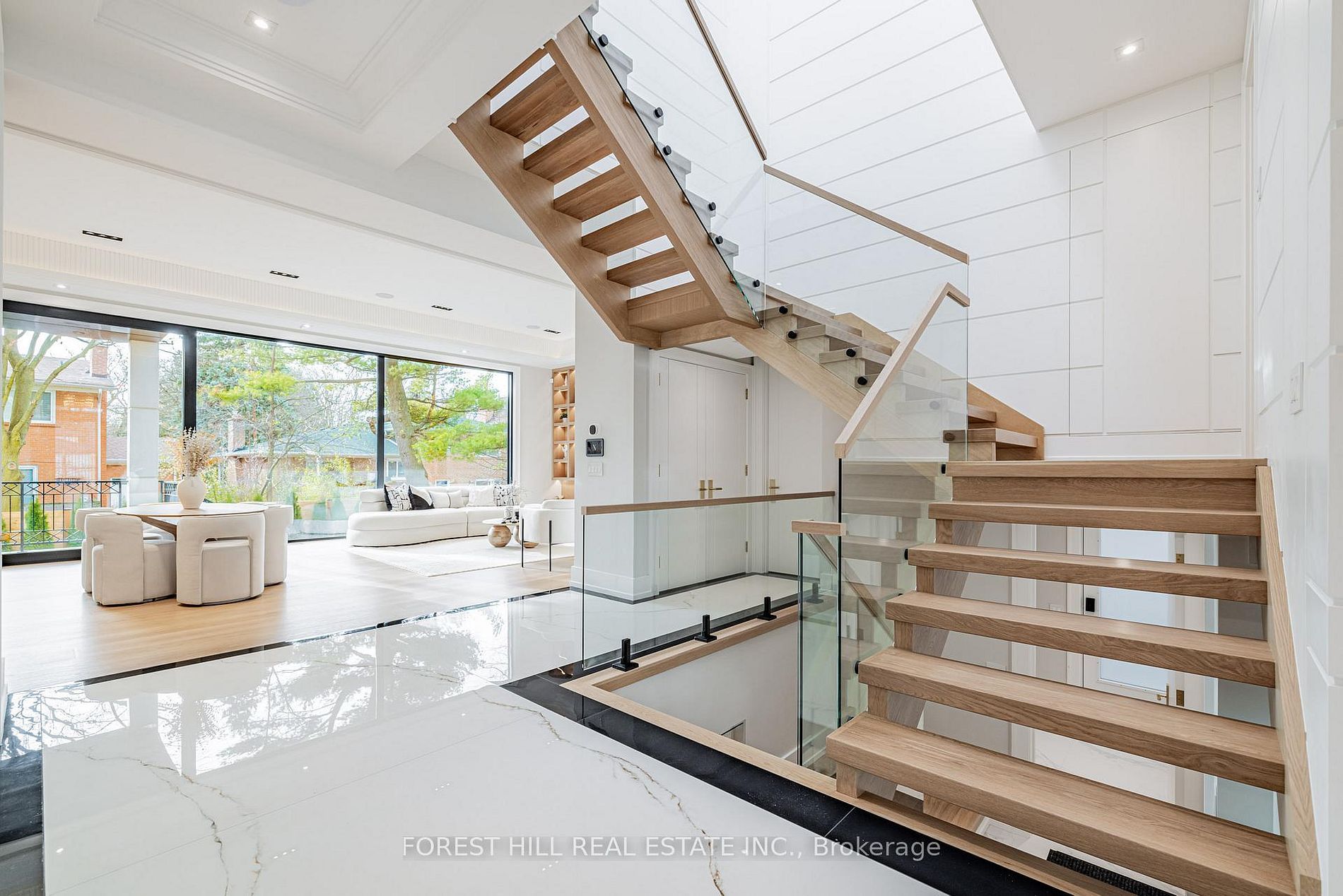 **spectacular**this luxurious/stunning c/b 5+bedrms-8washrms residence blends contemporary elegance w/modern luxury, offering an exceptional living experience in a fabulous, and one of the most affluent neighbourhood of toronto. This residence is a true masterpiece, seamlessly blending striking design with opulent interiors that reflect and harmonize luxury and functionality. Every detail is crafted to captivate the sense of sophistication & comfort and style, offering total of approx 6500 sq. Ft living spaces including a lower level-, providing abundant natural light and airy-happy atmosphere. The main floor welcomes you with a grand entry featuring intricate flooring and accent wall, soaring ceilings draw your eye upward. A refined formal living & dining space boast a 11'8" tray ceilings with rope lightings, and floor to ceiling windows, and a cozy gas fireplace, elegant built-in cabinetry, ideal for entertaining. The dream eat-in kitchen offers exquisite marble countertop and backsplash, top-of-the-line appliances(subzero & wolf brand), and a spacious breakfast area ideal for large family meals. Step outside into an oversized terrace with roof - perfect for summer or all seasons entertaining. Seamlessly flowing, the sun-filled family room with a gas fireplace and south exposure welcomes endless natural sunlight, perfect place to relax or gather. The thoughtfully designed upper flr features a practical layout, the home versatility for a senior suite with an own ensuite and closet or an ideal work-from-hm office retreat. Upstairs, the primary suite is a true sanctuary, featuring a sitting area, a spa-inspired 6-pieces heated flr ensuite with exquisite detail, and a large his/hers generous walk-in closets. The additional spacious bedrms have own ensuite, ideal for privacy and comfort. The heated bsmt flr offers endless possibilities, versatility for an extended your family's living space, including an extra large recreation rm, a hm gym, and an additional bedrm!!!