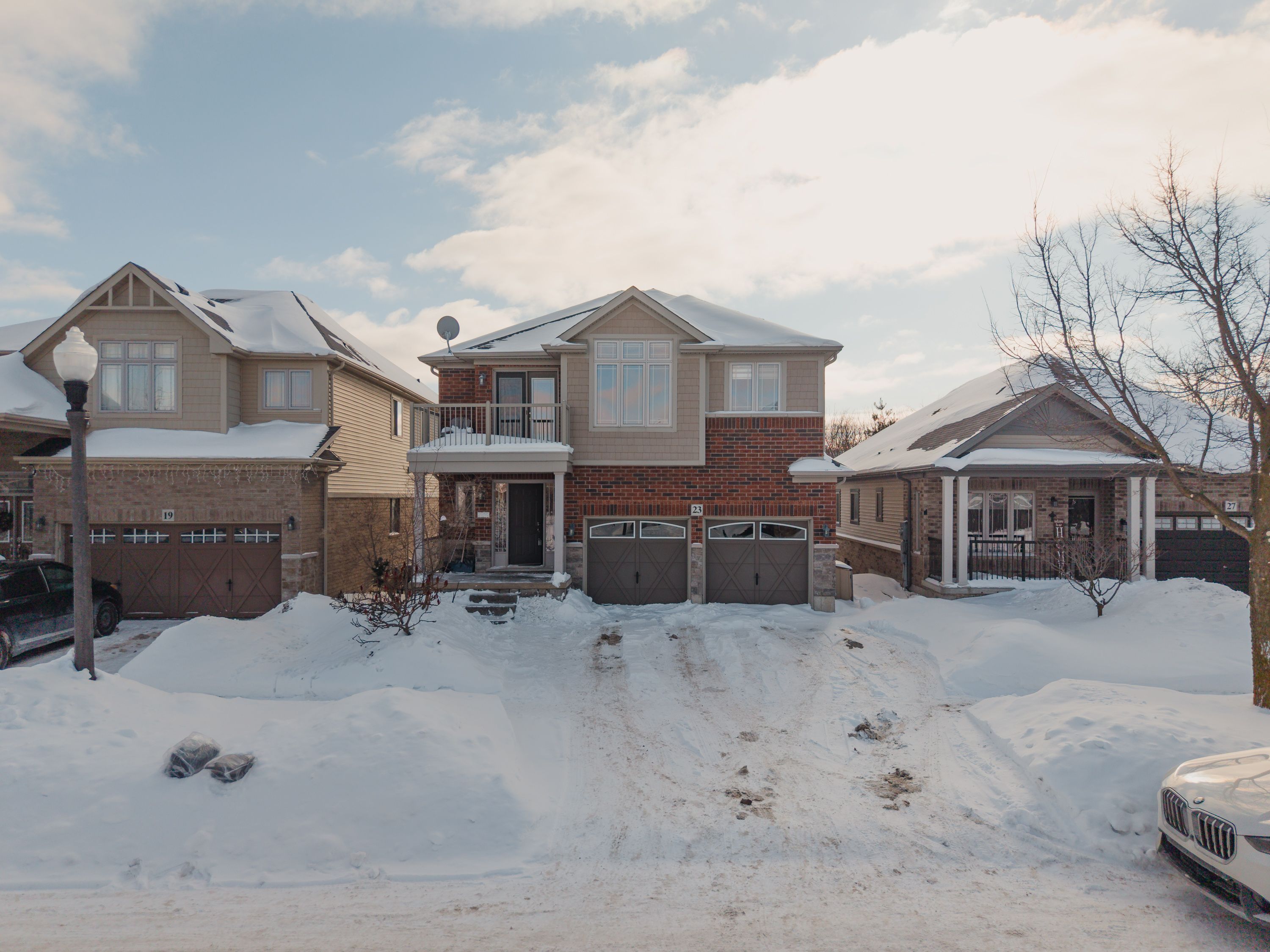Welcome to 23 down creek street, kitchener, a rare legal duplex backing onto a beautiful conservation area, offering an exceptional blend of space, income potential, and lifestyle. Surrounded by nature and filled with natural light, this home is ideal for families, multi-generational living, or investors looking for a strong mortgage helper. The main residence features 4 spacious bedrooms and 2 full bathrooms, thoughtfully laid out for everyday comfort. The main floor impresses with a large, open kitchen complete with a huge island, perfect for entertaining, along with a generous dining area that comfortably seats up to 10 people. The bright living room, highlighted by a stone fireplace, creates a warm and inviting atmosphere with plenty of windows throughout. Upstairs, you'll find 4 generously sized bedrooms, upper-floor laundry, and well-appointed bathrooms, making daily living convenient and functional for a busy household. The fully furnished walk-out basement apartment includes 2 bedrooms and 1 full bathroom, a separate entrance, and is ready to rent, offering an income potential of up to $2,000 per month. This space is ideal for extended family, guests, or tenants while maintaining privacy for both units. The home boasts a massive backyard with unobstructed views of the conservation area, filled with wildlife and natural beauty. Enjoy over 700 sq. Ft. Of upper deck space with elegant glass railings, perfect for taking in the views, along with an additional 700+ sq. Ft. Lower deck for tenants or extended family to enjoy. Additional features include a double-car garage which is one foot wider than the standard, triple-car driveway, central vacuum system and excellent curb appeal. Conveniently located close to conestoga college, steps to public transit, and minutes from schools, shopping, restaurants, trails, and all amenities, with easy access to hwy 401 for commuters. This is a rare opportunity to own a income-generating property in a sought-after location.