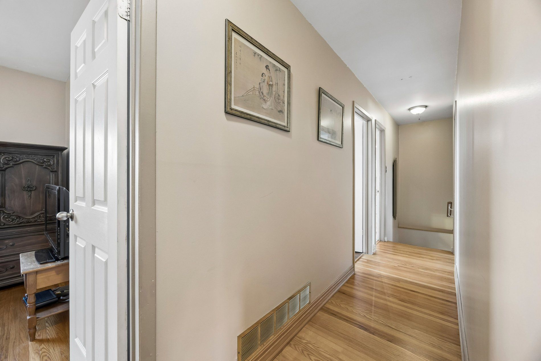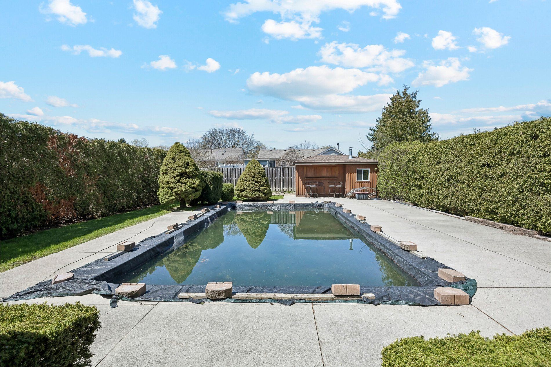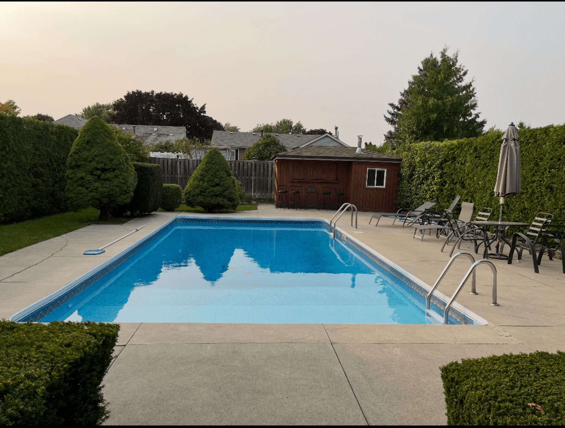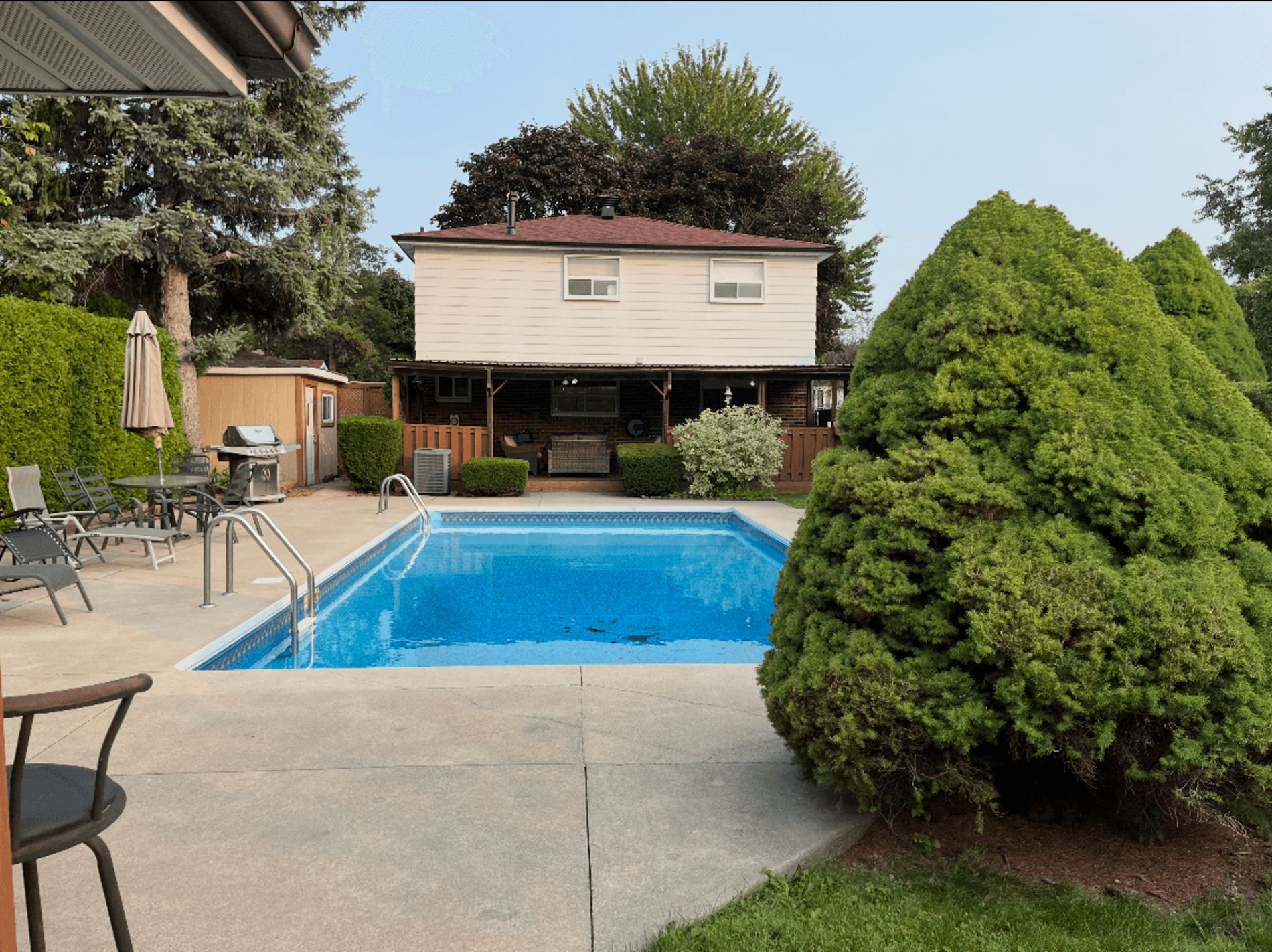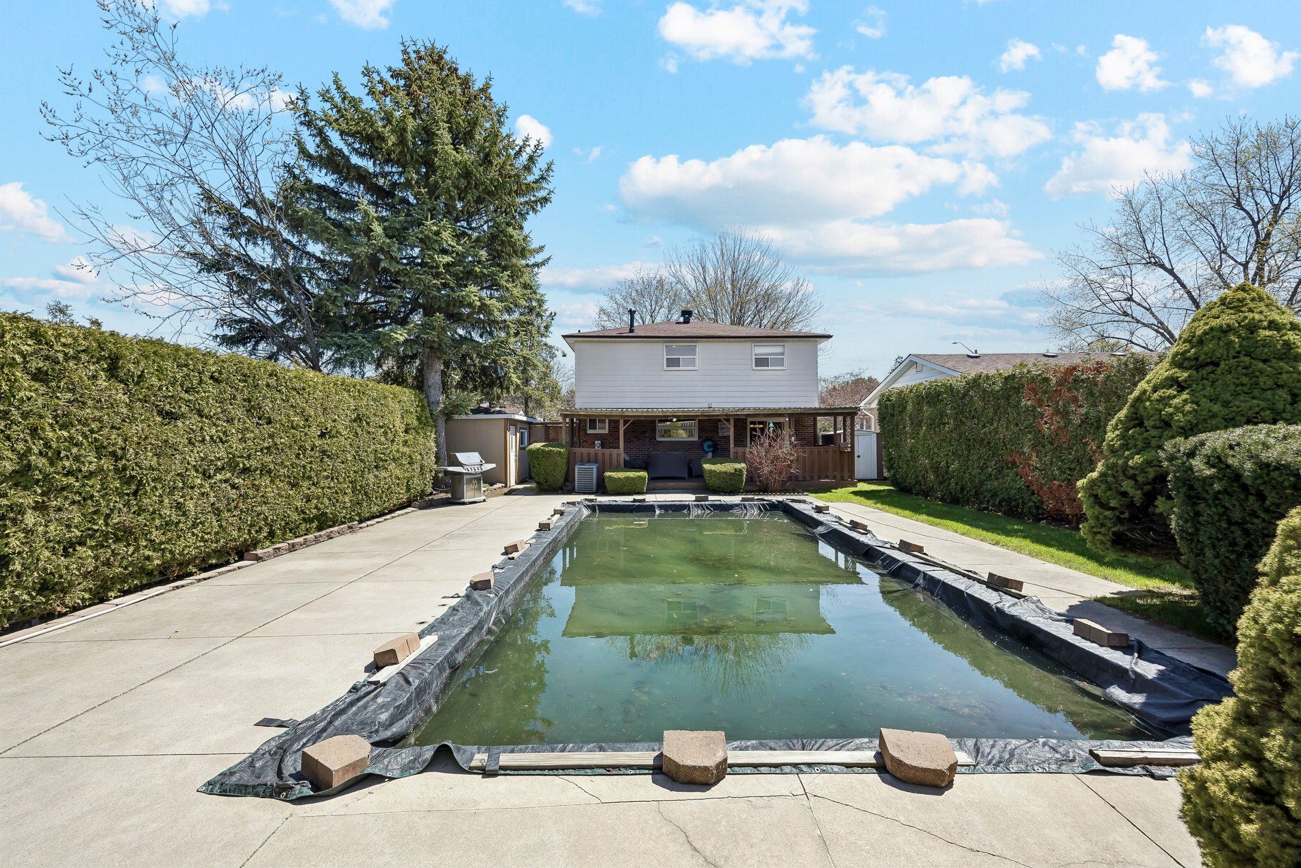 ** this is a must see!** don't miss the opportunity to own this spacious well maintained detached 4 bedroom home with hardwood floors on a quiet child safe crescent. Large 50' *130' lot with a 16' * 32' inground pool + custom cabana. Surrounded by cedars for privacy. Natural gas, bbq, sliding door walk - out to amassive covered porch across the entire back of the house to complete this backyard oasis. Separate side entrance + finished basement with many possibilities! Close to go station, hwy's, shopping etc. Great value !! **don't hesitate to show it **