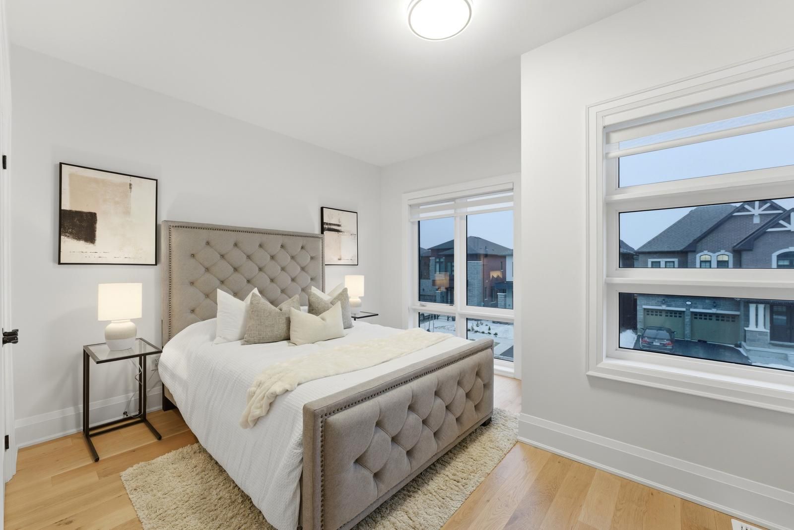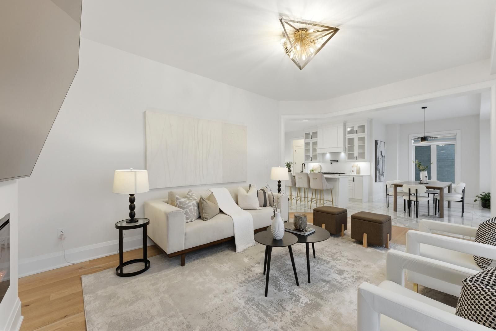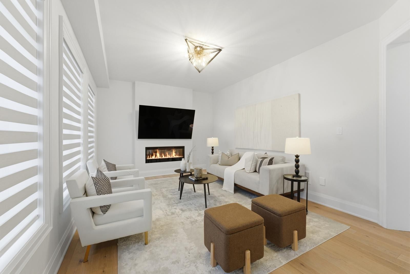 • Spacious family room with oversized windows and a cozy fireplace.