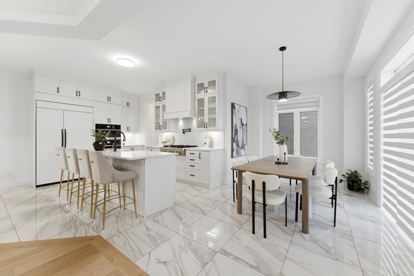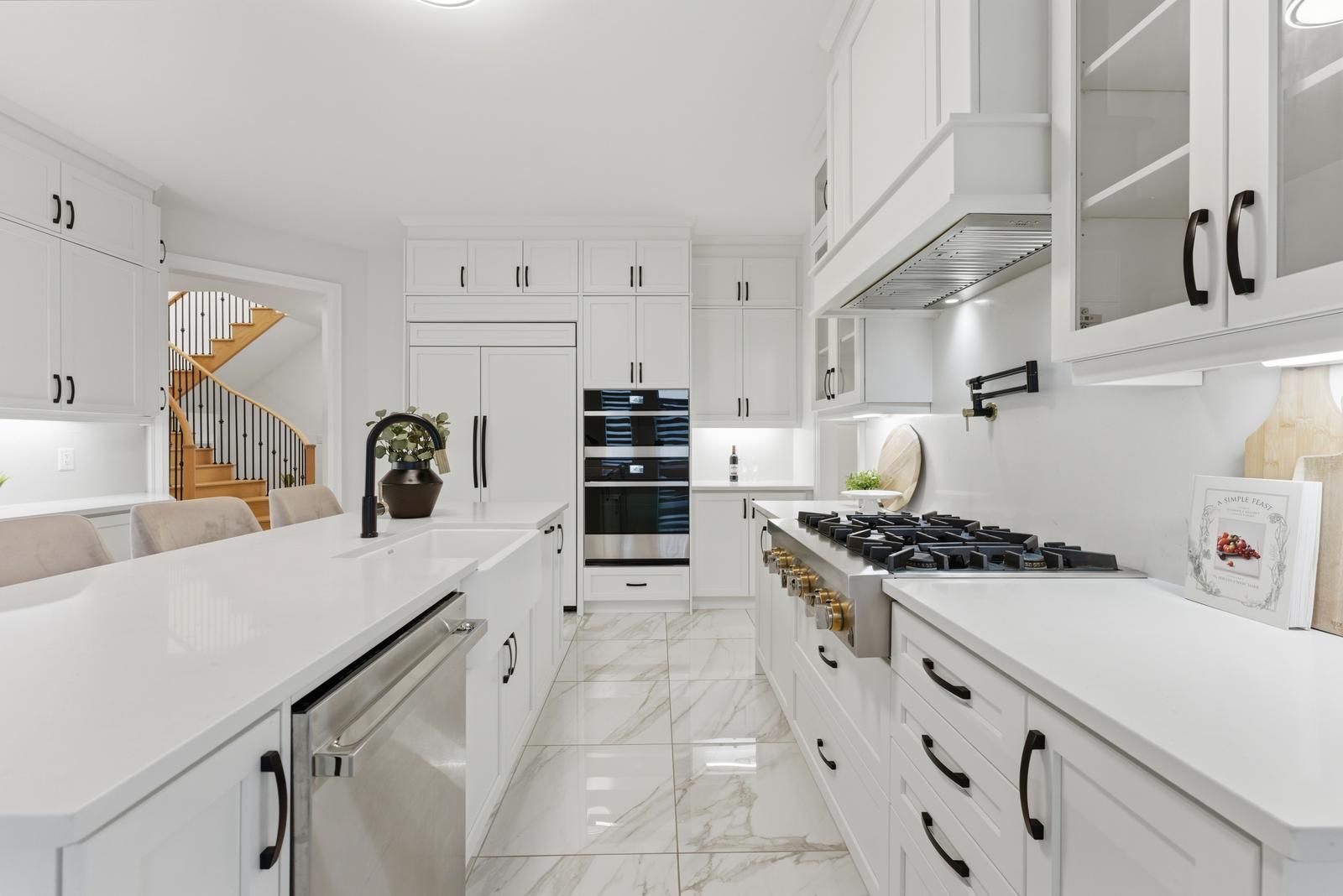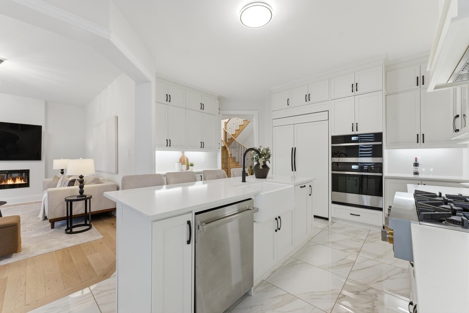 • Chef-inspired kitchen featuring built-in appliances and a large island.