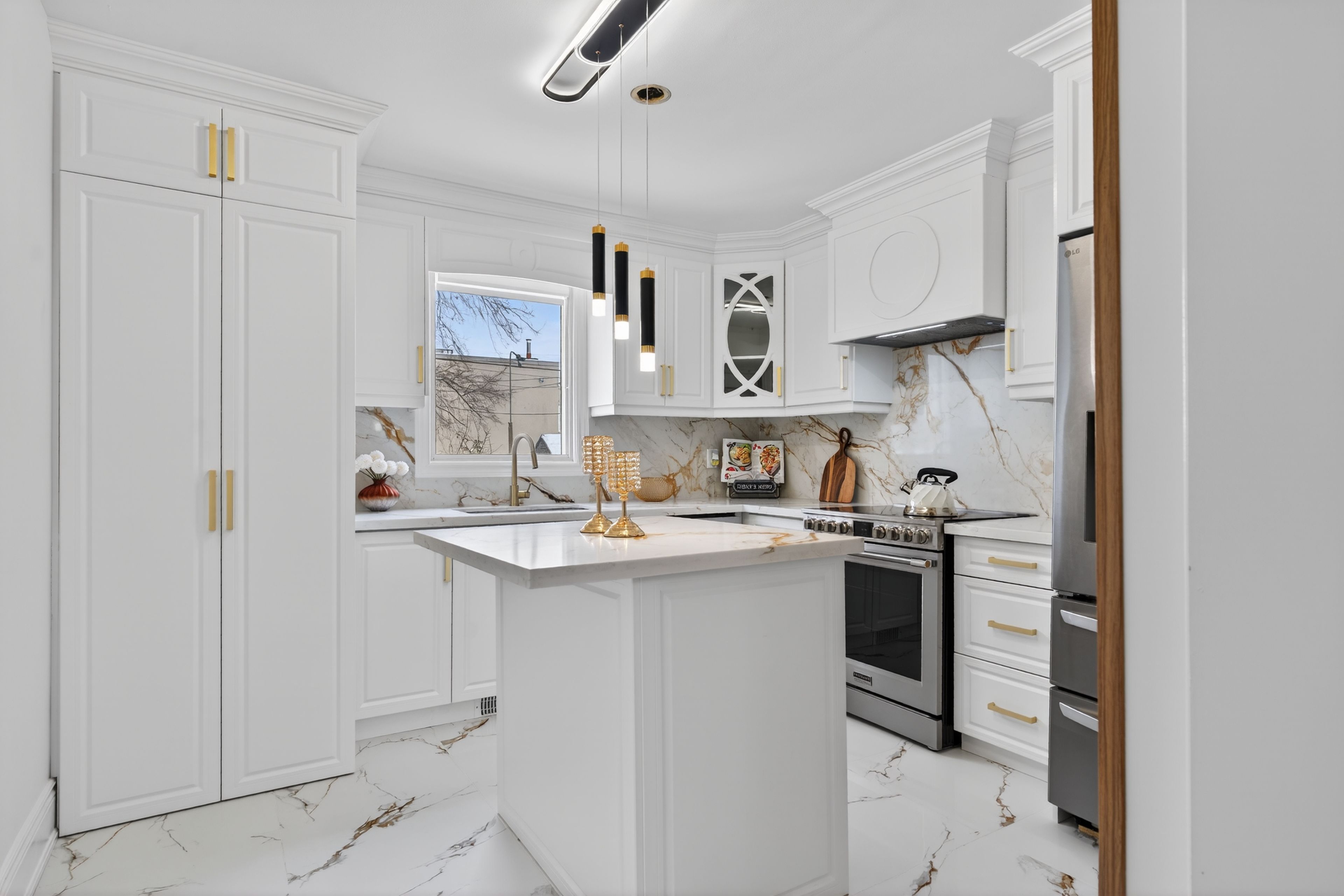 • Fully renovated home with high-quality finishes and large windows.