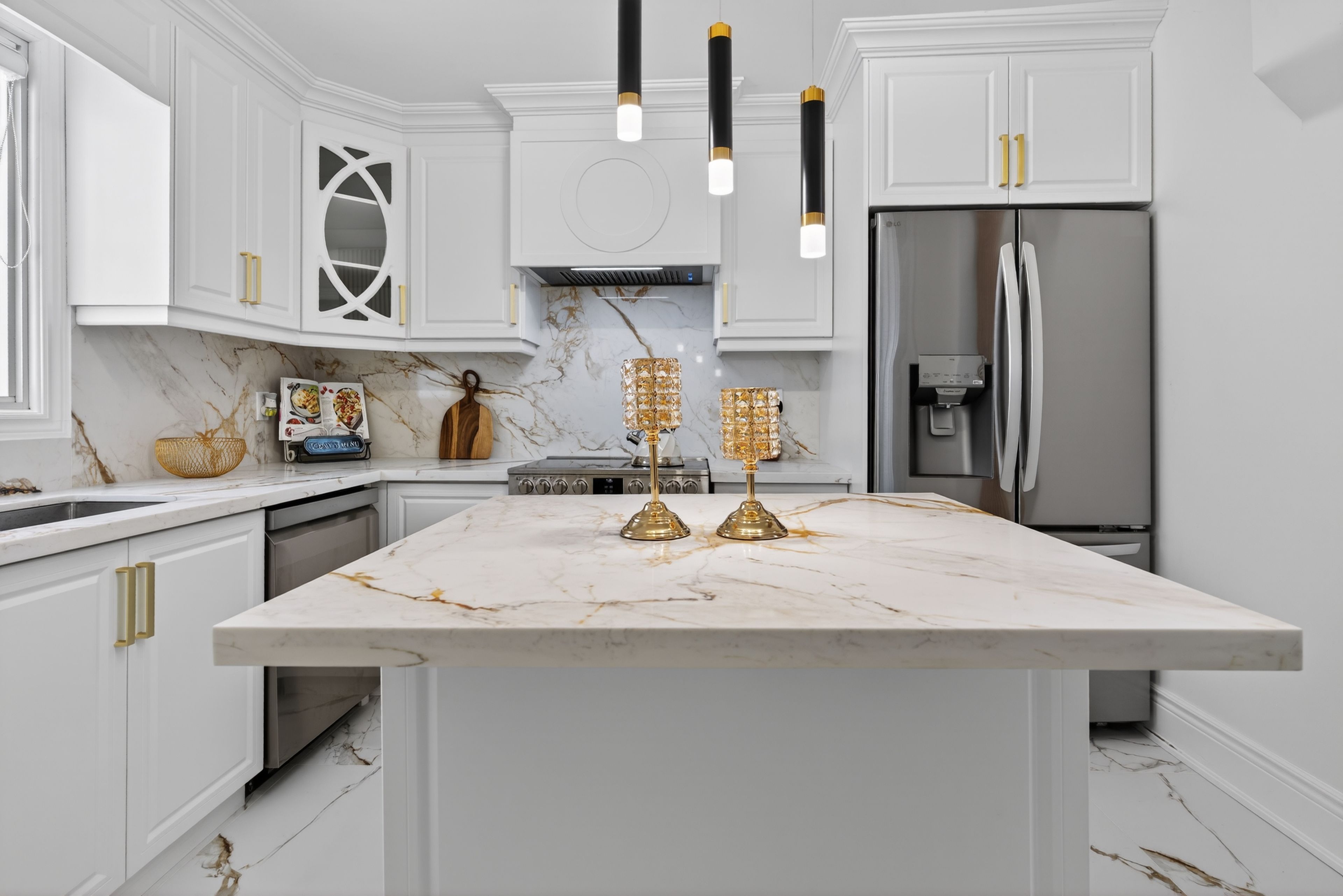 • Custom kitchen featuring quartz countertops and brand new appliances.