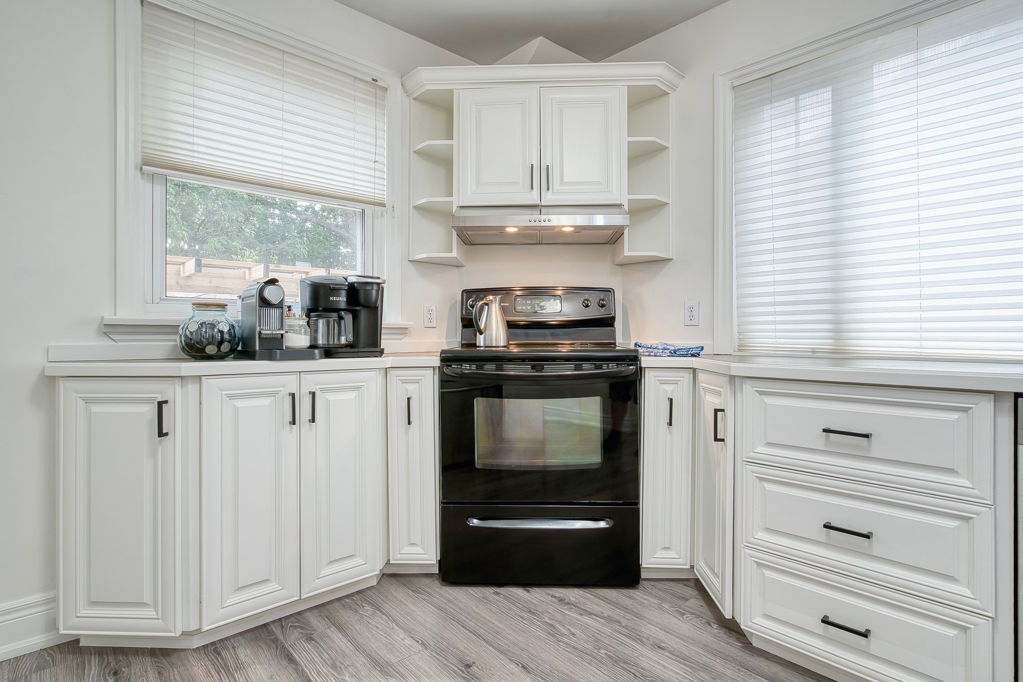 • Updated eat-in kitchen with heated floors and easy backyard access.