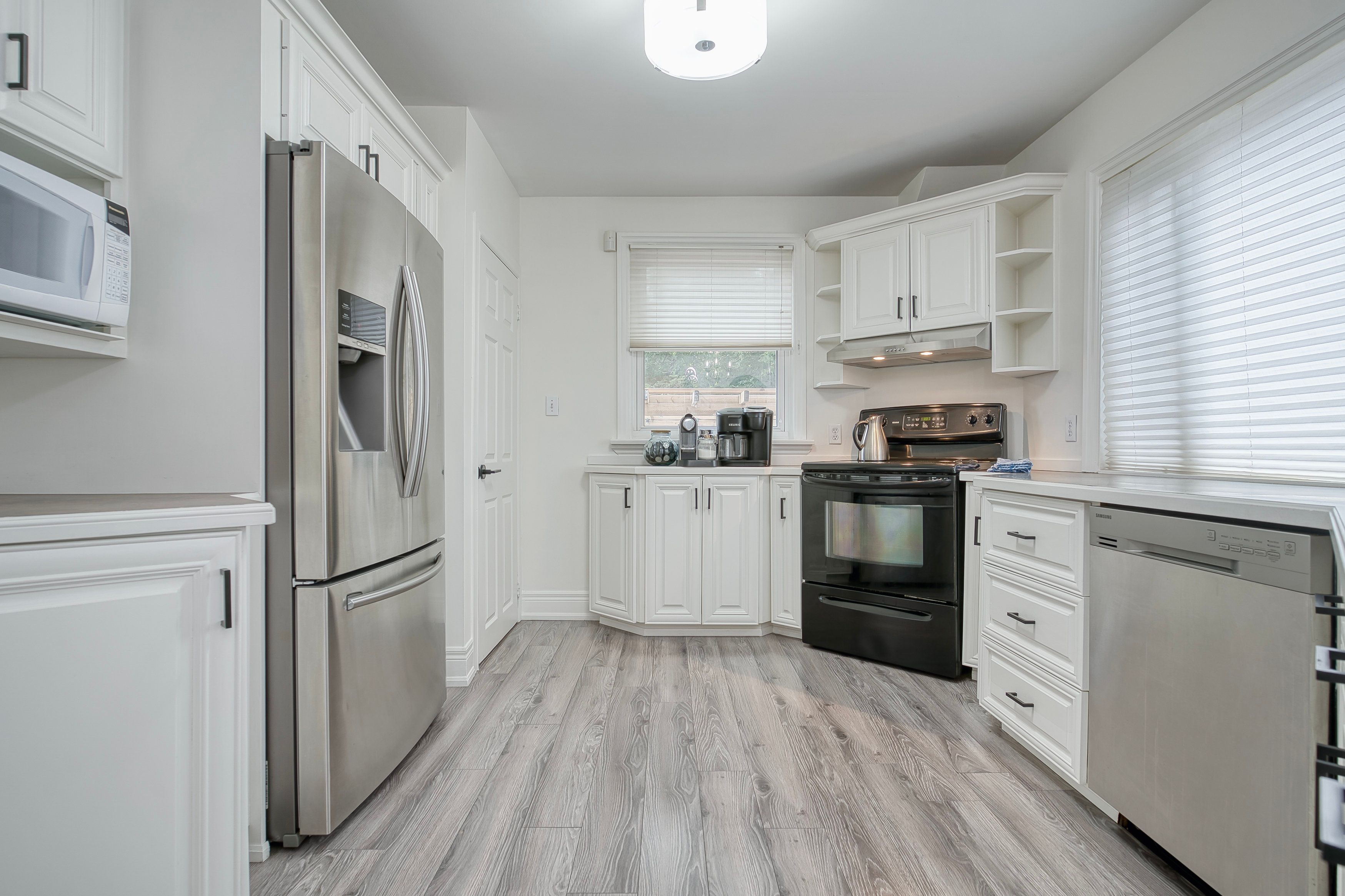 Three bedroom on the second level - charming cape cod on an oversized 50 x 125 ft lot fully renovated & move-in ready! This picture-perfect 3-bedroom family home offers timeless curb appeal and a thoughtful, modern renovation throughout. Set on a beautifully landscaped, fully fenced lot, its perfect for families, entertaining, and relaxing in total privacy. Inside, enjoy an oversized living and dining area ideal for large families or working from home. The stunning, fully updated eat-in kitchen features heated floors and walkout access to your backyard oasis. Out back, you'll find a patio, pergola, playhouse, fire pit, storage shed, and plenty of green space an entertainers dream and a kids paradise! Upstairs boasts three generously sized bedrooms and stylish, modern bathrooms. The finished basement features a separate entrance, wet bar, electric fireplace, and a full bath offering great potential for in-law or multi-generational living. Big, bright, and beautifully updated, this home is a rare find. Just steps from major highways (400 series), up express, ttc, schools, weston farmers market, and surrounded by amazing neighbours. Don't miss this move-in-ready gem!