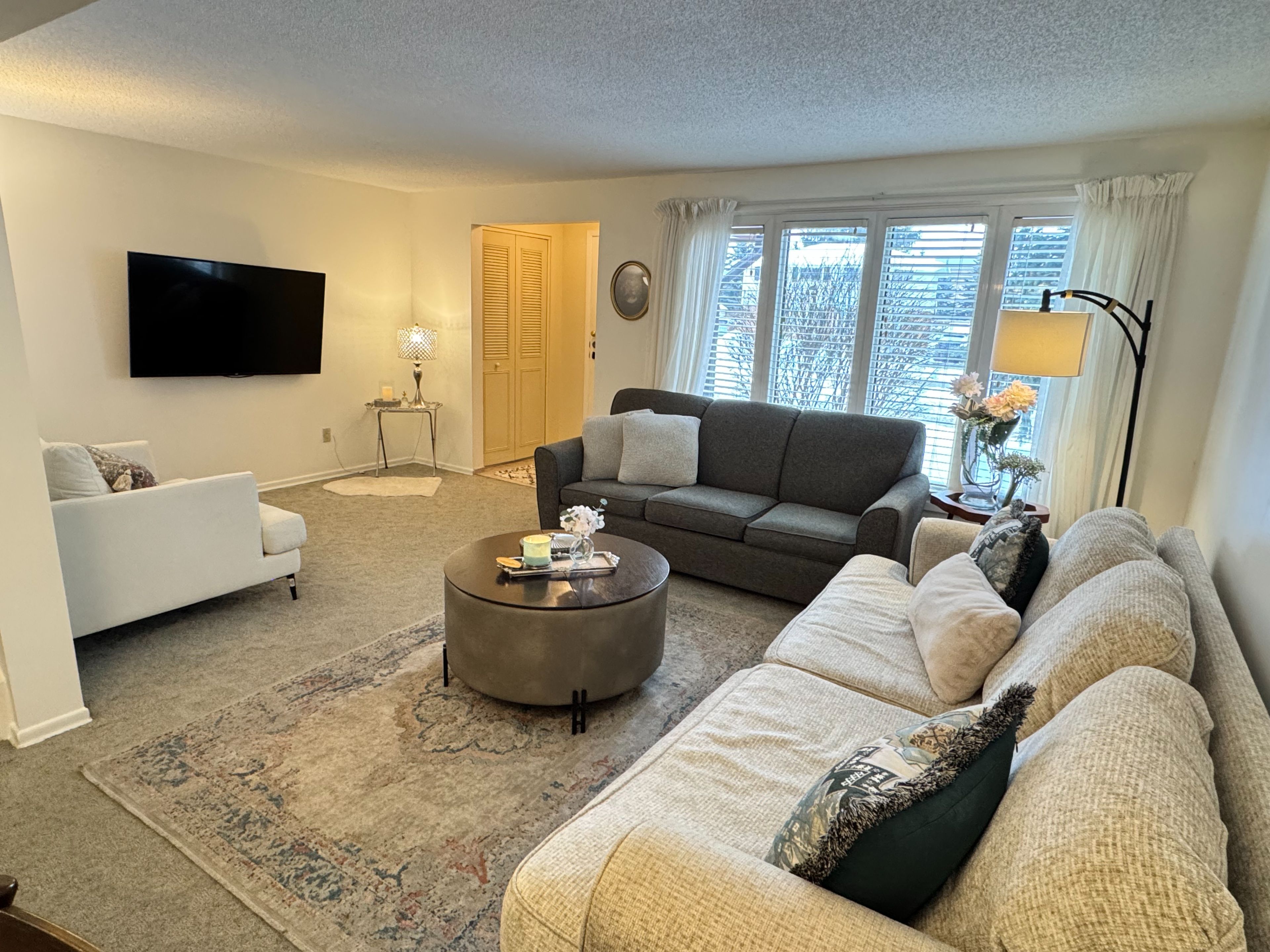 • Bright open concept living and dining area filled with natural light.