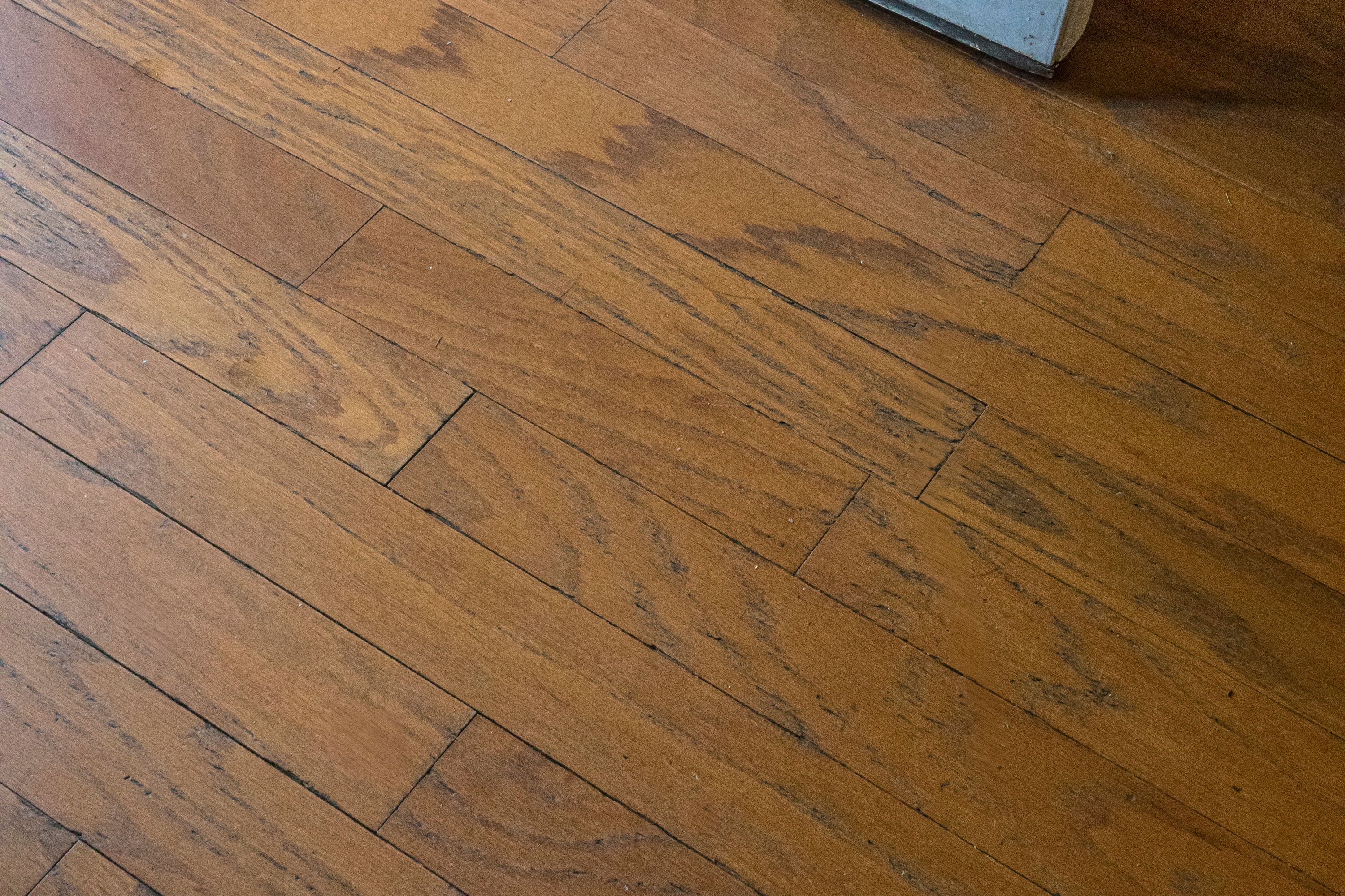 • Bright living room with hardwood floors and spacious dining area.