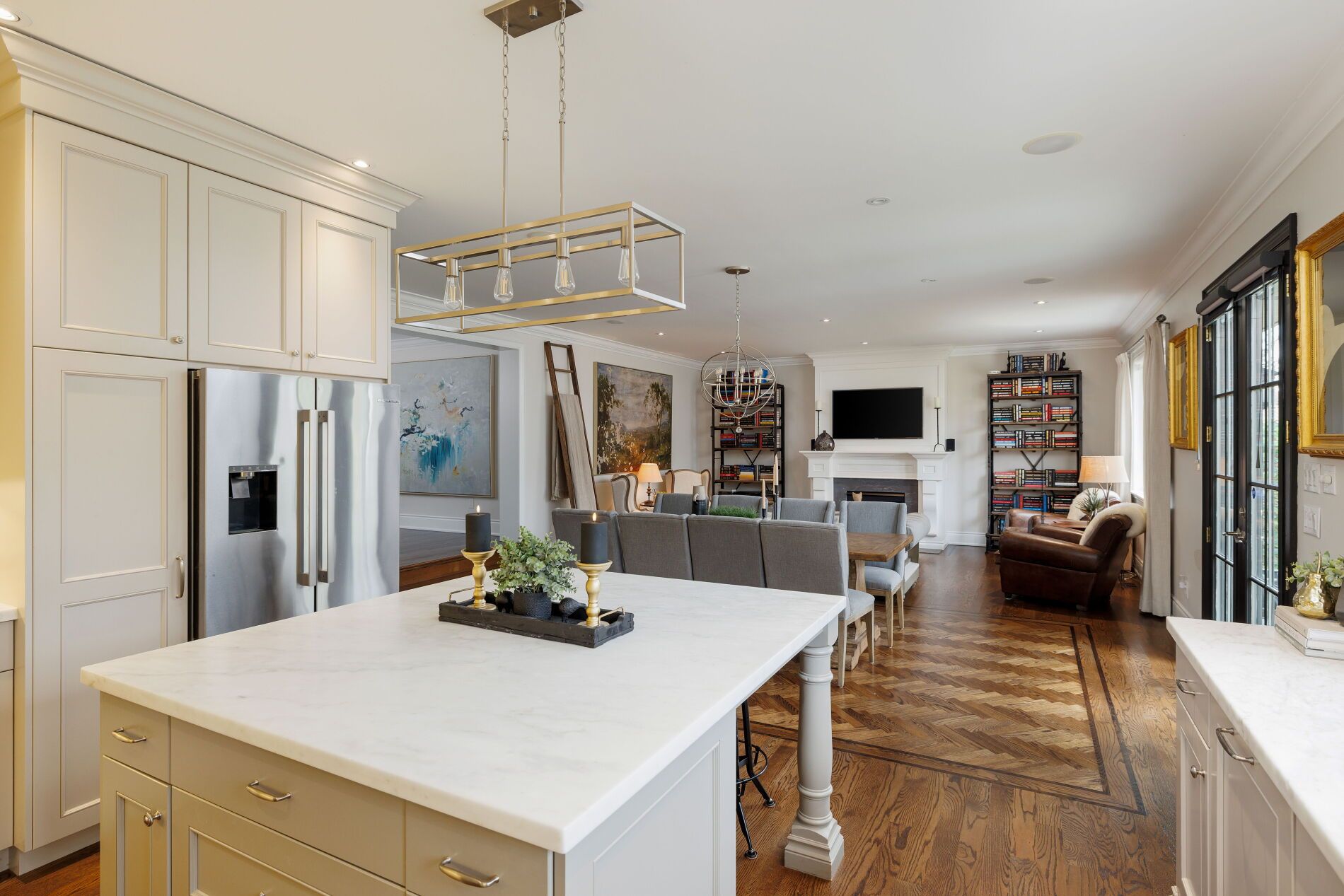 • Grand open-concept design with high ceilings and modern finishes.