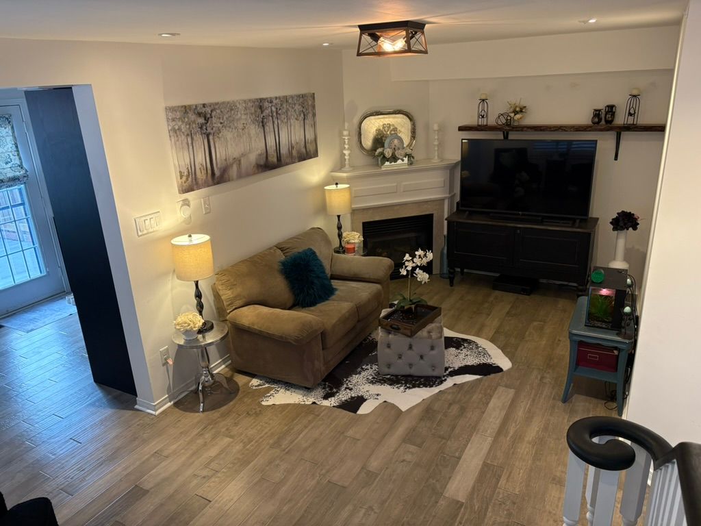 • Living room features a gas fireplace for warmth and comfort.