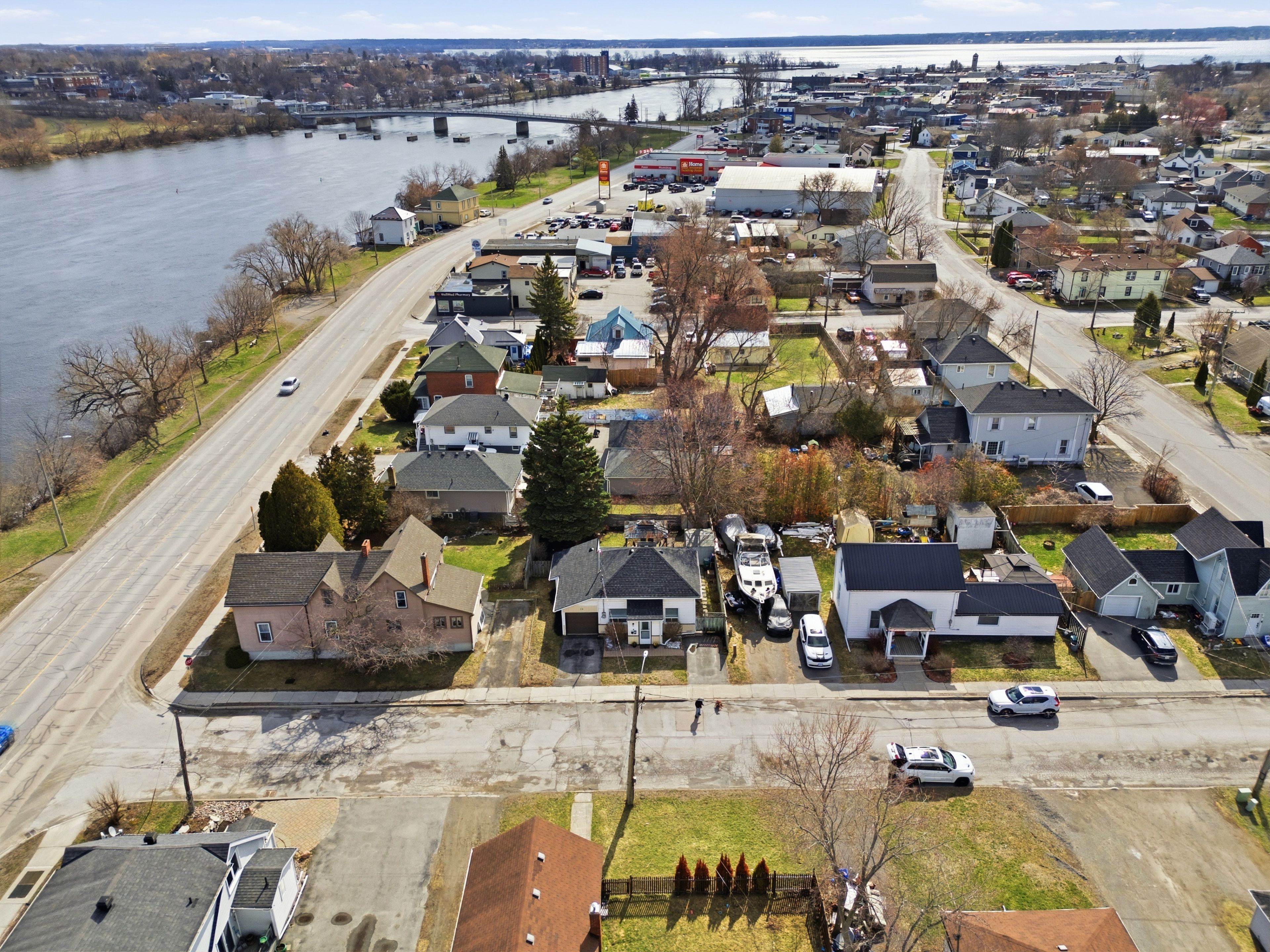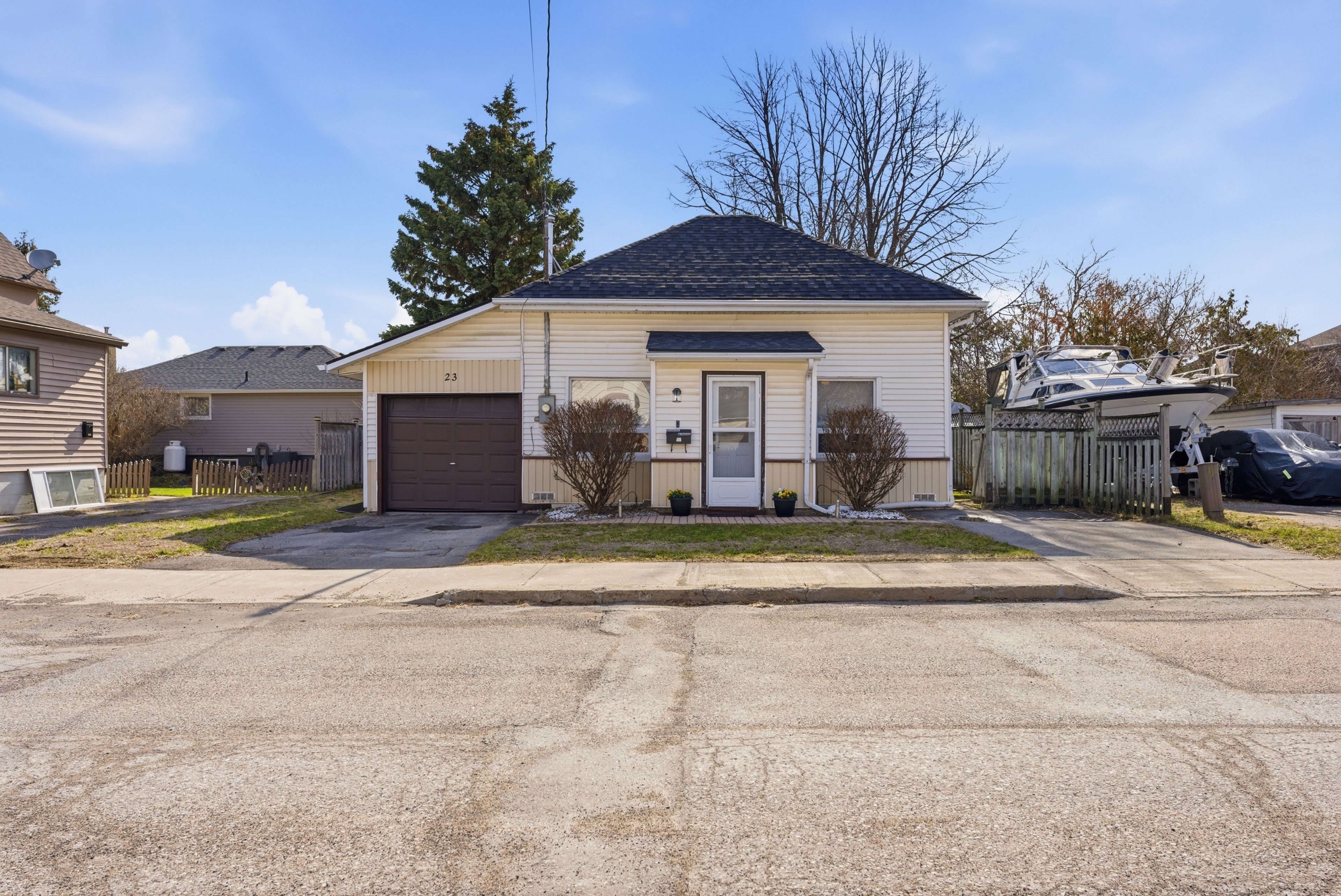 Welcome to 23 guelph street in the heart of trenton, this updated 2-bedroom, 1-washroom bungalow offers more than meets the eye. Featuring an open-concept layout and a cozy fireplace, the space feels inviting, functional, and perfectly suited for modern living. The kitchen is both stylish and practical, flowing seamlessly into the main living area and offering direct access to the fully fenced backyard. With a gas bbq hookup already in place, outdoor cooking and entertaining can be enjoyed year-round without the hassle of propane tanks. Recent updates include a new roof (2025) and updated windows, providing added confidence for years ahead. A standout feature of this property is the parking and storage: two separate driveways plus a drive-in shed with an electric garage door, perfect for bicycles, motorcycles, or even a small vehicle. Location adds to the appeal. Just steps from the trent river, enjoy scenic walks, cycling, or quiet moments by the water all less than a minute from your front door. Conveniently located just minutes to cfb trenton, making it an excellent option for military members and those seeking easy access to the base. Whether you're entering the market or looking to right-size, this home offers comfort, convenience, and a lifestyle that's easy to enjoy. This is a must-see.