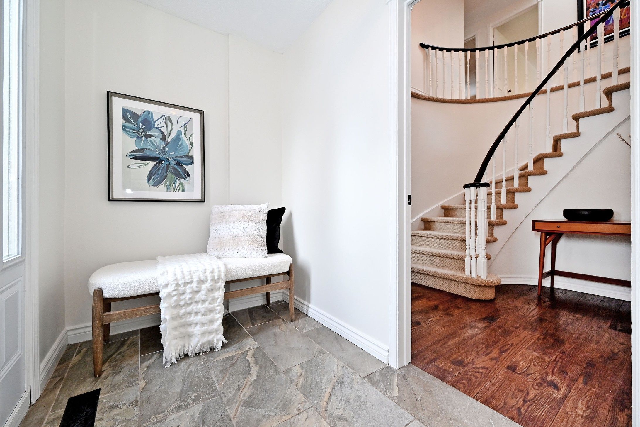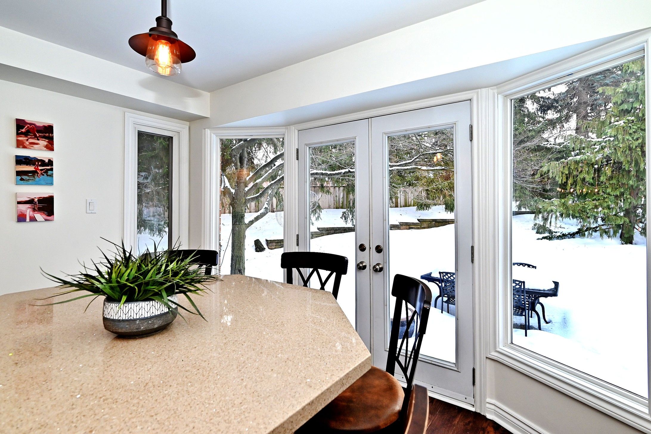 • Multiple outdoor walkouts lead to beautiful gardens and a stone patio.
