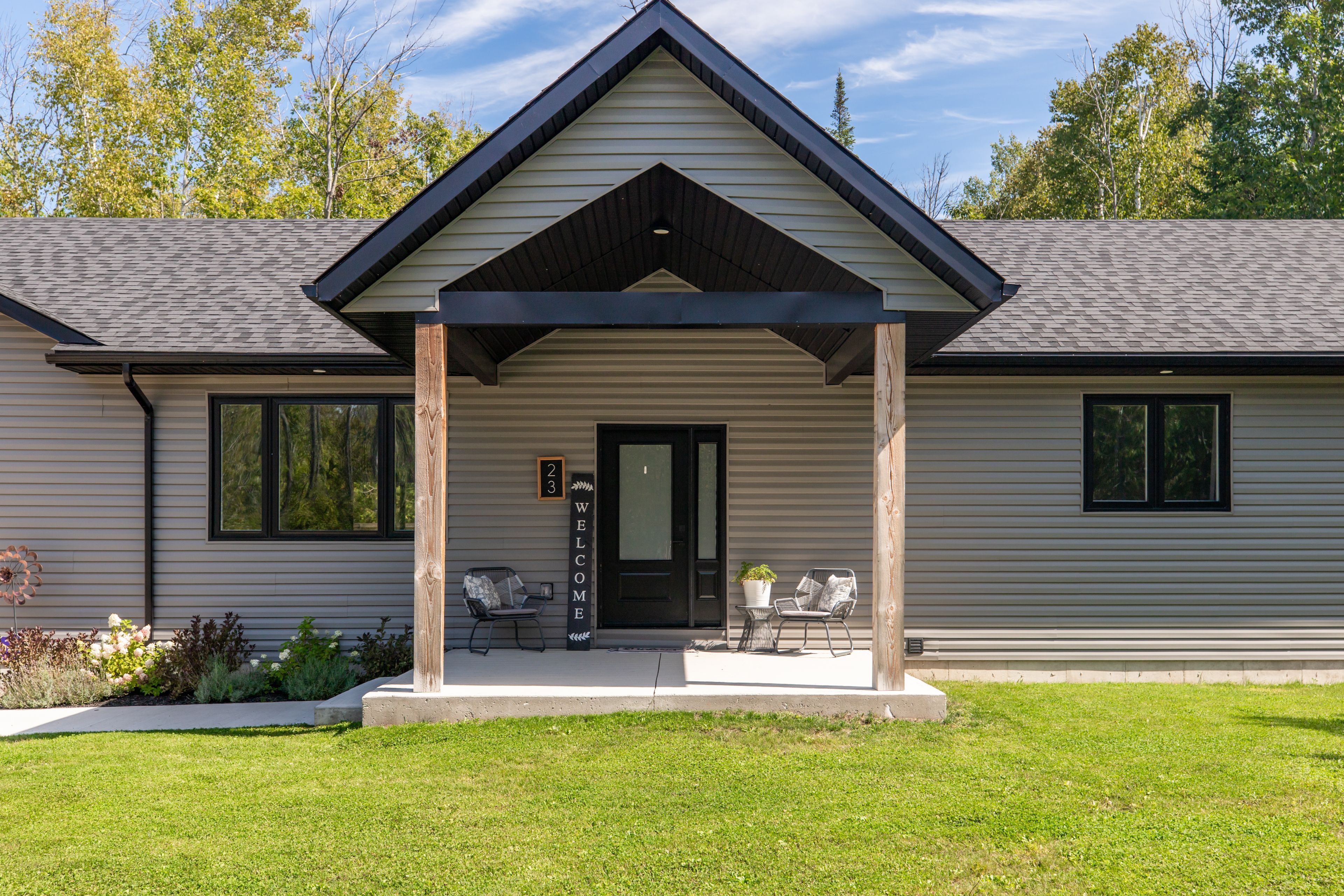 Welcome to 23 hemlock road in beautiful oliphant. This stylish, move-in-ready bungalow perfectly blends modern comfort, thoughtful upgrades, and easy one-level living in one of the area's most desirable communities. Built in 2023, this 3-bedroom, 2-bath home offers approximately 1,500 sq ft of bright, open-concept living space designed for both everyday comfort and effortless entertaining. The spacious kitchen is the heart of the home, featuring new appliances, a modern style, and a functional layout that flows seamlessly into the dining and living areas. Cathedral ceilings, large windows and clean, contemporary finishes create a warm, airy feel throughout. The private primary suite includes a beautiful ensuite bath, while two additional bedrooms and a second full bath provide flexibility for family, guests, or a home office. This home has been further enhanced with central air, a top of the line, whole house water purification system, custom closet shelving, and completed landscaping, making it feel even more polished and turnkey. Outside, the curb appeal is undeniable with modern exterior styling, a covered front porch, attached 2-car garage, and a covered back deck overlooking the treed lot. Located in the sought after lakeside community of oliphant, just minutes to the shores of lake huron, this is an exceptional opportunity to enjoy newer construction, bungalow living, and a peaceful lifestyle in a truly special setting