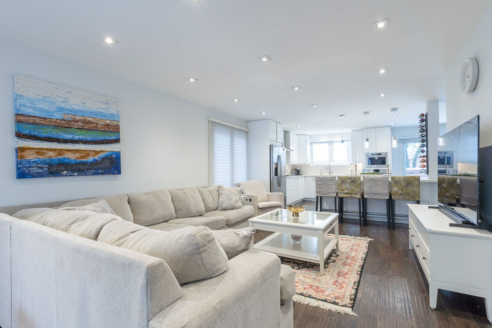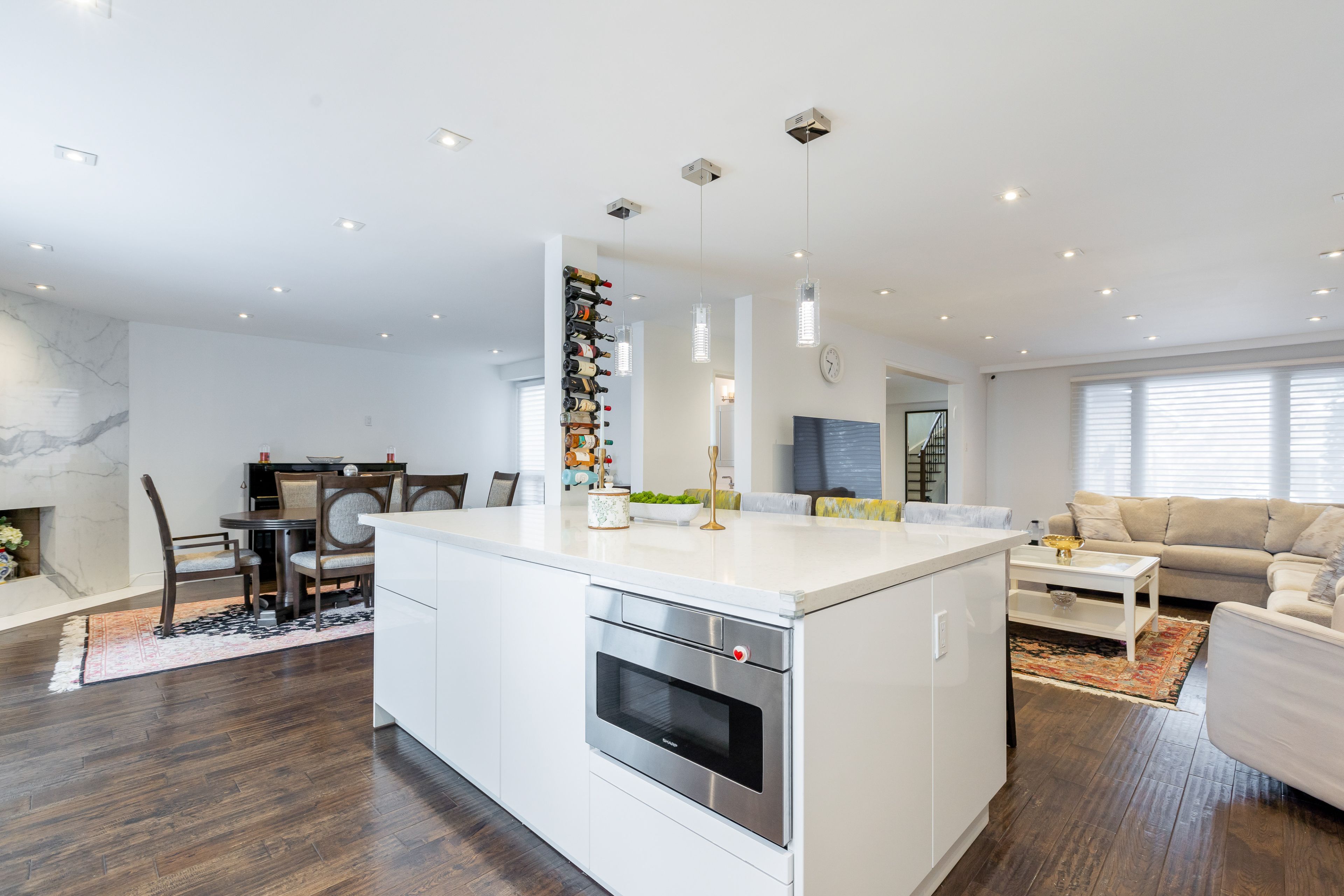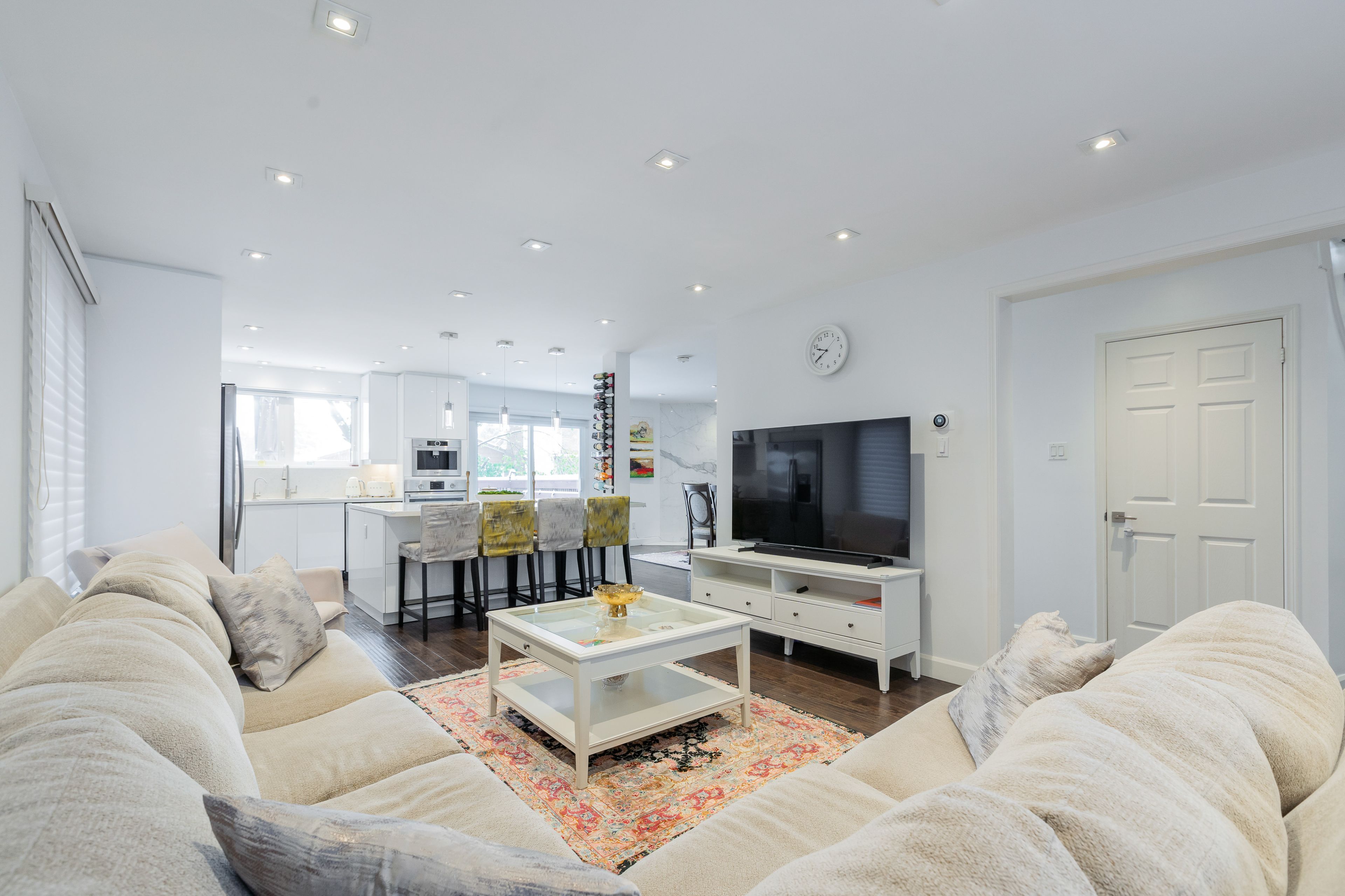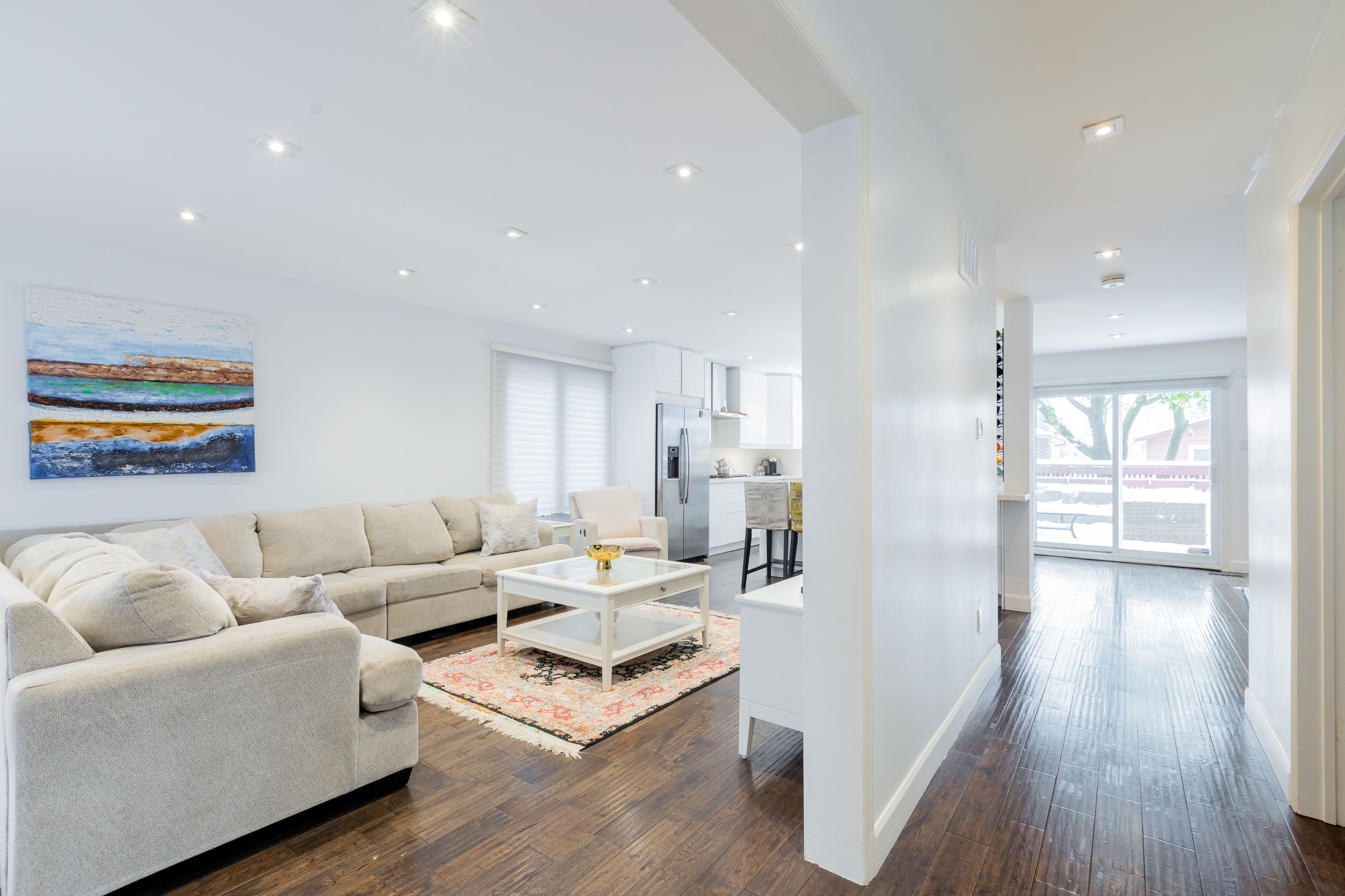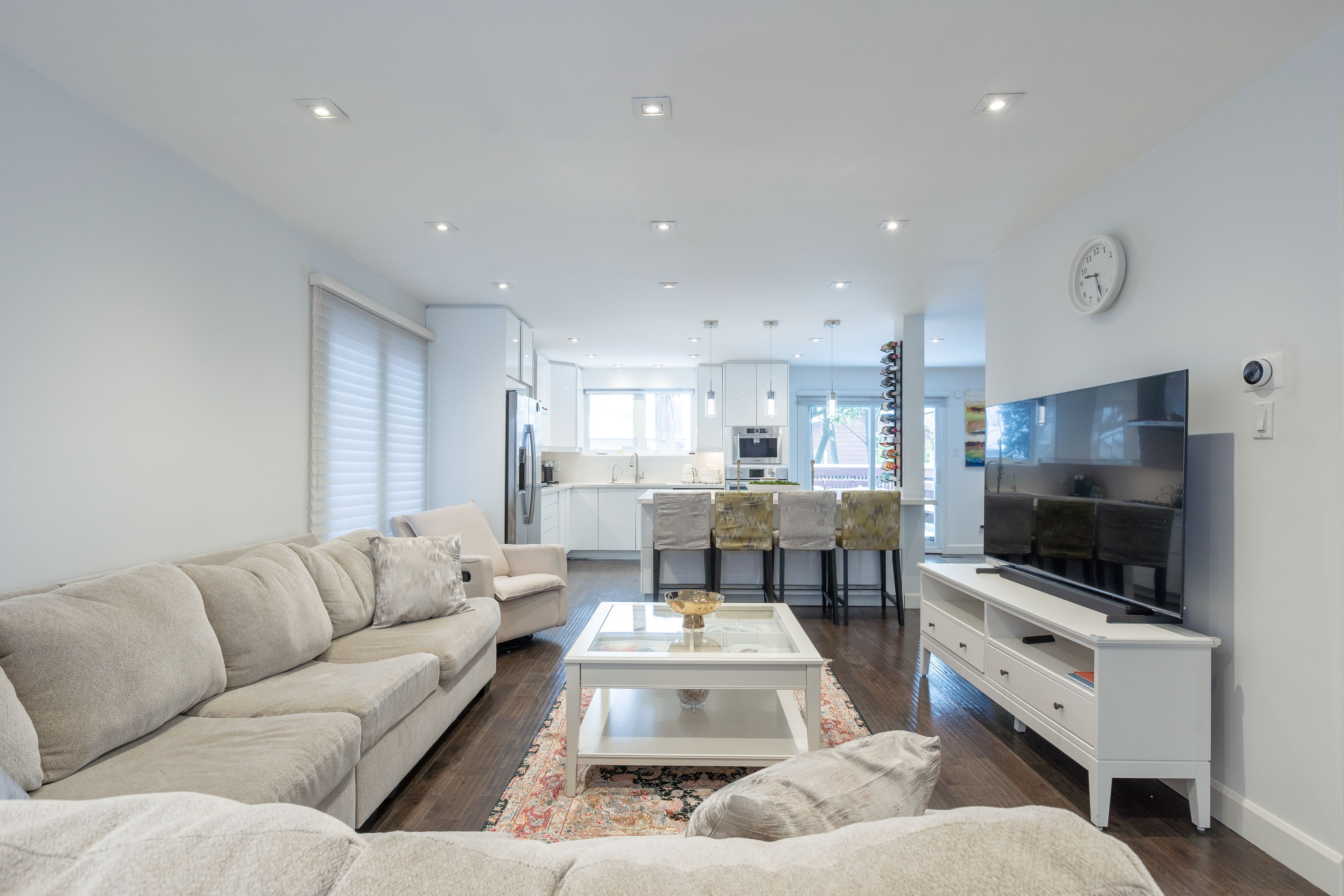 • Open concept living area with hardwood floors and natural light.