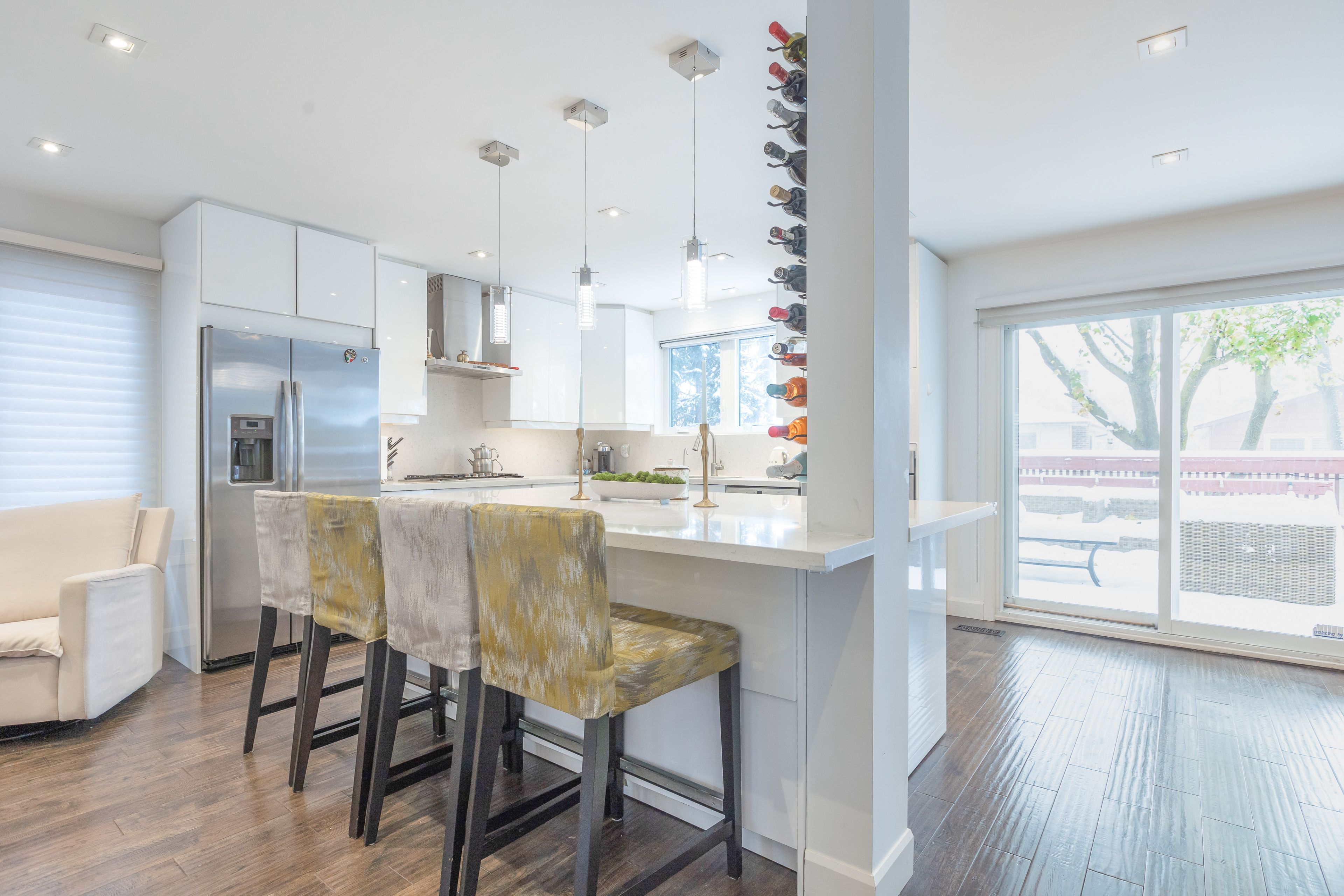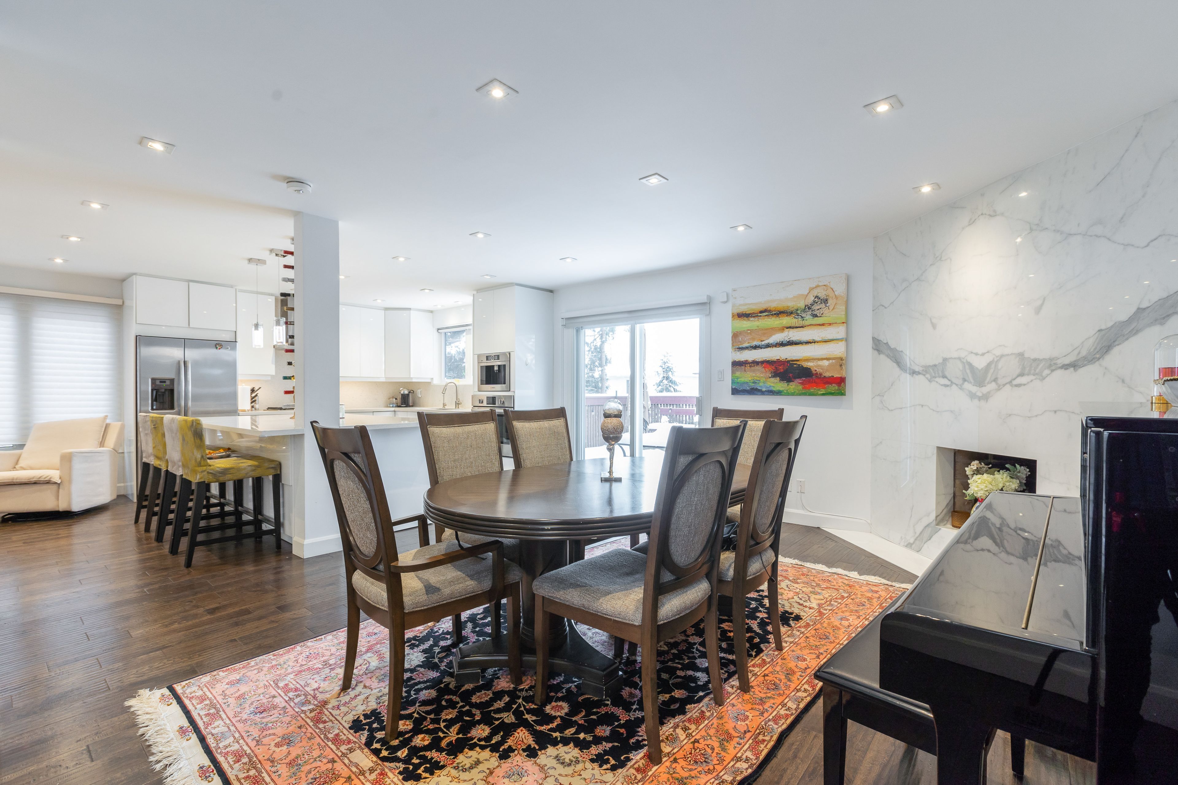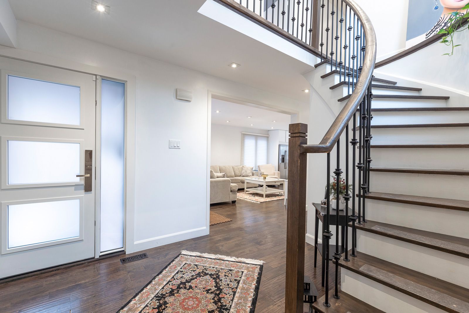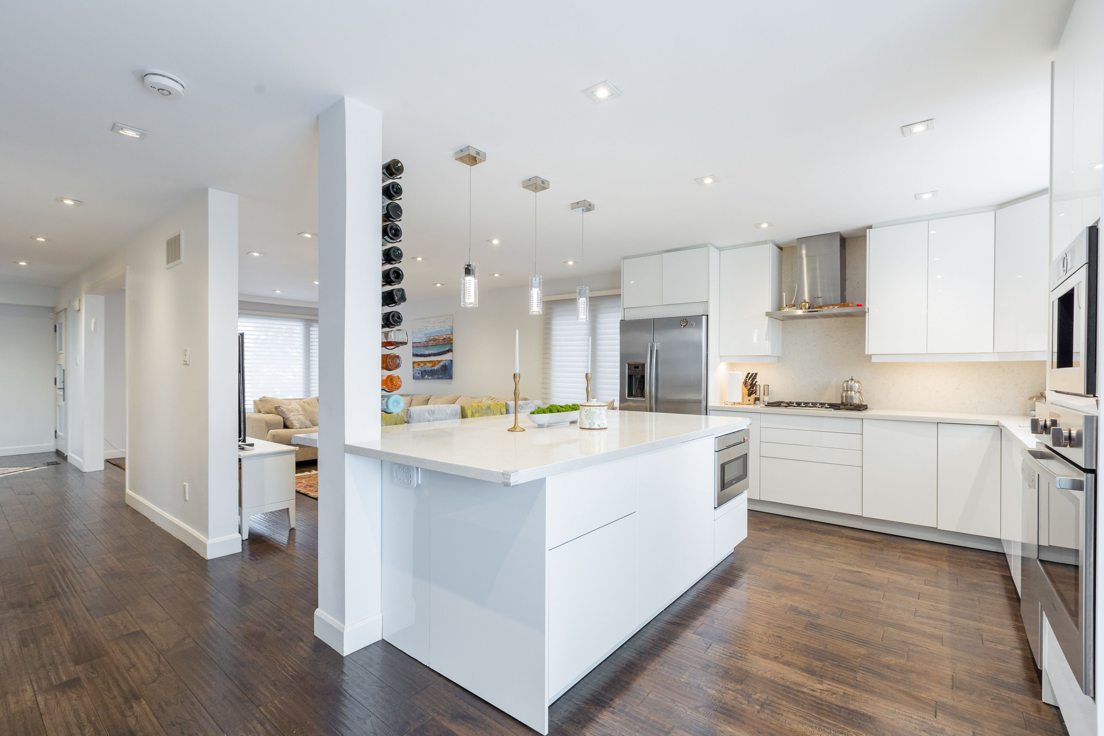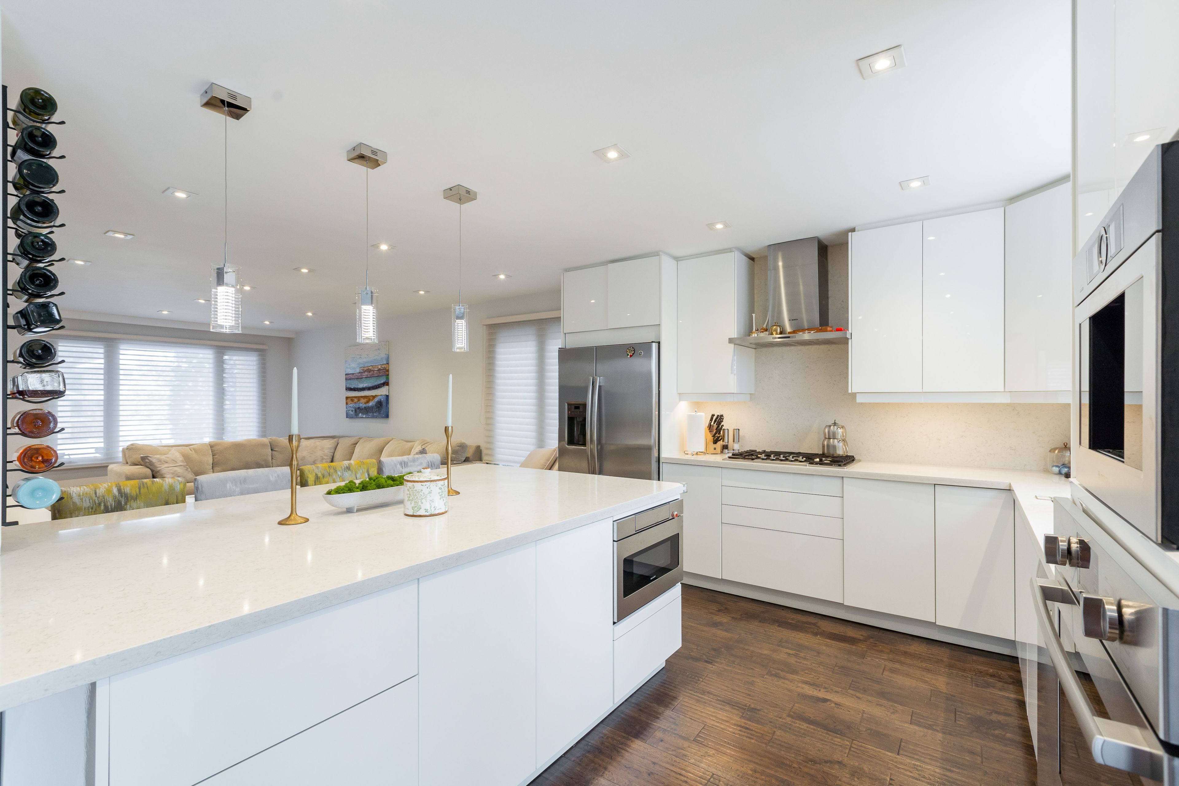 • Open concept living area with hardwood floors and natural light.