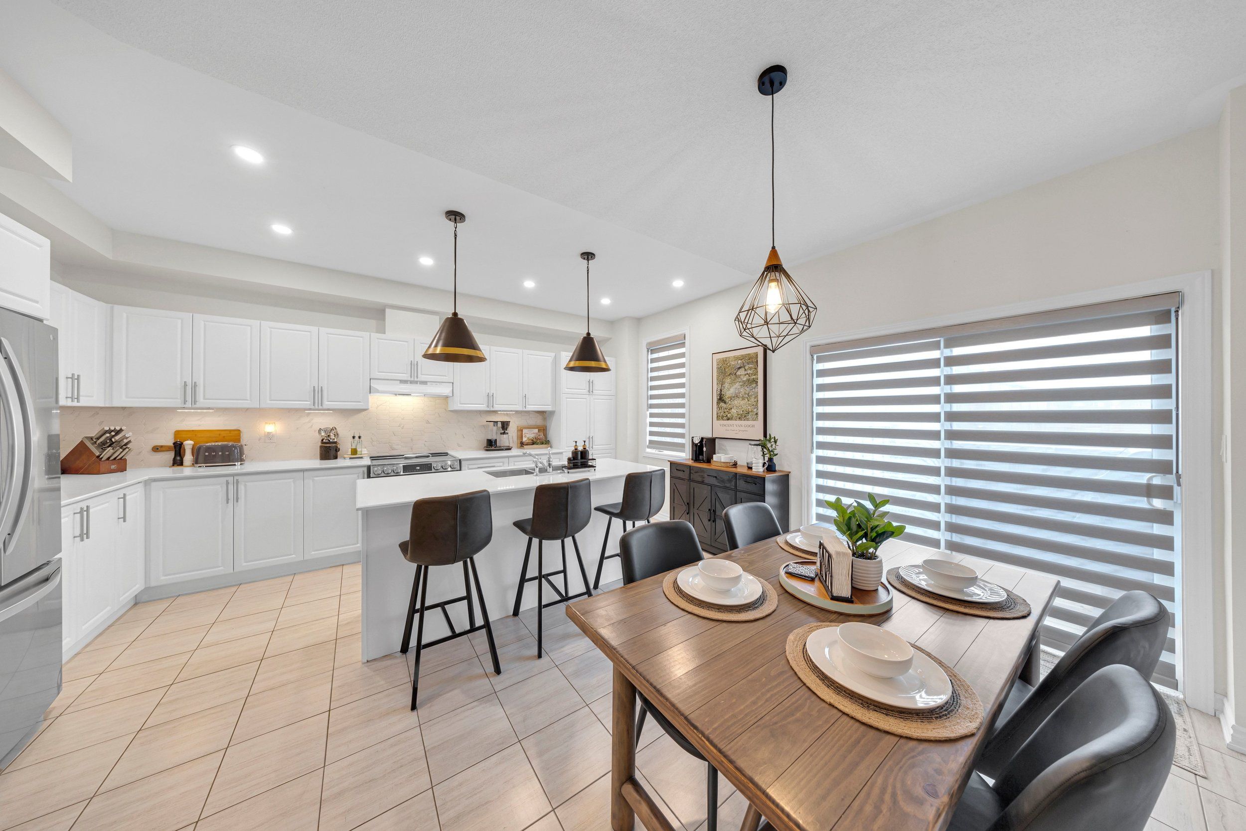 • Spacious kitchen includes premium appliances and quartz countertops.