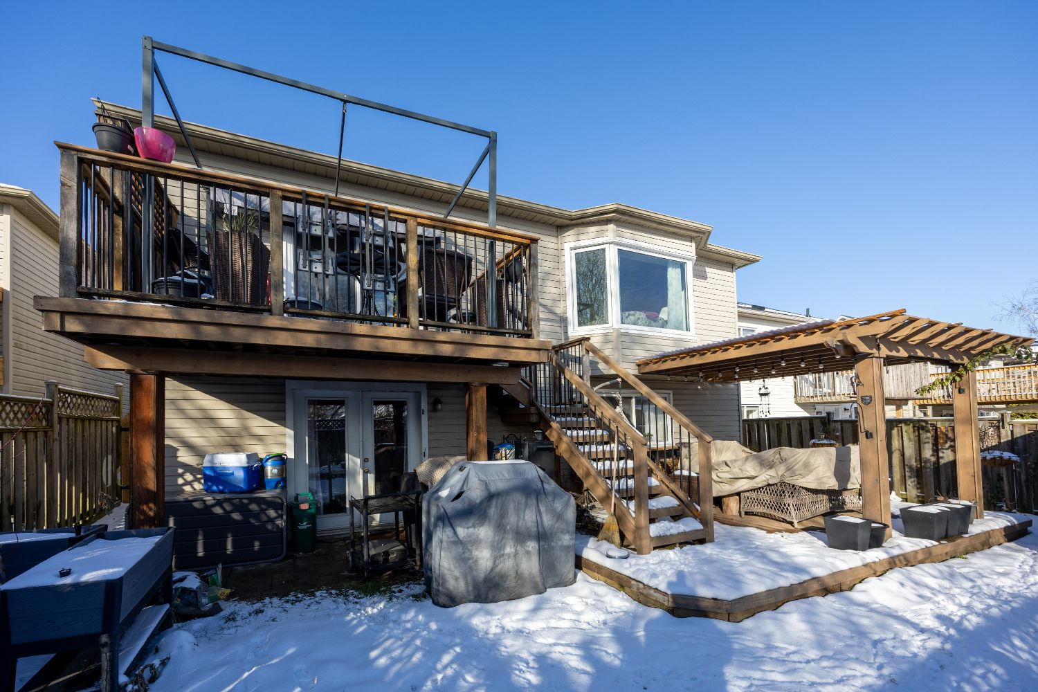 Feast your eyes on this beautiful large family home, nestled in one of the most desirable neighborhoods-just moments away from grocery shopping, parks, and quick access to the 401! Convenience? You got it! But hold on-because we're just getting started! On the main level, you're getting three-yes, three-spacious bedrooms, a bright and welcoming kitchen, a lovely dining room, a cozy living room, and a bonus family room... Plus laundry all on one level! That's right-no stairs needed! And we didn't forget comfort: you get a full bathroom, and a full ensuite bathroom. Plenty of space for anyone-easy, breezy living! But wait-there's more! Head on down to the finished basement, where you'll find two additional bedrooms, another full bathroom, and a large second kitchen-perfect for guests, extended family, or that teenager who swears they're independent. And it comes with a walkout to your own private, fenced yard! And check this out: the basement kitchen has a big window-so gramma can keep an eye on the kids outside while grampa kicks back in his own living room watching football in peace. Now that's luxury! This home is loaded with builder upgrades and was the largest model the builder offered in the entire community! So whether you're a multi-generational family needing room to breathe, or a first-time home buyer looking for an incredible opportunity... This... Is the home you do not want to miss!