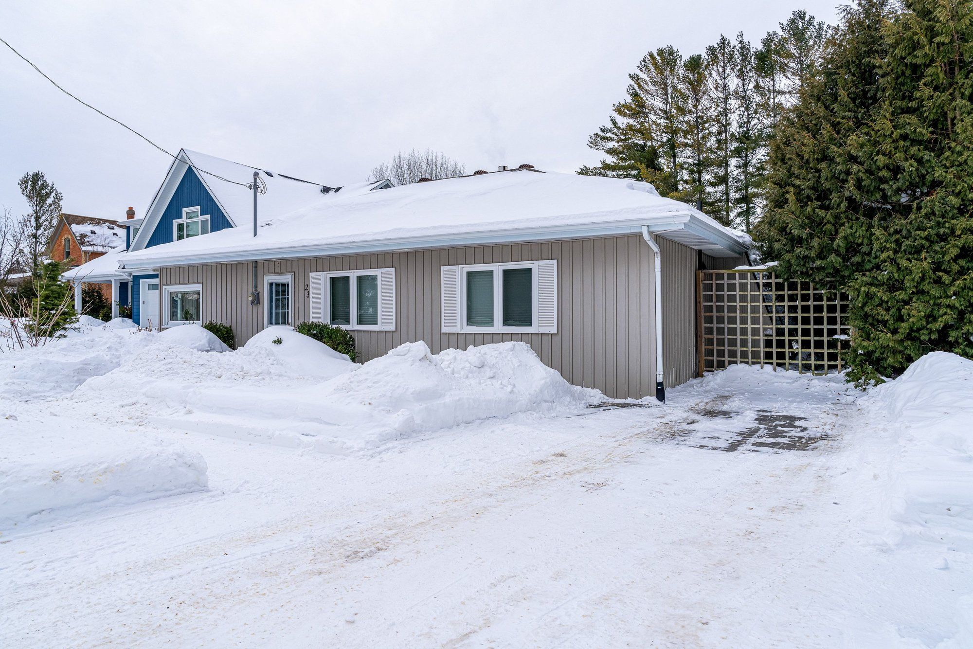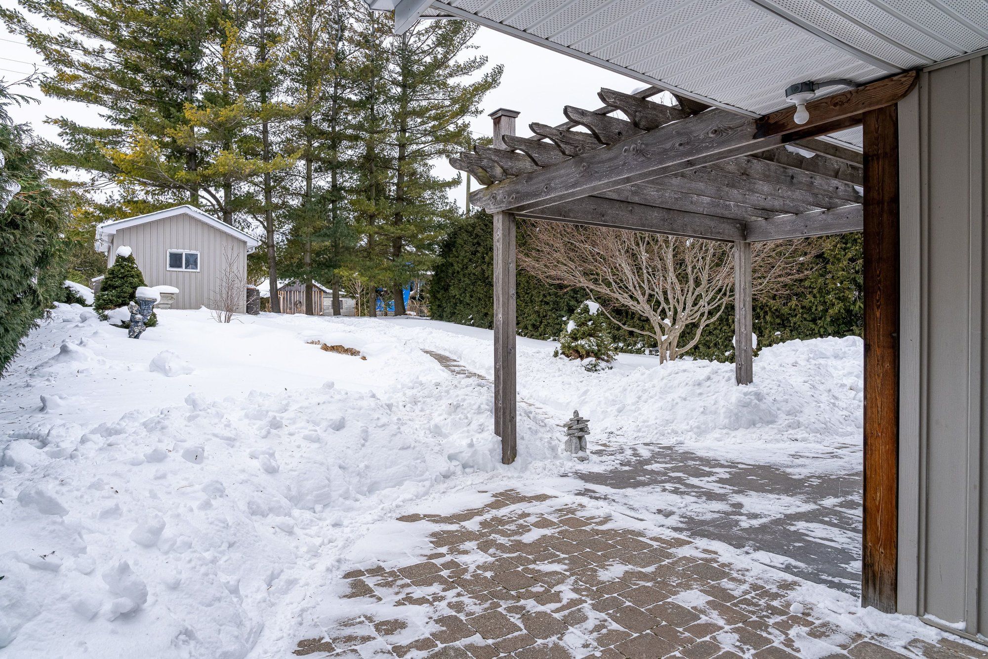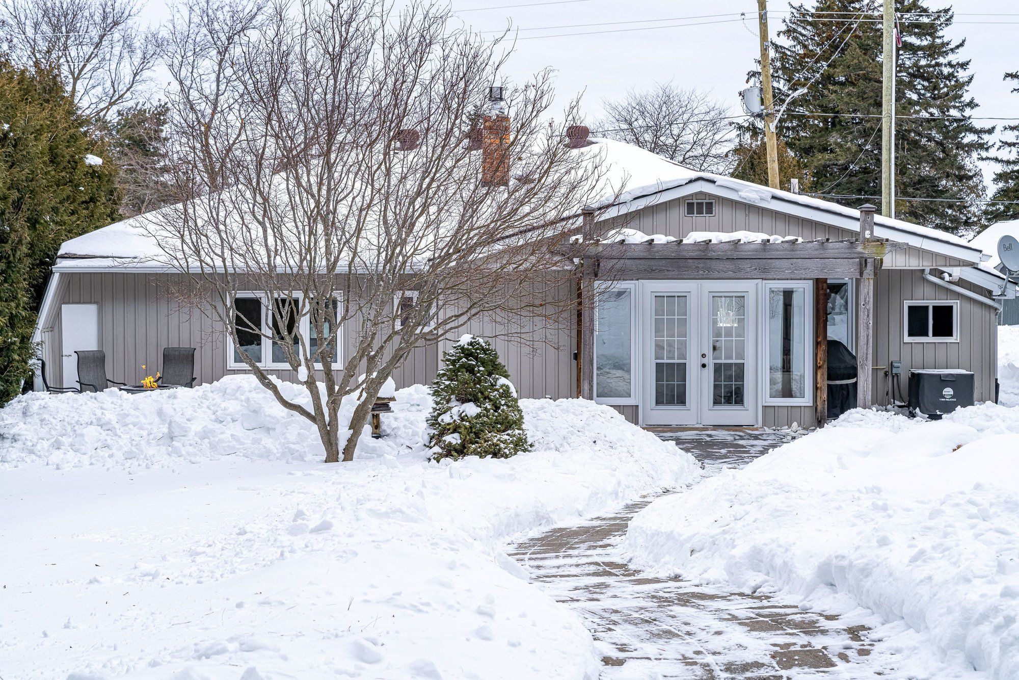 Location, location, location! Welcome to the thornbury harbour house. This exceptional 3-bedroom, 2-bathroom bungalow ideally located just steps from the harbour, beach, pier, parklands, tennis courts and the stunning shores of georgian bay. The backyard is beautifully framed by the majestic seven pines, offering direct access to the georgian bay trail system. Walk in one direction to the beaver river or the other into thornbury's vibrant shops, cafés, and dining. Designed for effortless single-level living, this thoughtfully laid-out home is fully accessible, making it equally suited as a recreational retreat or a comfortable place to age in place. The generous primary bedroom features a private ensuite, complemented by two well-appointed, cozy guest bedrooms and a second full bath. The open-concept living and dining area is anchored by a warm gas fireplace and flows seamlessly through french doors to the true heart of the home-an outdoor sanctuary designed for everyday enjoyment. Professionally landscaped and remarkably low-maintenance, the backyard oasis boasts an expansive 800 sq. Ft. Interlock patio, winding stone pathways, a tranquil waterfall, stream and pond, and lush perennial gardens. Offering a rare blend of privacy and connection to the active trailside community, this space is perfect for quiet mornings or relaxed entertaining. A solid, well-built 12' x 16' outbuilding provides excellent storage for bikes and recreational gear and could easily be reimagined as a bunkhouse, art studio, workshop, or creative retreat as it sits on a concrete pad. As a unique added opportunity, the neighbouring property is also currently available, presenting the rare chance to secure a double lot in one of thornbury's most desirable neighbourhoods which is ideal for those with a larger vision. A truly standout offering where accessibility, comfort, and georgian bay living align and steps from everything that makes this community so special.