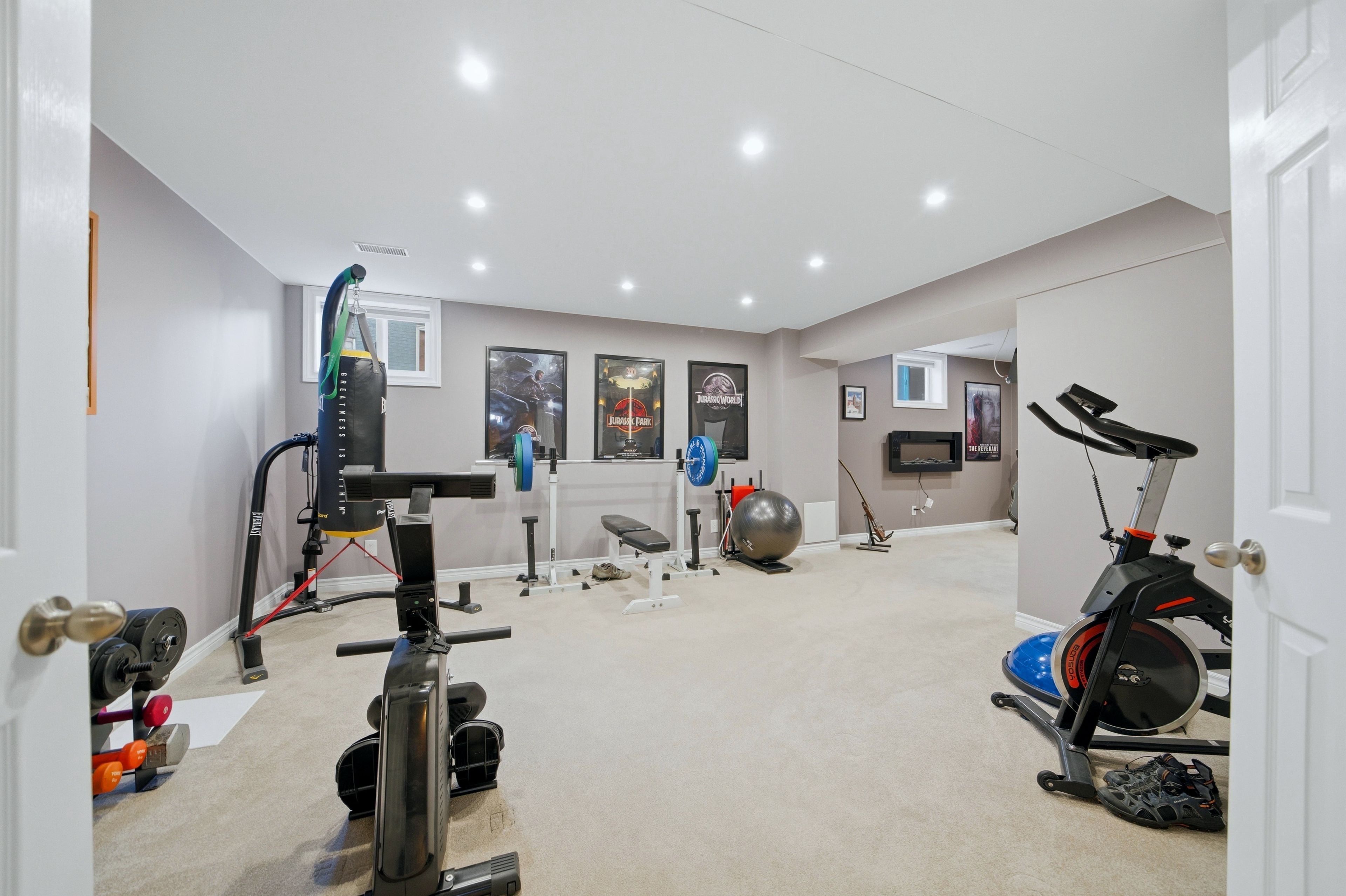 • Finished basement featuring a private theater room and home gym.