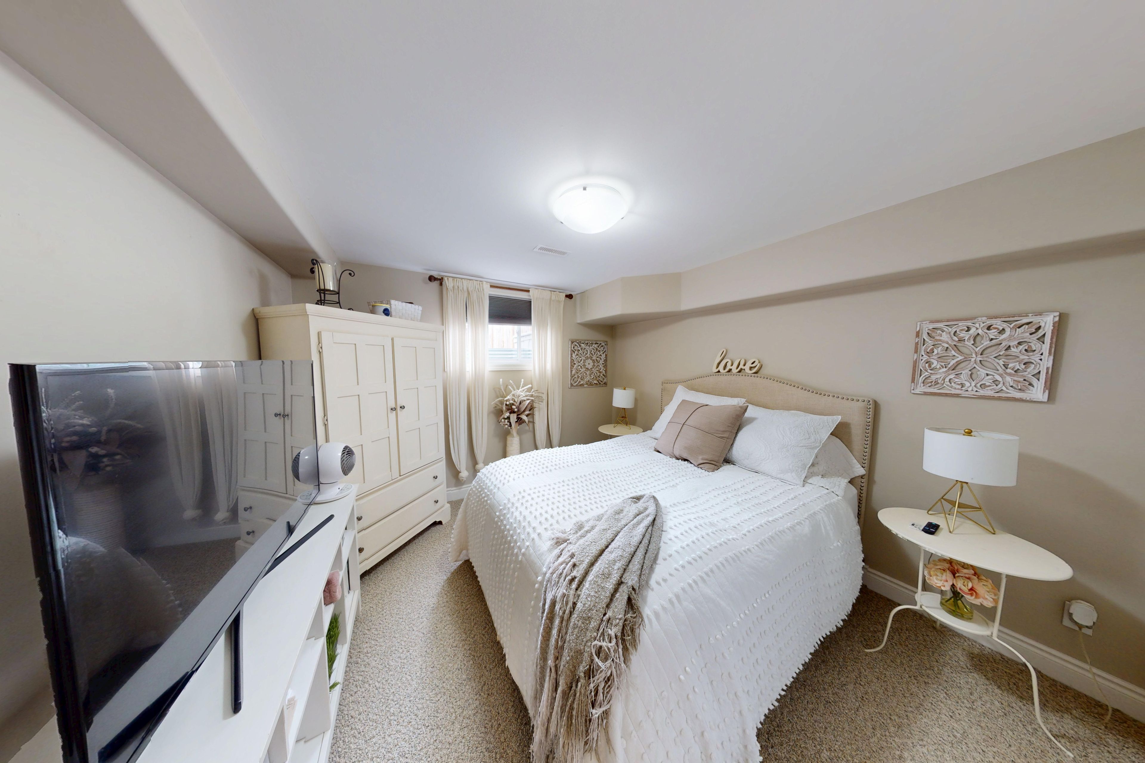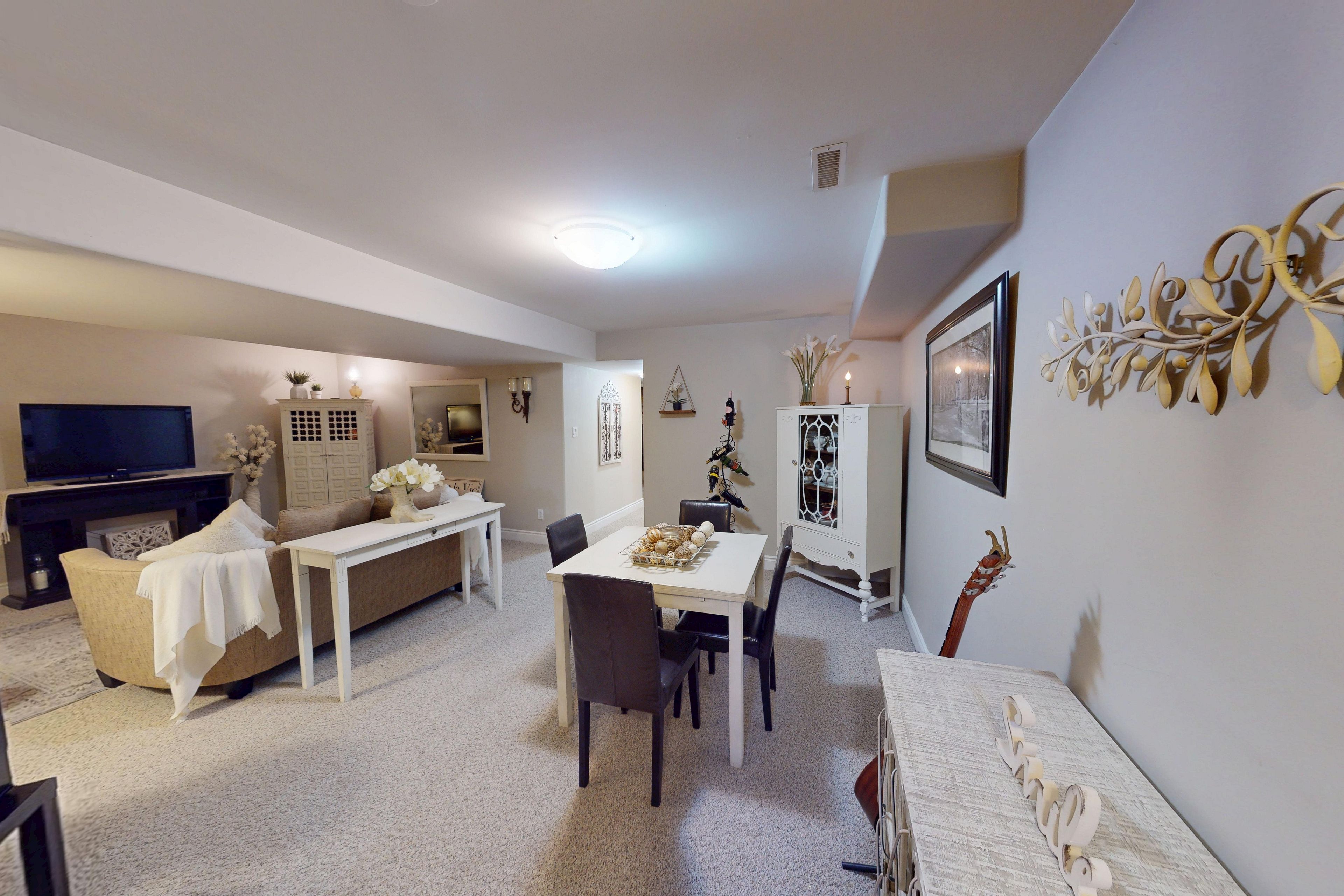 • Lower level includes a recreation room, additional bedroom, and cozy office.